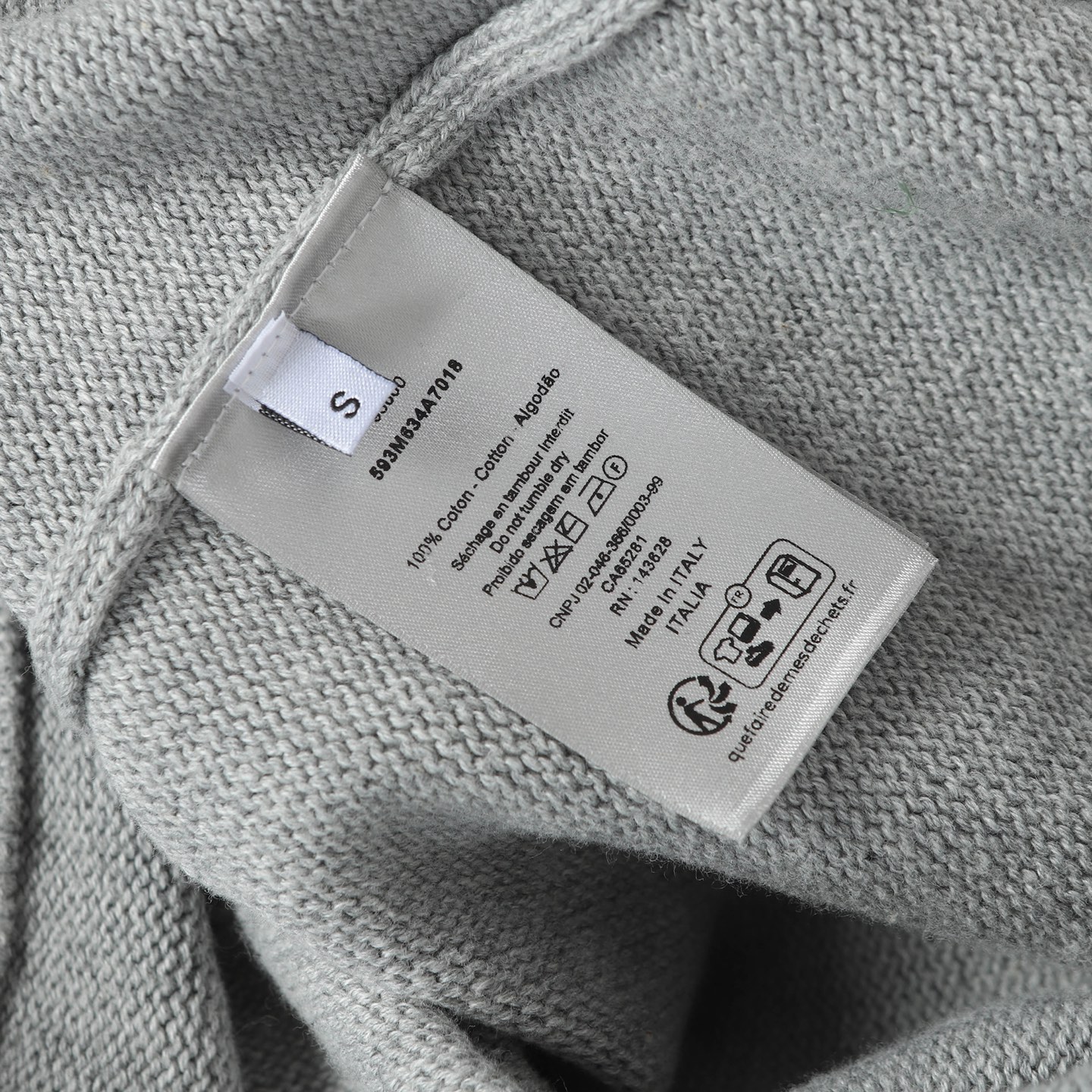 ●描述:原版进行打色打色定坊,颜色相似度高达95%以上,选用100%全精梳棉纱纱线制作,衣服大身采用与原版一样的7G织机进行织片,两侧的桑蚕丝织带更是根据原版采用16针超细针种进行分别编织,缝合,洗水,最后织带,采用技术精湛的车工进行操作,一般的车工车不了这么直的织带,这个地方就特别考验车工的技术,整体走线平直细腻,面料舒适柔软,颜色一致无色差 能与同款搭配营造时尚造型,驾驭各种场合,定制辅料,三标齐全,男女同款!