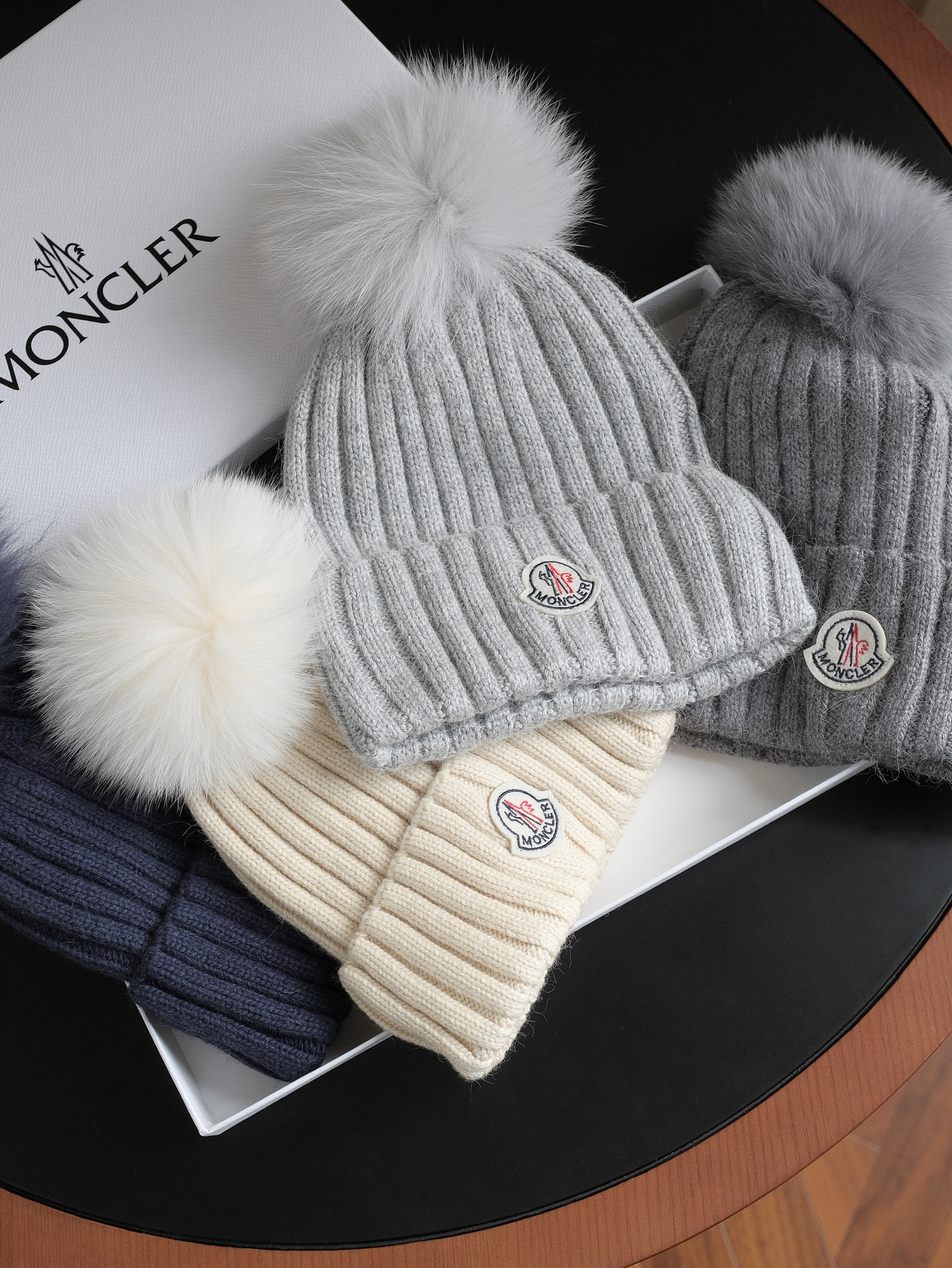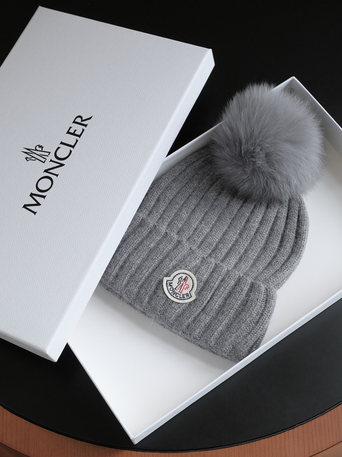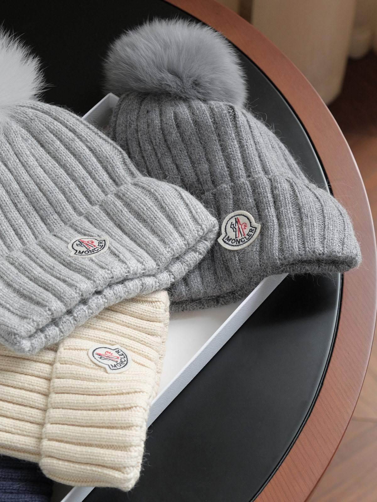 Moncler深灰色针织帽,低调奢华的冬日之选