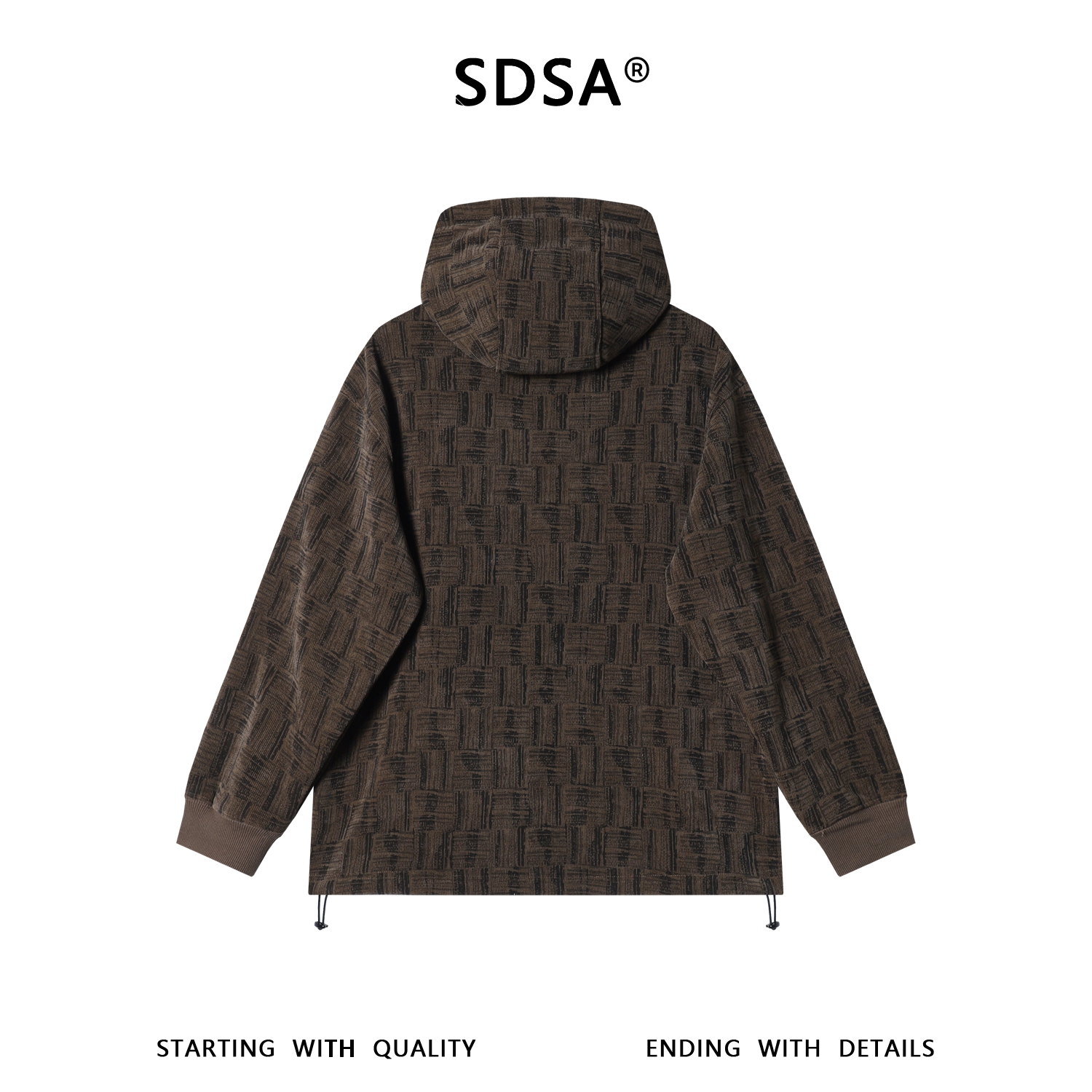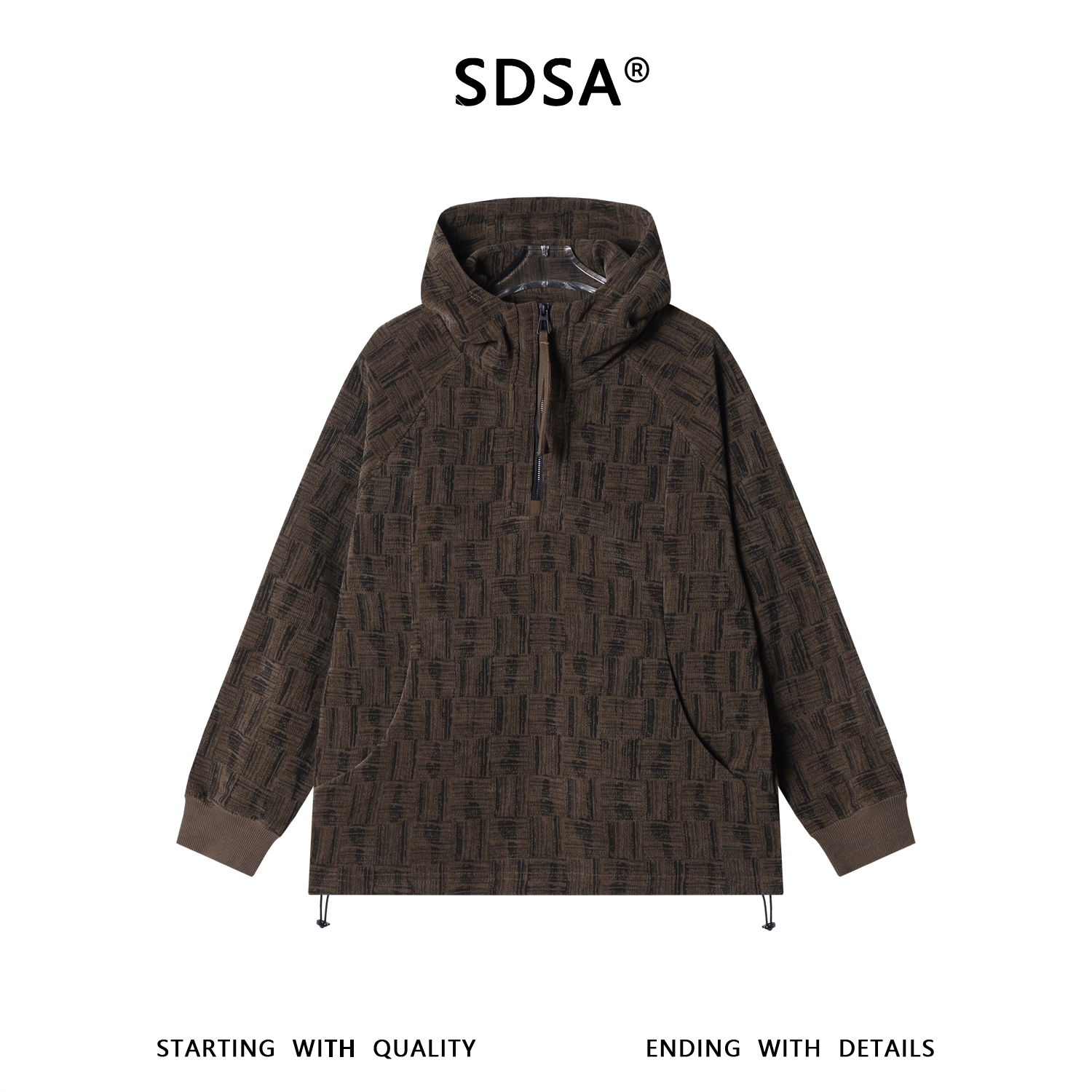 WY1461SDSA秋冬新款痞帅男装潮牌撞色编织印花半拉链立领连帽卫衣百搭