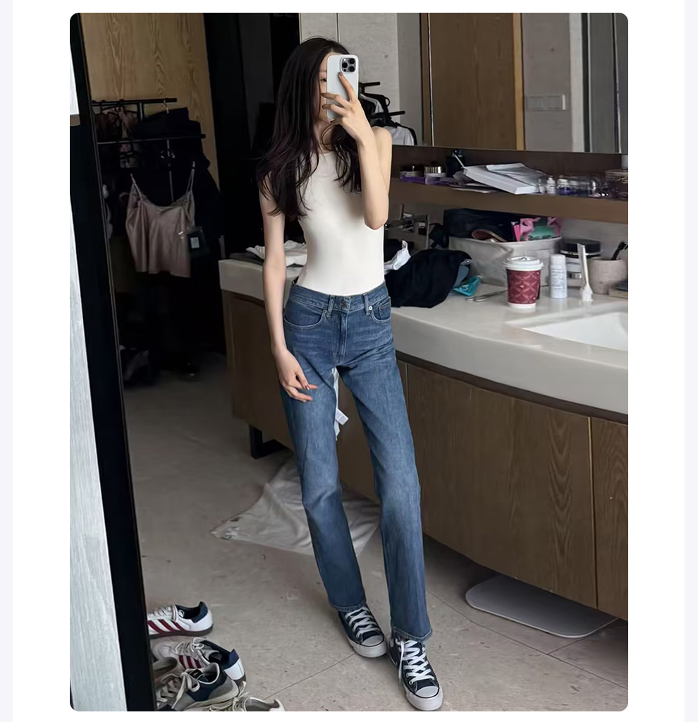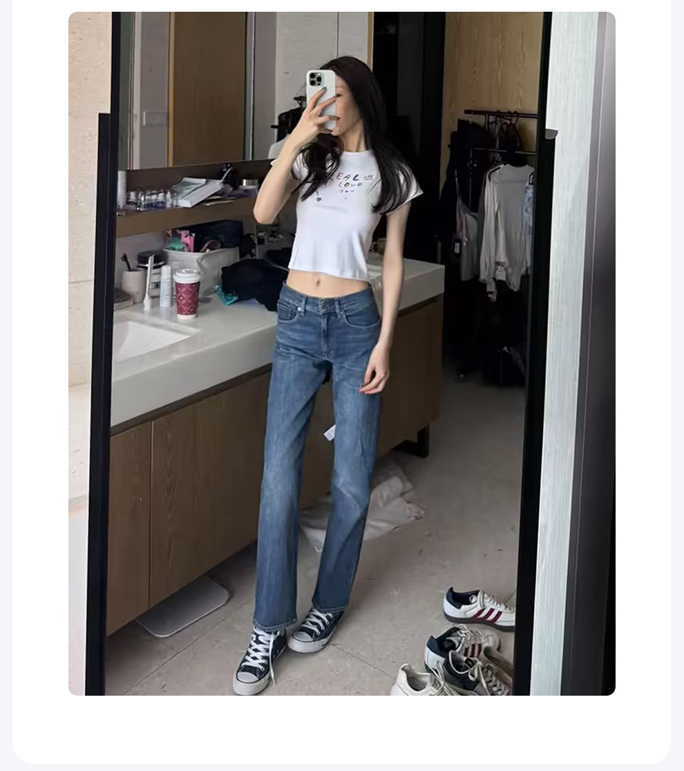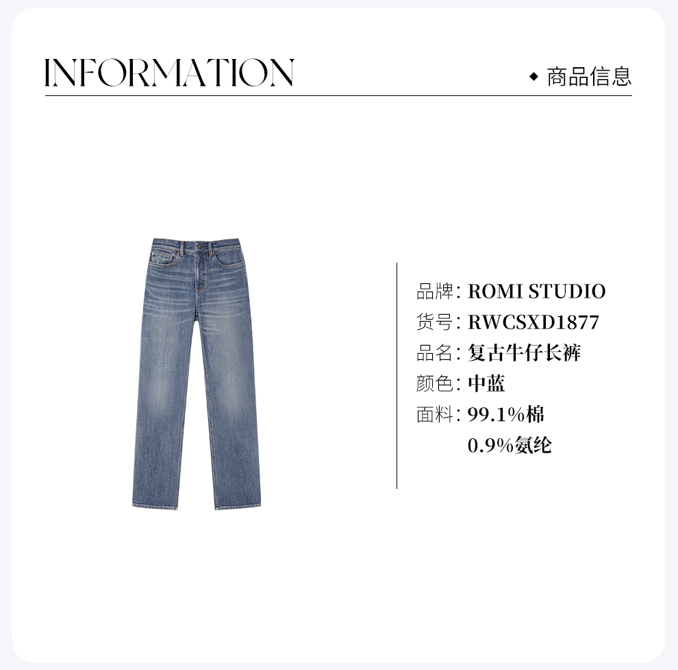 ROMI STUDIO“经典复古”棉质水洗蓝夏季薄款直筒牛仔裤RWCSXD1877(现货)