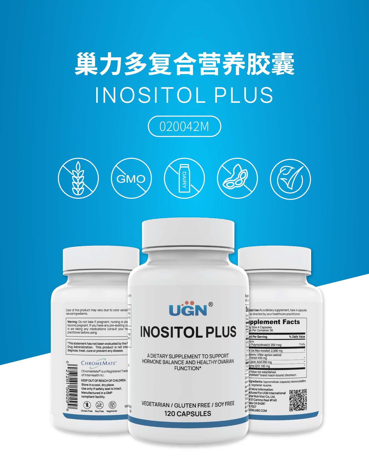 一款含专利铬、肌醇、圣洁莓、硫辛酸和辅酶Q10的综合内分泌代谢营养胶囊。推荐备孕、卵巢功能减退、PMS女性使用。