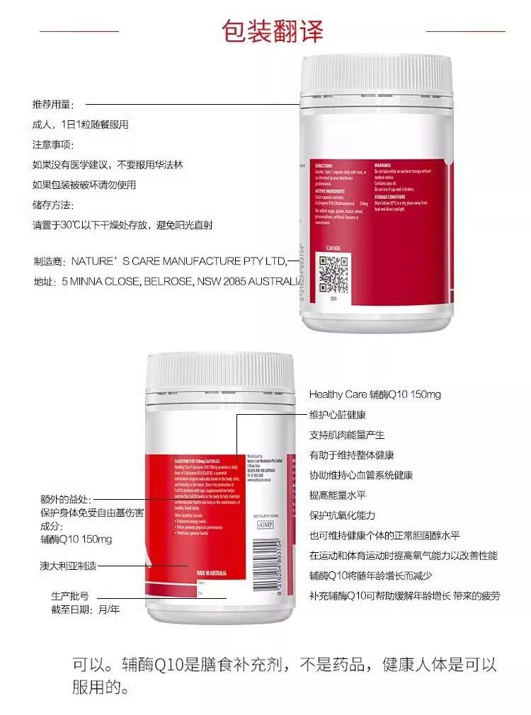 澳洲Healthy Care辅酶Q10软胶囊呵护心脏健康辅酶素100粒进口正品
