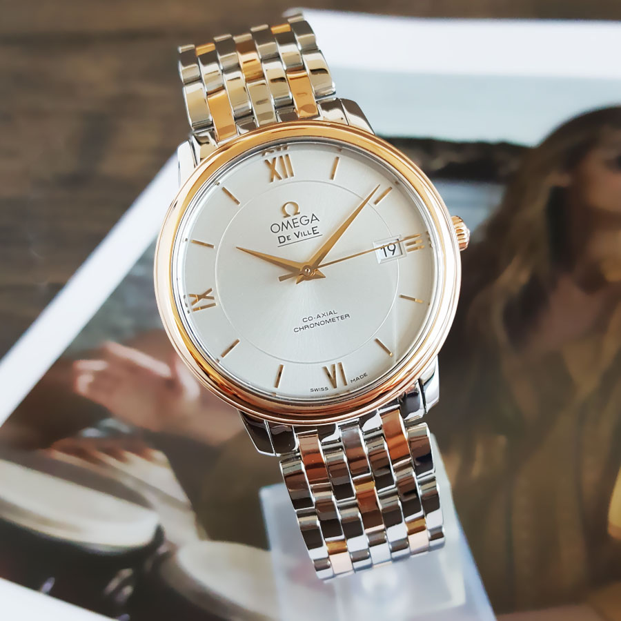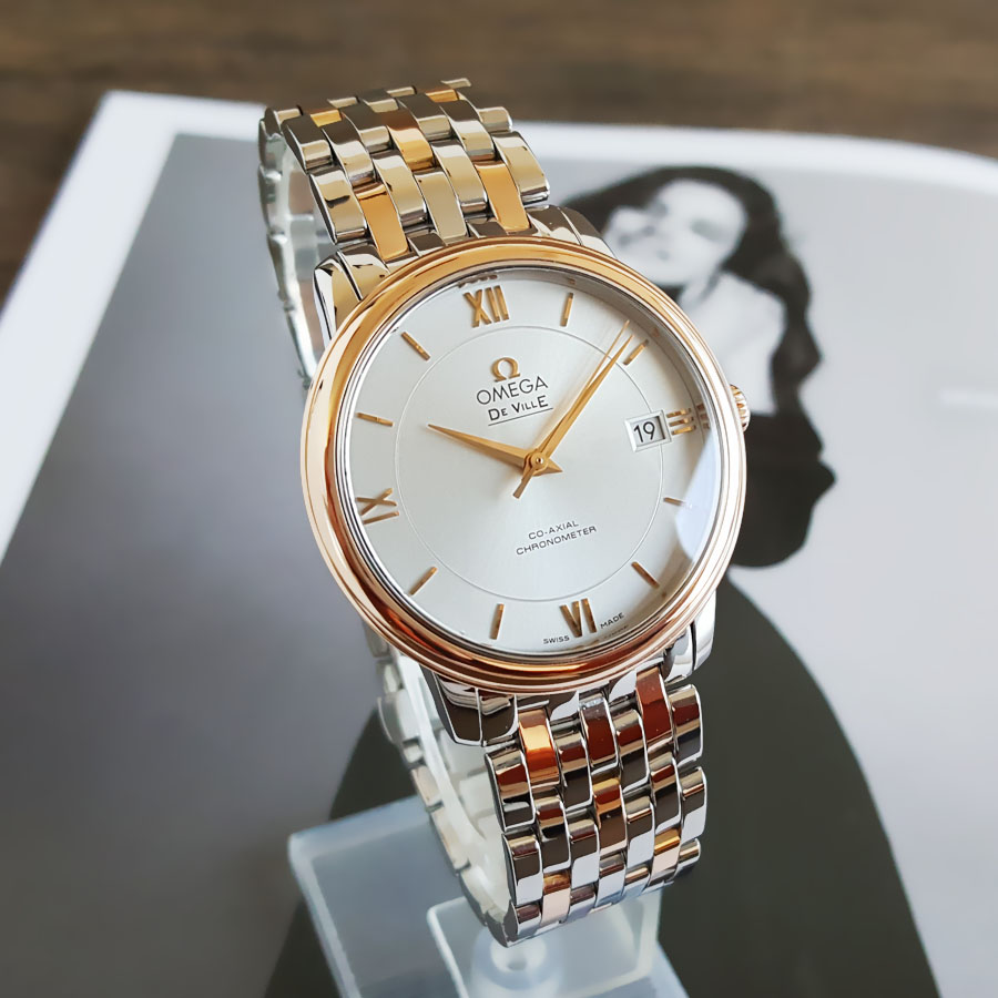 【95新】OMEGA 欧米茄424.20.37.20.02.002天文台认证自动机械机芯日期显示碟飞系列37MM(男款)精钢/18K玫瑰金161025TH02