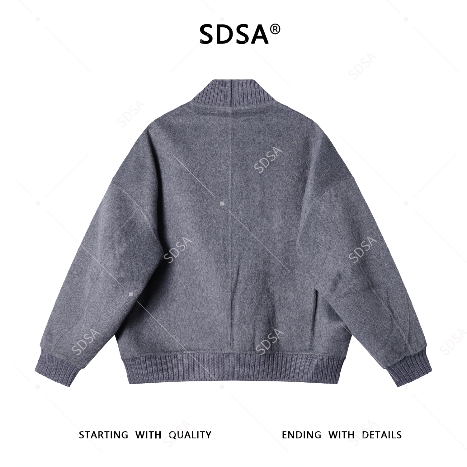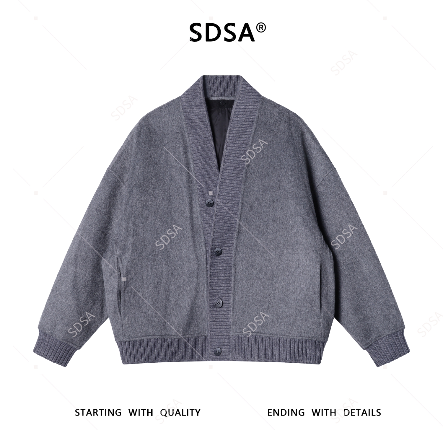 25-08SDSA男士秋冬新款痞帅男装潮牌纯色V领羊毛大衣羽绒服两件套百搭