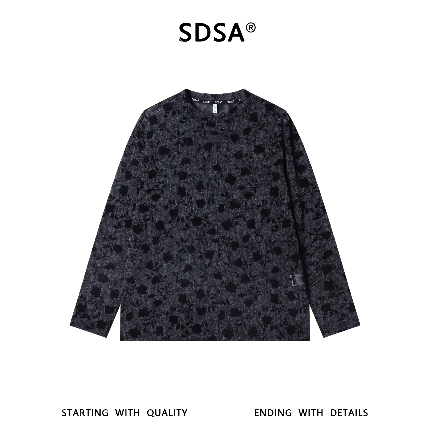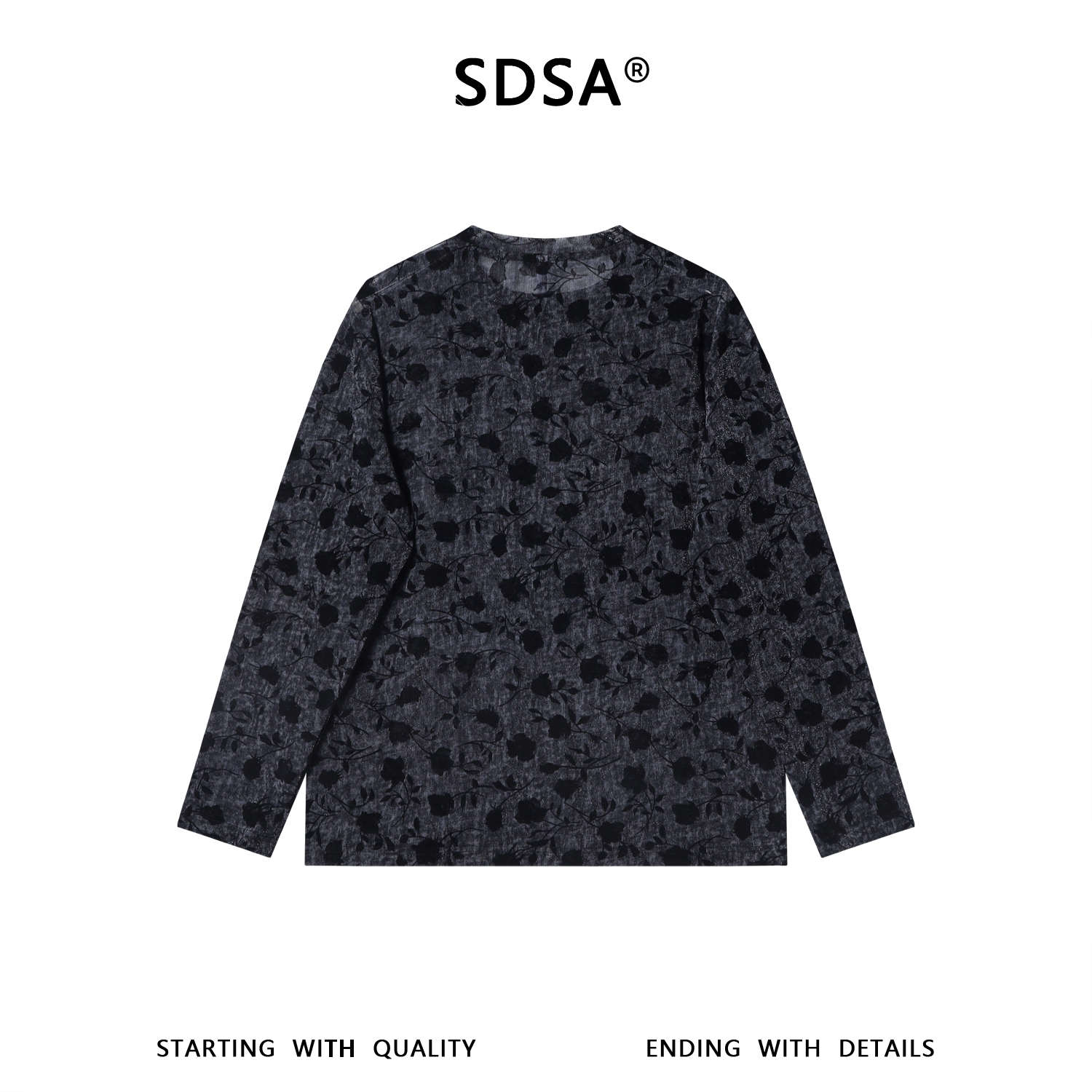 26T113SDSA男装2026新款高贵轻奢扎染满印花卉圆领长袖T恤百搭打底衫