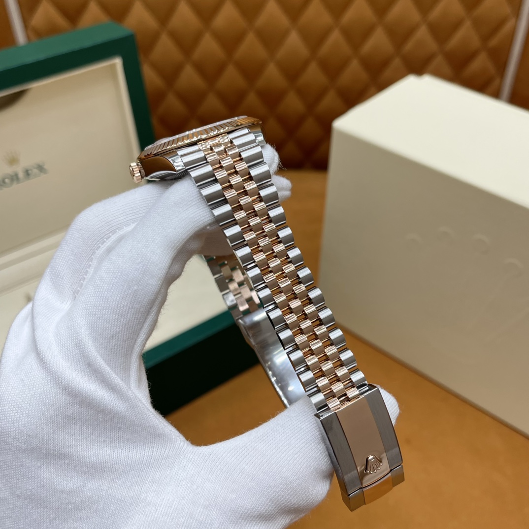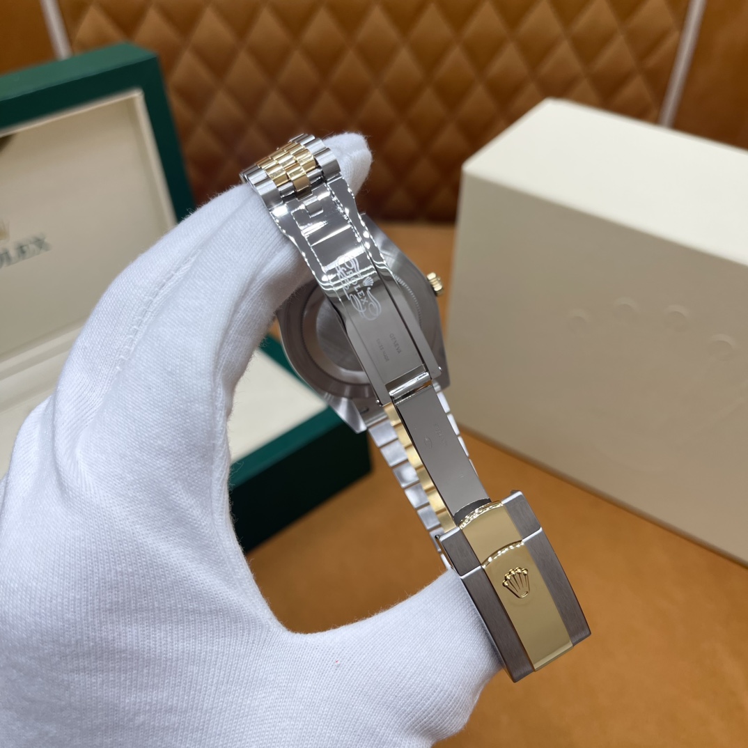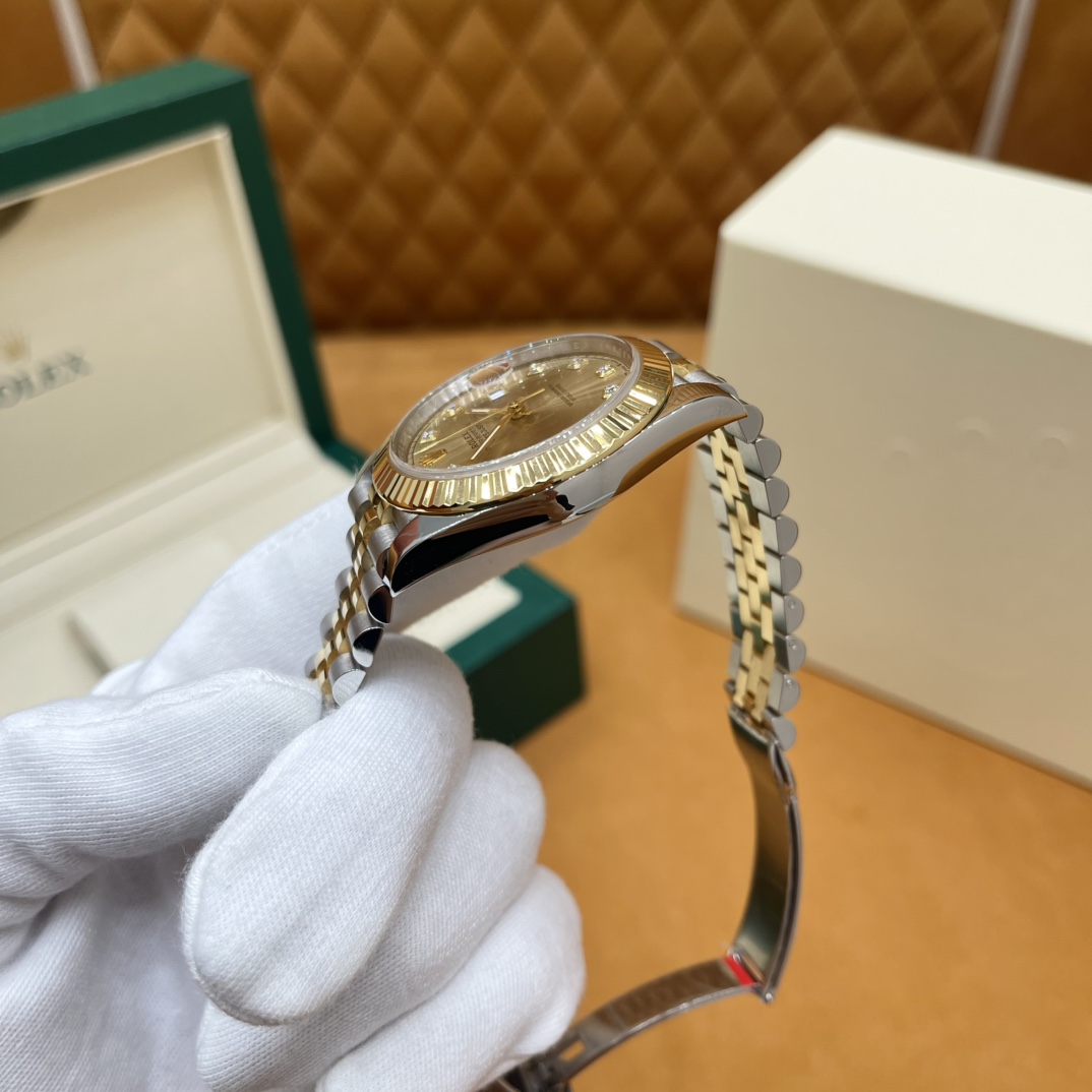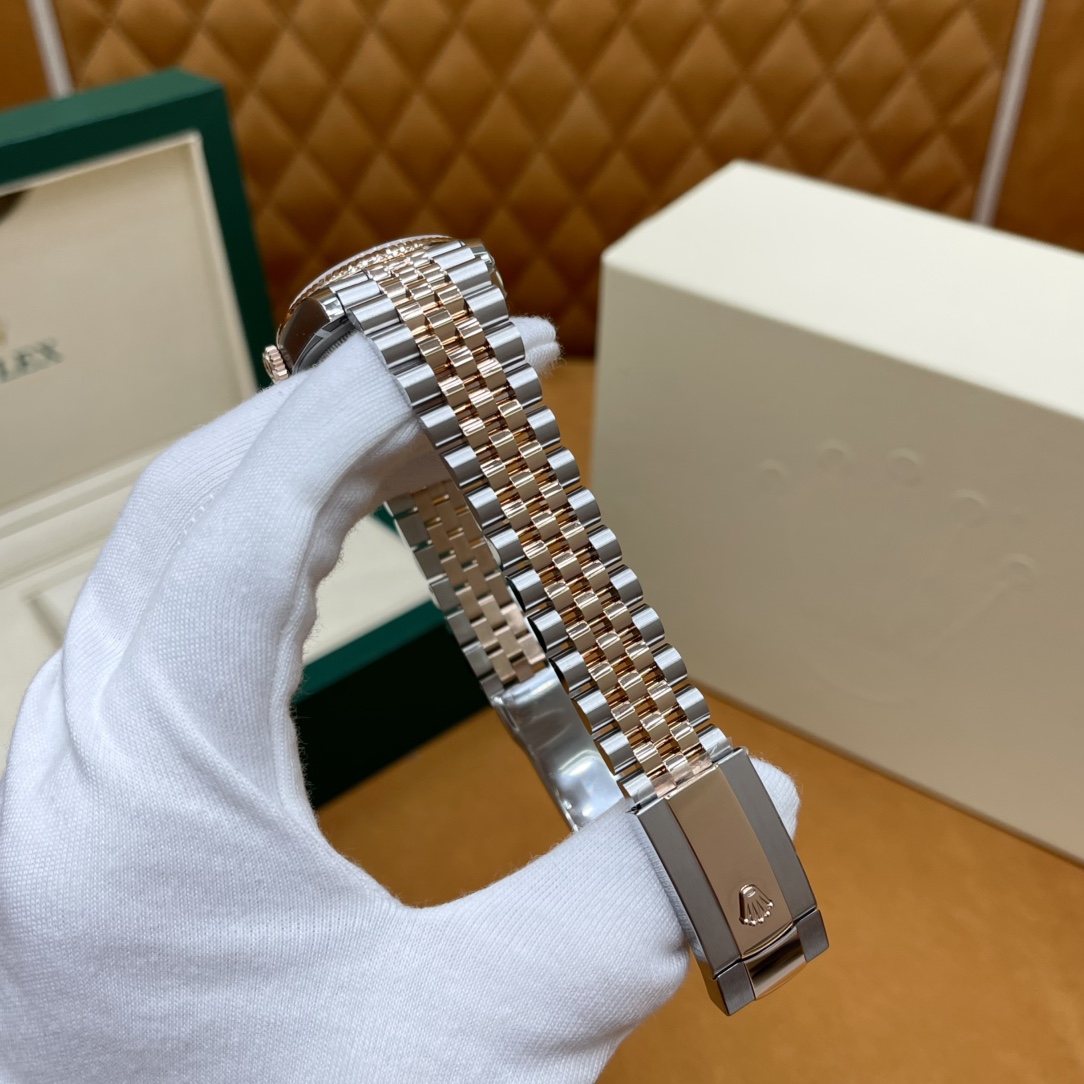 🏷️日志型 M126333-0012 | 五珠链间金香槟金盘 这款完美版香槟金盘日志,质感拉满,颜值炸裂!搭载原版定制3235自动机械机芯,动力储存稳定强悍,走时精准可靠。表壳与表带采用 904L精钢,坚固耐用,推拉顺滑,触感丝滑。电镀18K金三角坑纹外圈,光泽细腻,持久耐用,不易掉色! 香槟金太阳纹表盘,简约大气,经典百搭,怎么看都耐看!搭配 防反光凸透式放大日历窗,日历字体对版清晰,每个数字精细打磨,随时轻松读取。独特 龟壳外观开合方式,锁扣紧密,佩戴安全感满满! 经典五珠链表带,贴合手腕,舒适服帖,劳家的独特韵味尽显。搭配 防刮损蓝水晶玻璃,日常佩戴无惧刮花,生活防水,随心驾驭! 这款间金黑盘日志,既有绅士风度,又不失奢华质感,沉稳又有排面! 尺寸:41mm