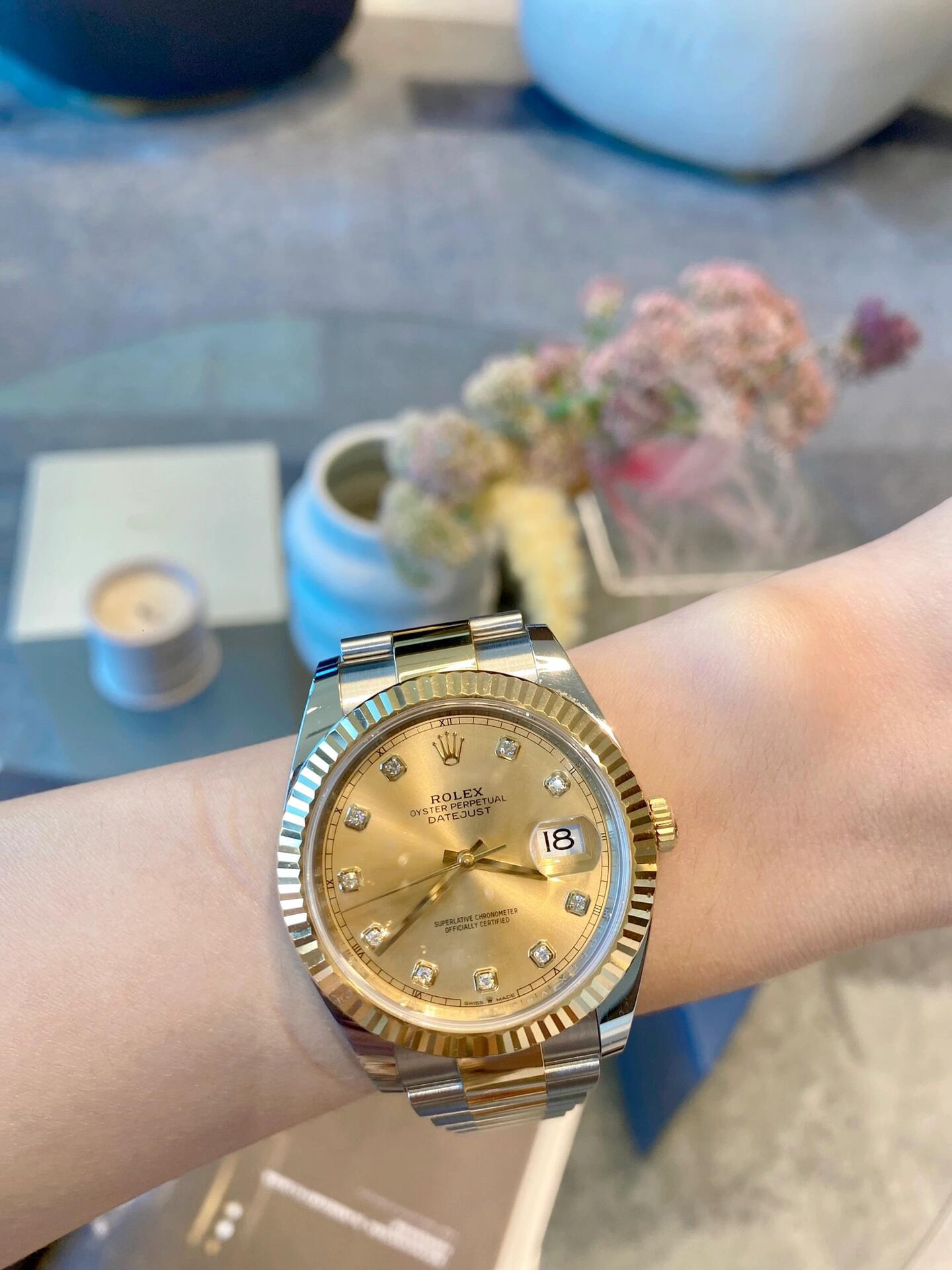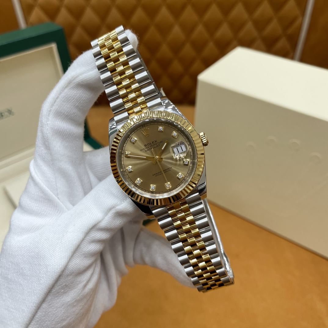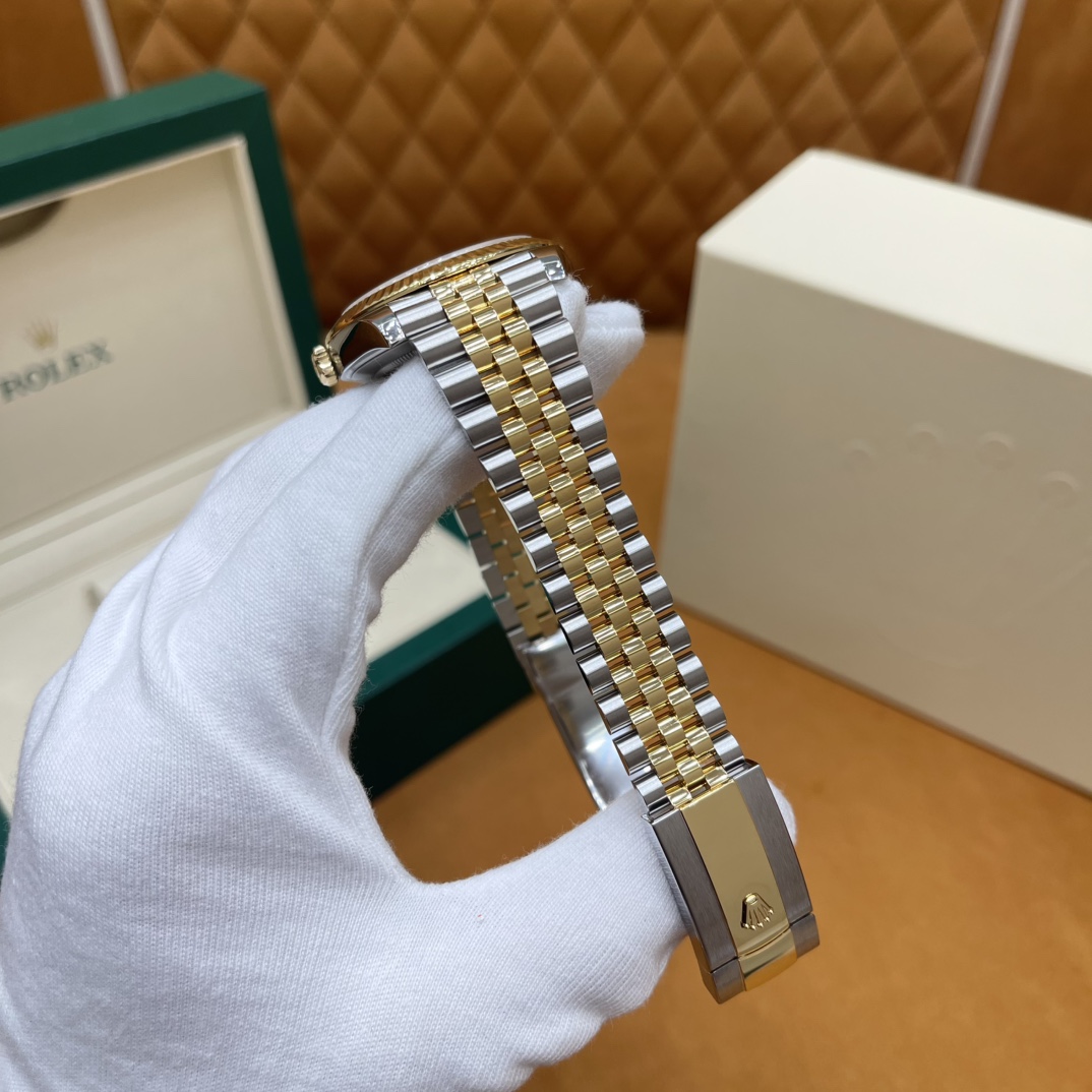 🏷️日志型 M126333-0012 | 五珠链间金香槟金盘 这款完美版香槟金盘日志,质感拉满,颜值炸裂!搭载原版定制3235自动机械机芯,动力储存稳定强悍,走时精准可靠。表壳与表带采用 904L精钢,坚固耐用,推拉顺滑,触感丝滑。电镀18K金三角坑纹外圈,光泽细腻,持久耐用,不易掉色! 香槟金太阳纹表盘,简约大气,经典百搭,怎么看都耐看!搭配 防反光凸透式放大日历窗,日历字体对版清晰,每个数字精细打磨,随时轻松读取。独特 龟壳外观开合方式,锁扣紧密,佩戴安全感满满! 经典五珠链表带,贴合手腕,舒适服帖,劳家的独特韵味尽显。搭配 防刮损蓝水晶玻璃,日常佩戴无惧刮花,生活防水,随心驾驭! 这款间金黑盘日志,既有绅士风度,又不失奢华质感,沉稳又有排面! 尺寸:41mm