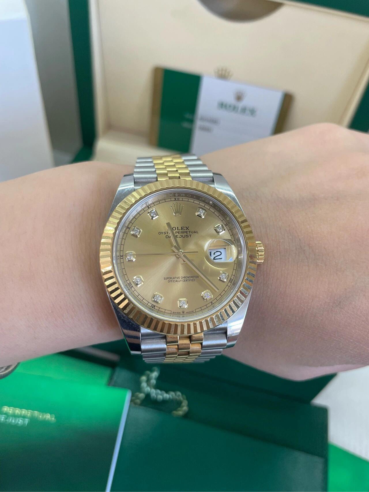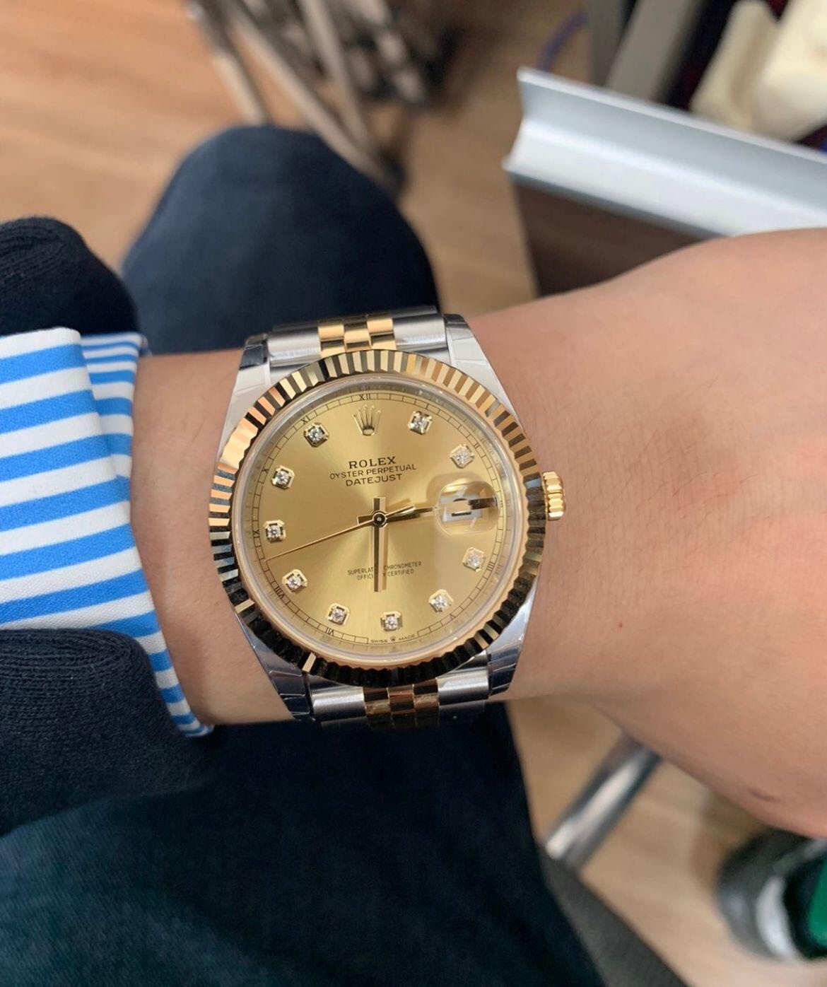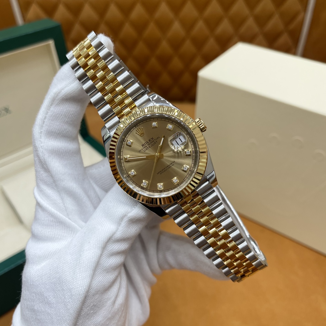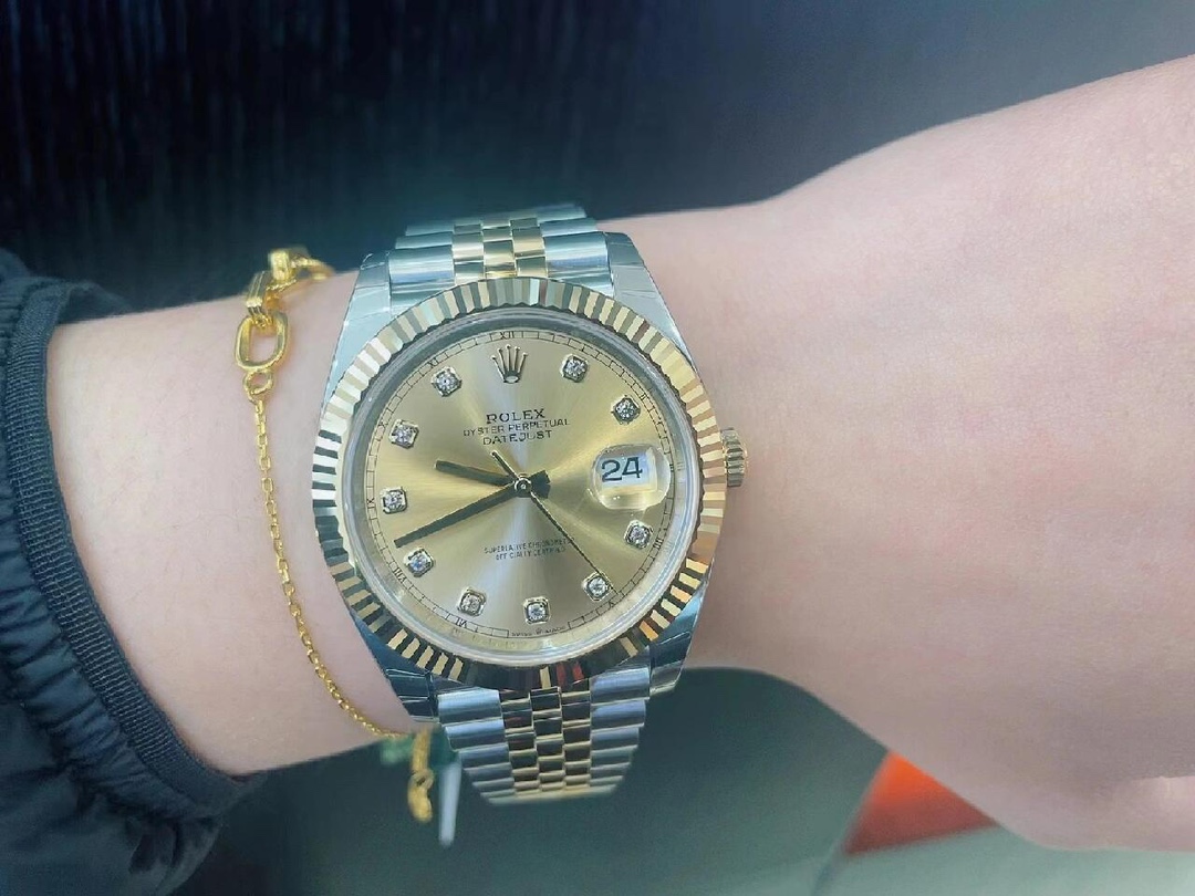 🏷️日志型 M126333-0012 | 五珠链间金香槟金盘 这款完美版香槟金盘日志,质感拉满,颜值炸裂!搭载原版定制3235自动机械机芯,动力储存稳定强悍,走时精准可靠。表壳与表带采用 904L精钢,坚固耐用,推拉顺滑,触感丝滑。电镀18K金三角坑纹外圈,光泽细腻,持久耐用,不易掉色! 香槟金太阳纹表盘,简约大气,经典百搭,怎么看都耐看!搭配 防反光凸透式放大日历窗,日历字体对版清晰,每个数字精细打磨,随时轻松读取。独特 龟壳外观开合方式,锁扣紧密,佩戴安全感满满! 经典五珠链表带,贴合手腕,舒适服帖,劳家的独特韵味尽显。搭配 防刮损蓝水晶玻璃,日常佩戴无惧刮花,生活防水,随心驾驭! 这款间金黑盘日志,既有绅士风度,又不失奢华质感,沉稳又有排面! 尺寸:41mm