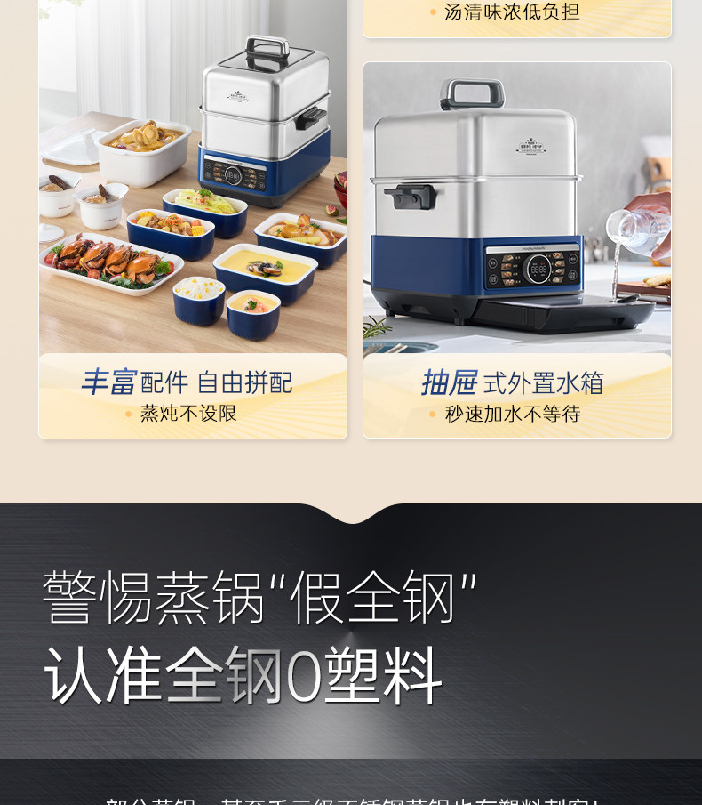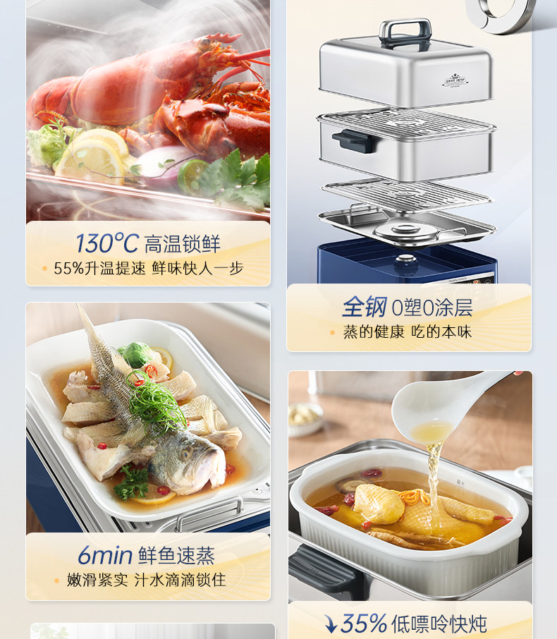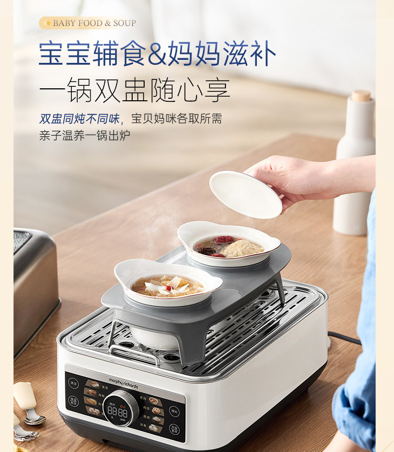 摩飞不锈钢电蒸锅多功能家用大容量蒸炖锅全自动预约电蒸烤箱 MR1178