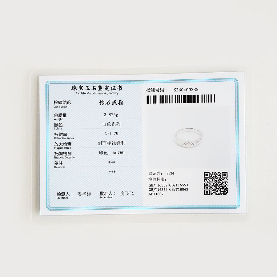 颜色/材质 | 白色/钻石/AU750白金 |