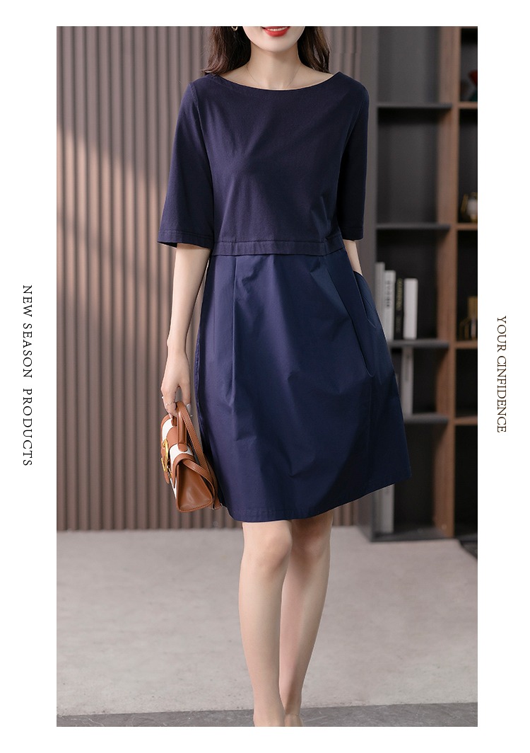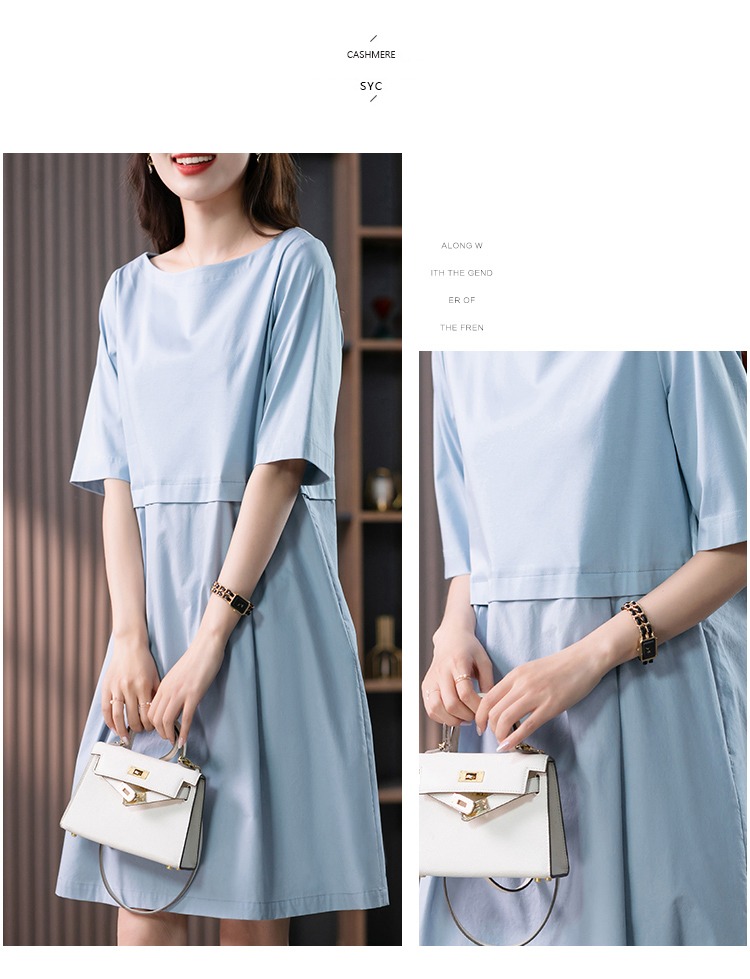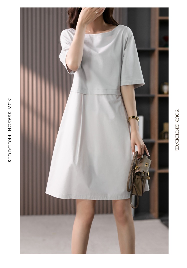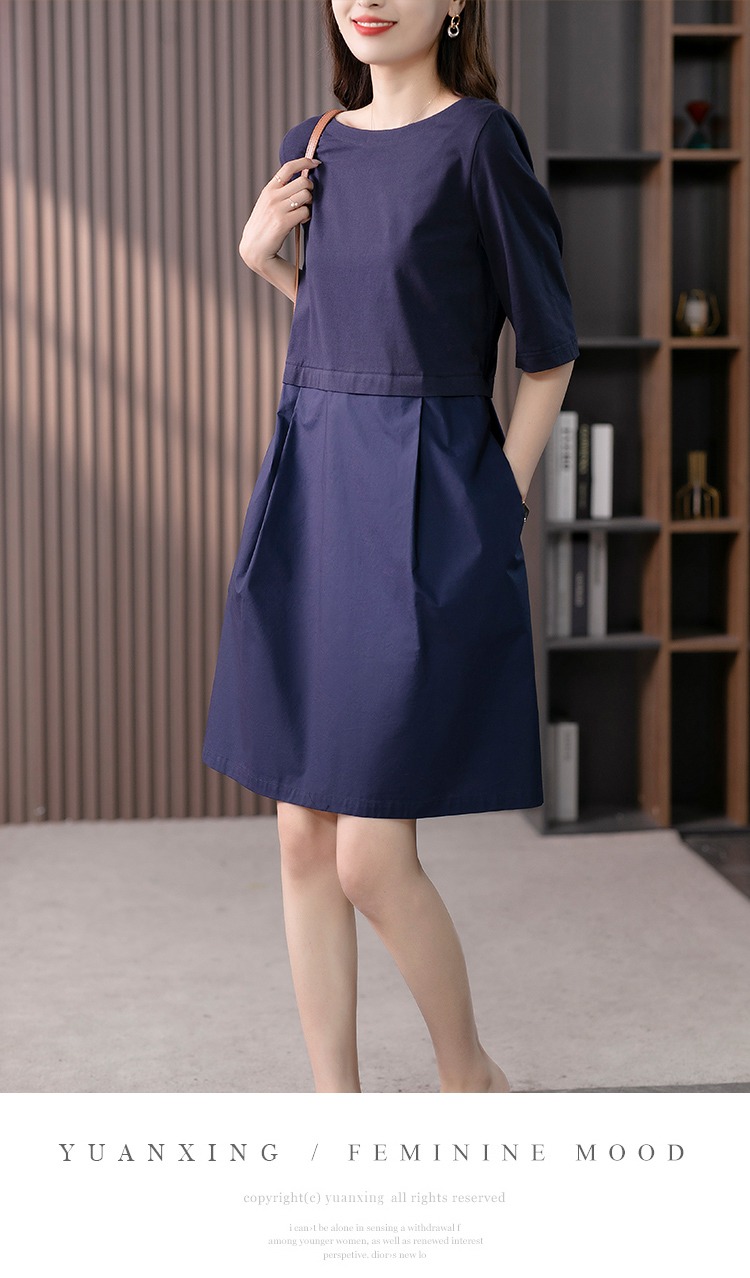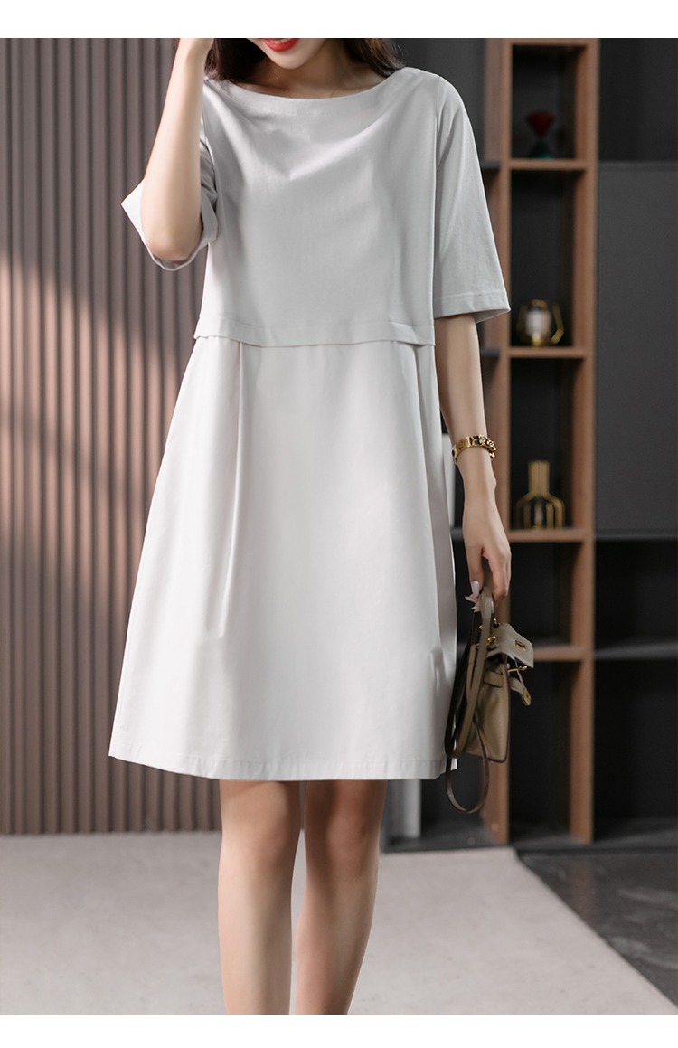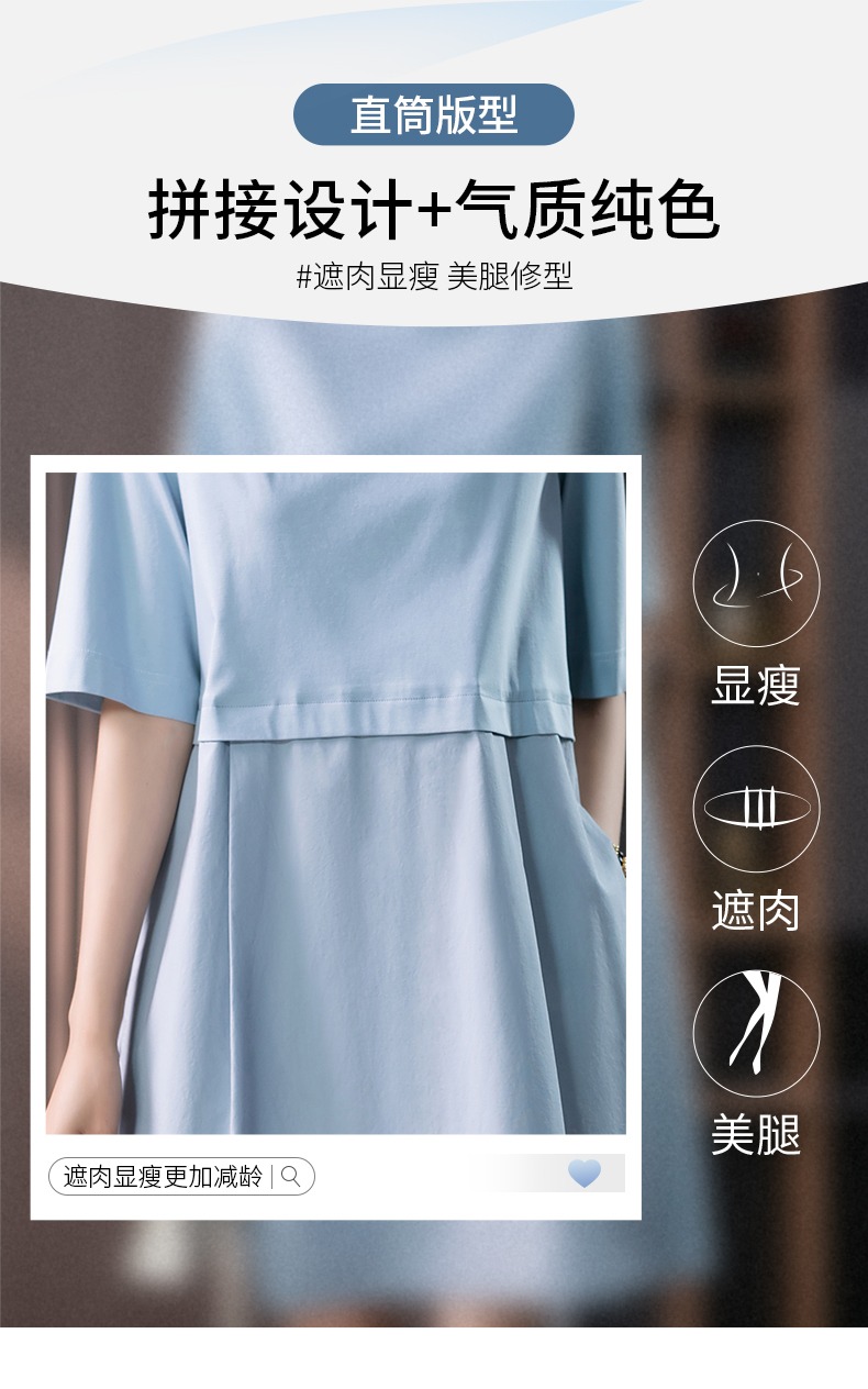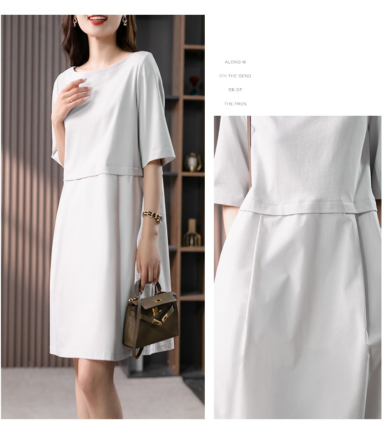YX【现货7天】FSW拼接宽松休闲显瘦连衣裙新款韩版中长款直筒裙子
