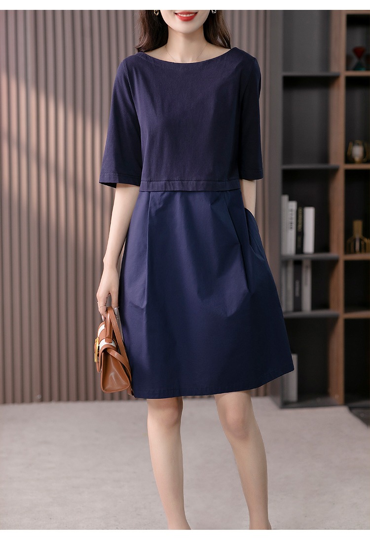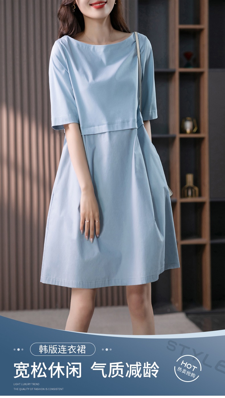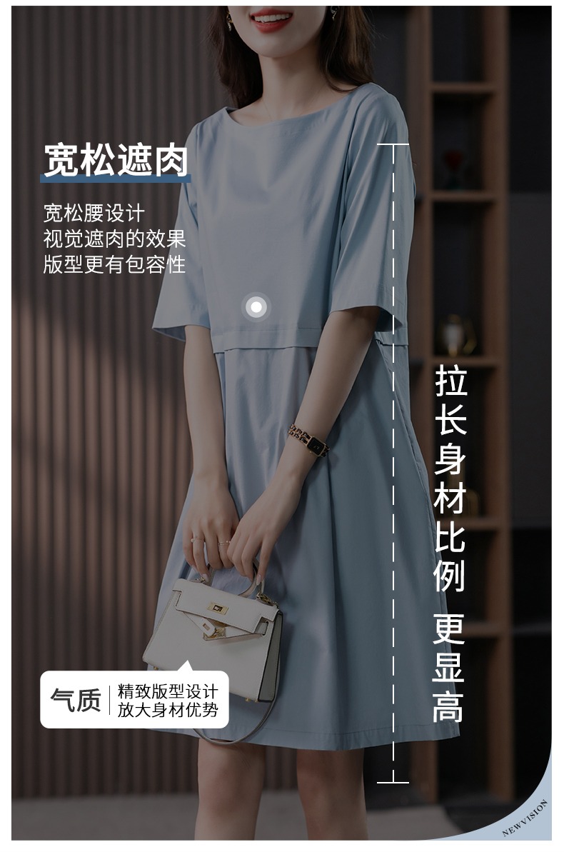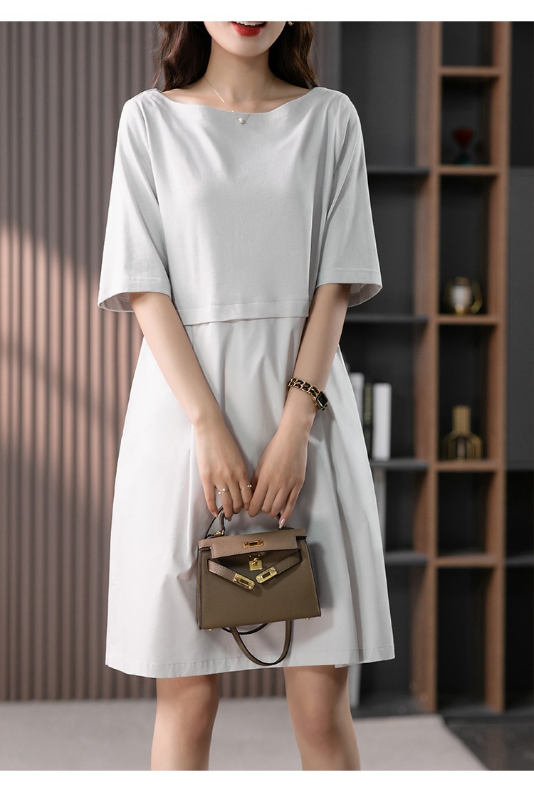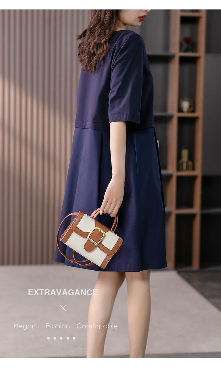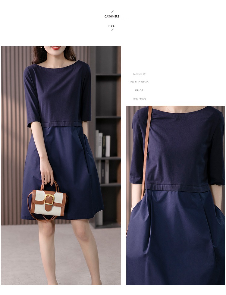 YX【现货7天】FSW拼接宽松休闲显瘦连衣裙新款韩版中长款直筒裙子