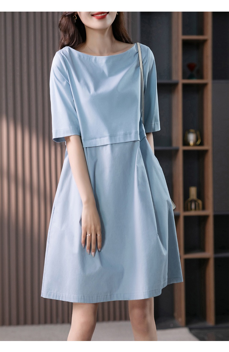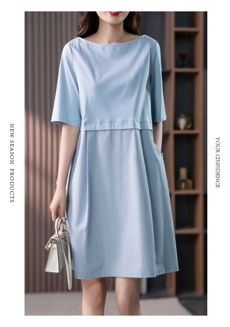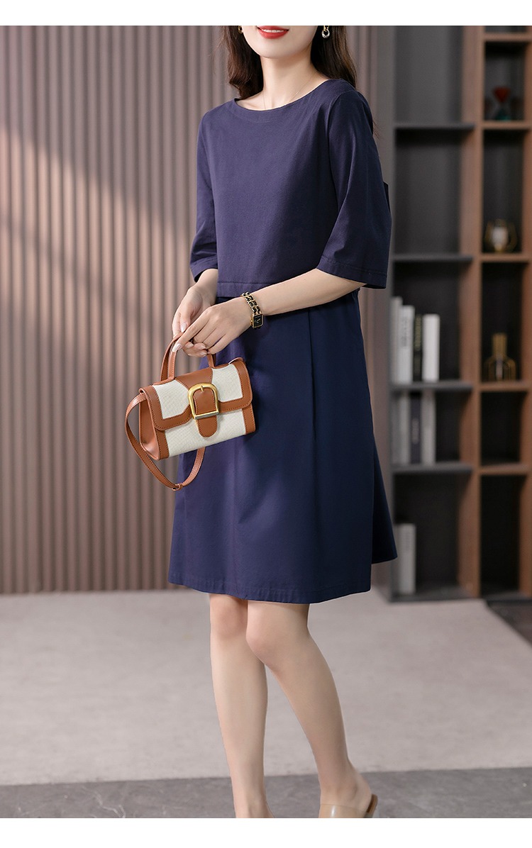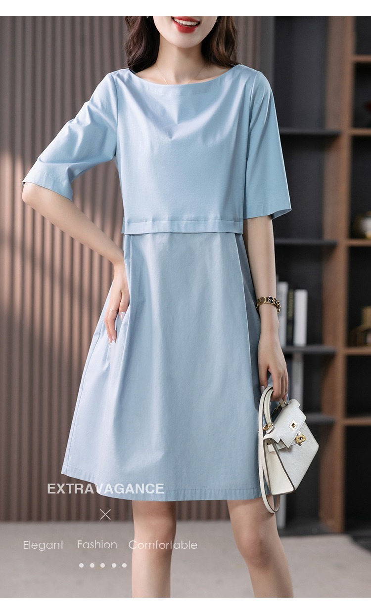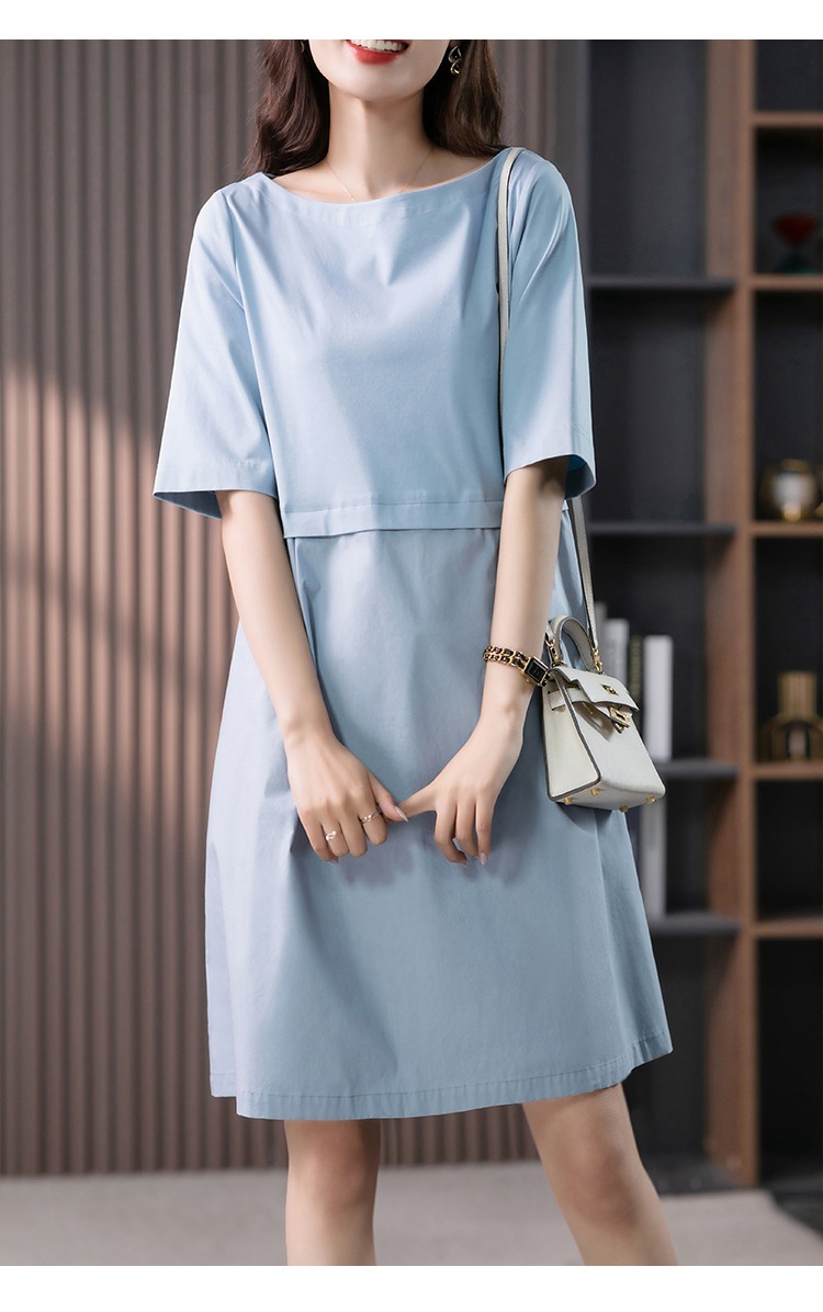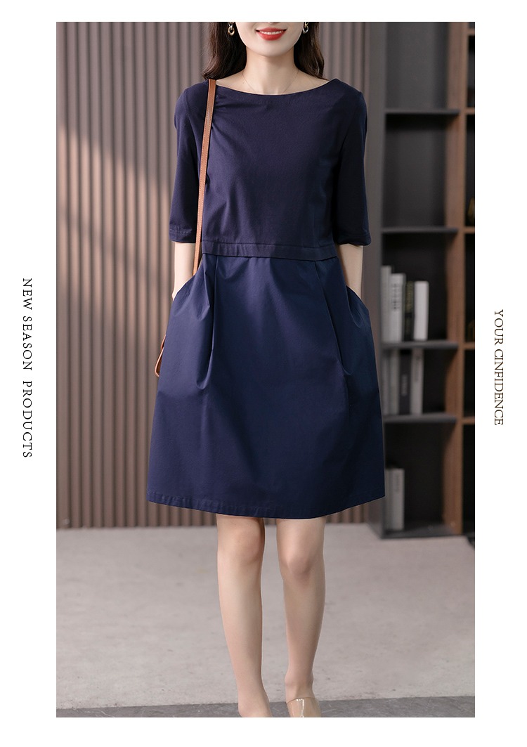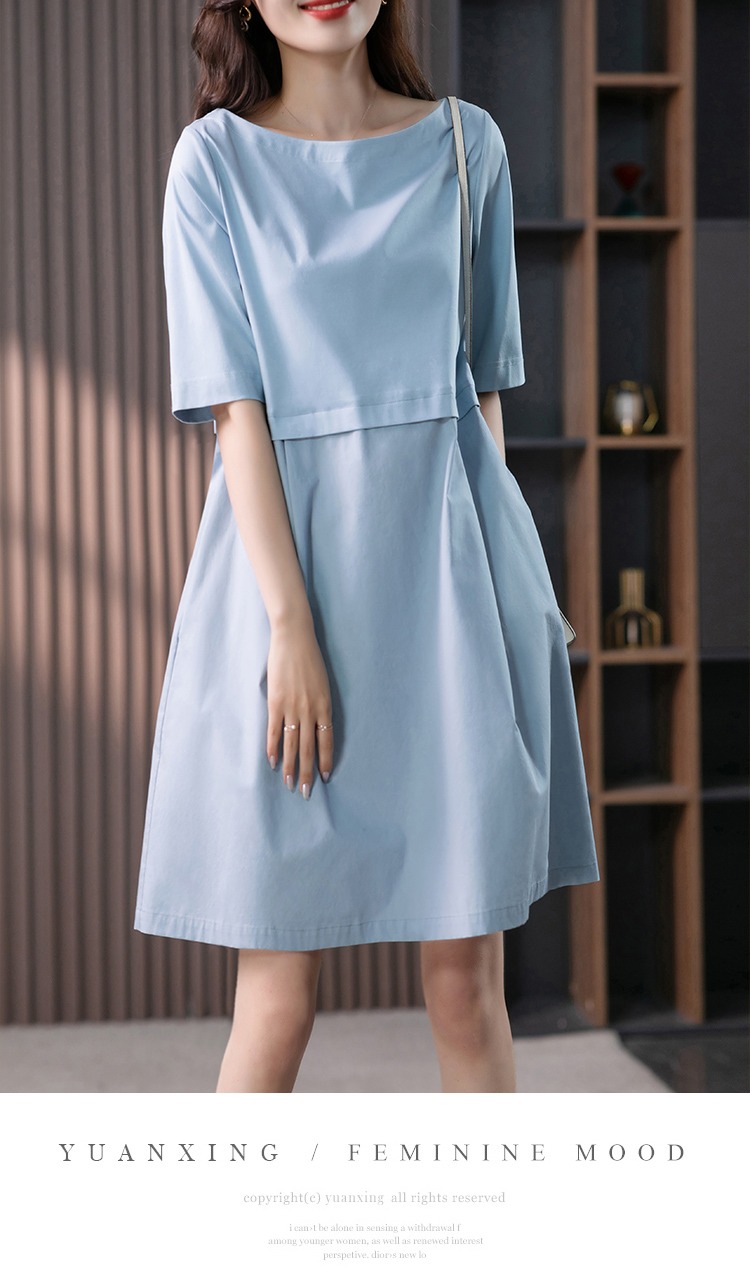 YX【现货7天】FSW拼接宽松休闲显瘦连衣裙新款韩版中长款直筒裙子