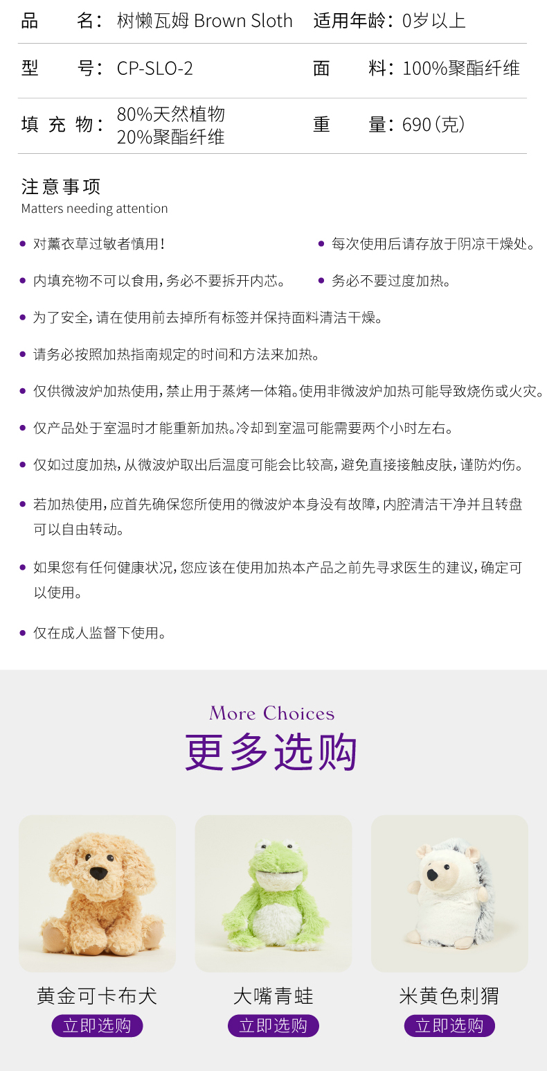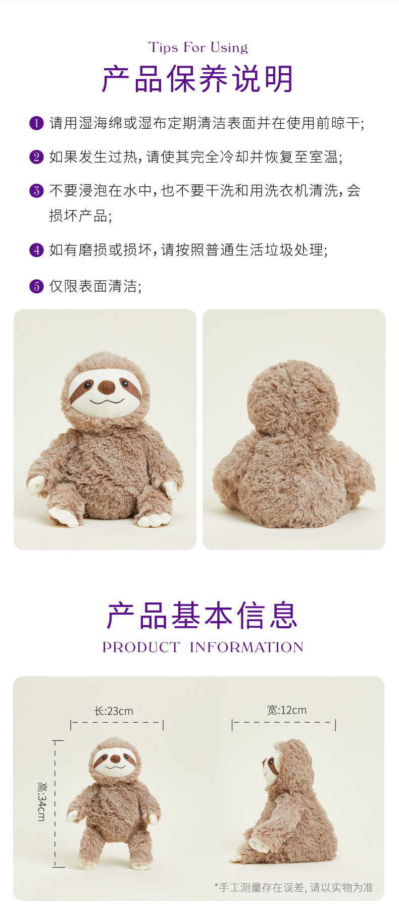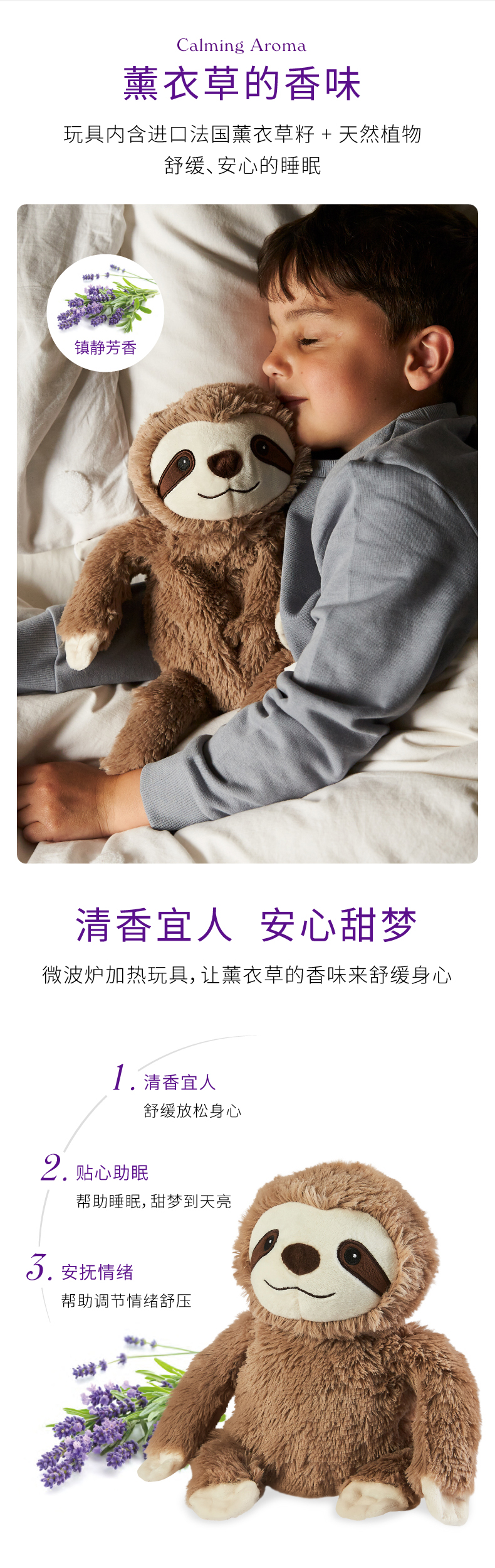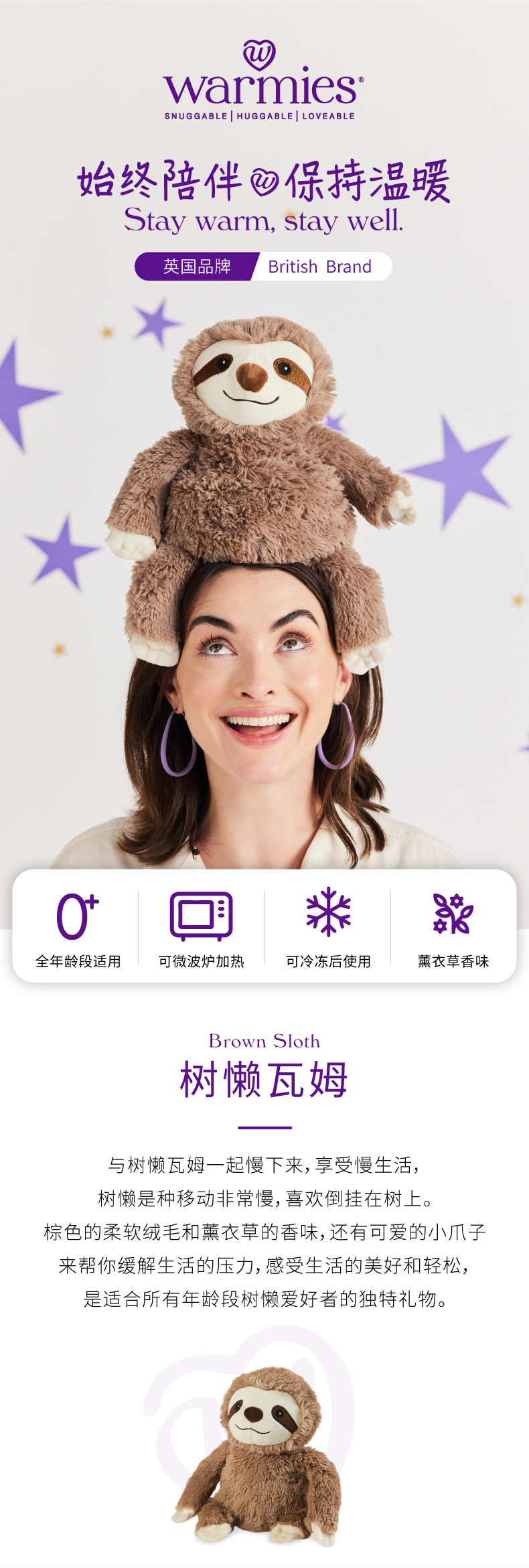 英国warmies 树懒瓦姆安抚玩偶公仔送礼毛绒可加热抱枕