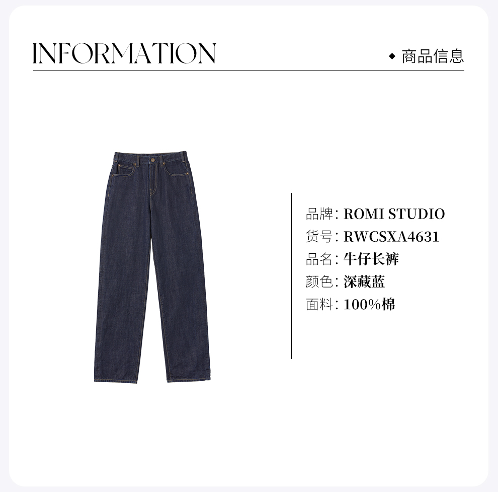 ROMI STUDIO“经典重塑”肌理棉质绣线撞色丹宁牛仔裤RWCSXA4631