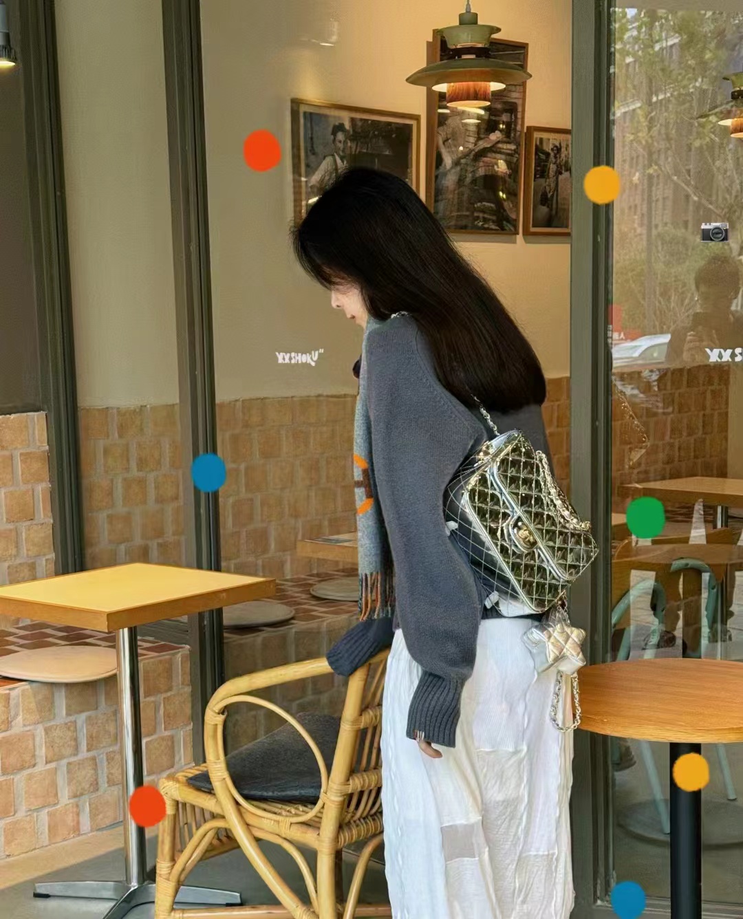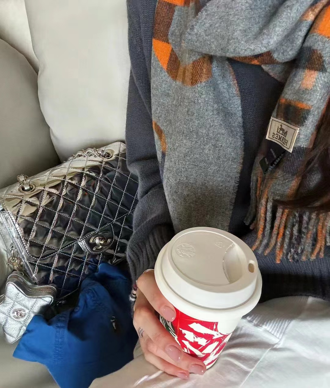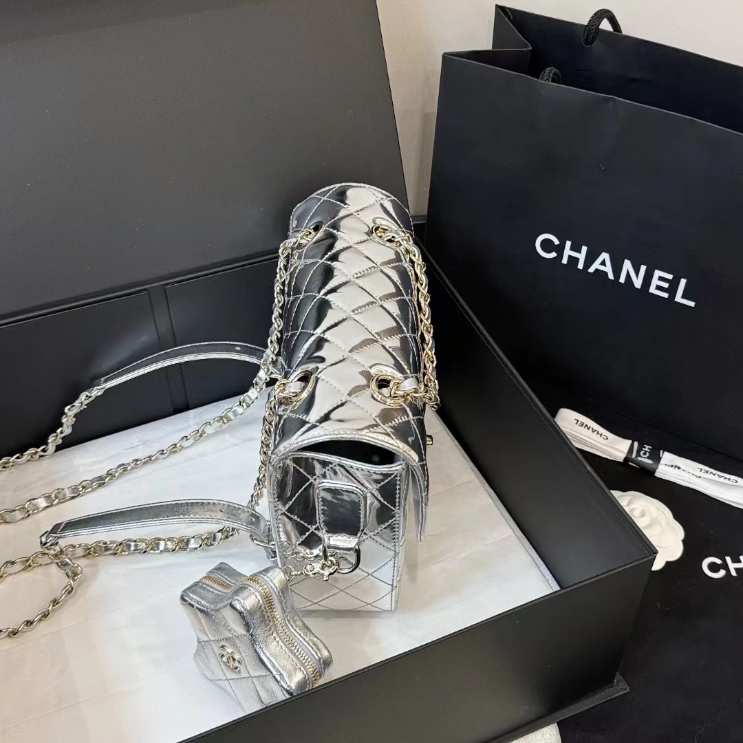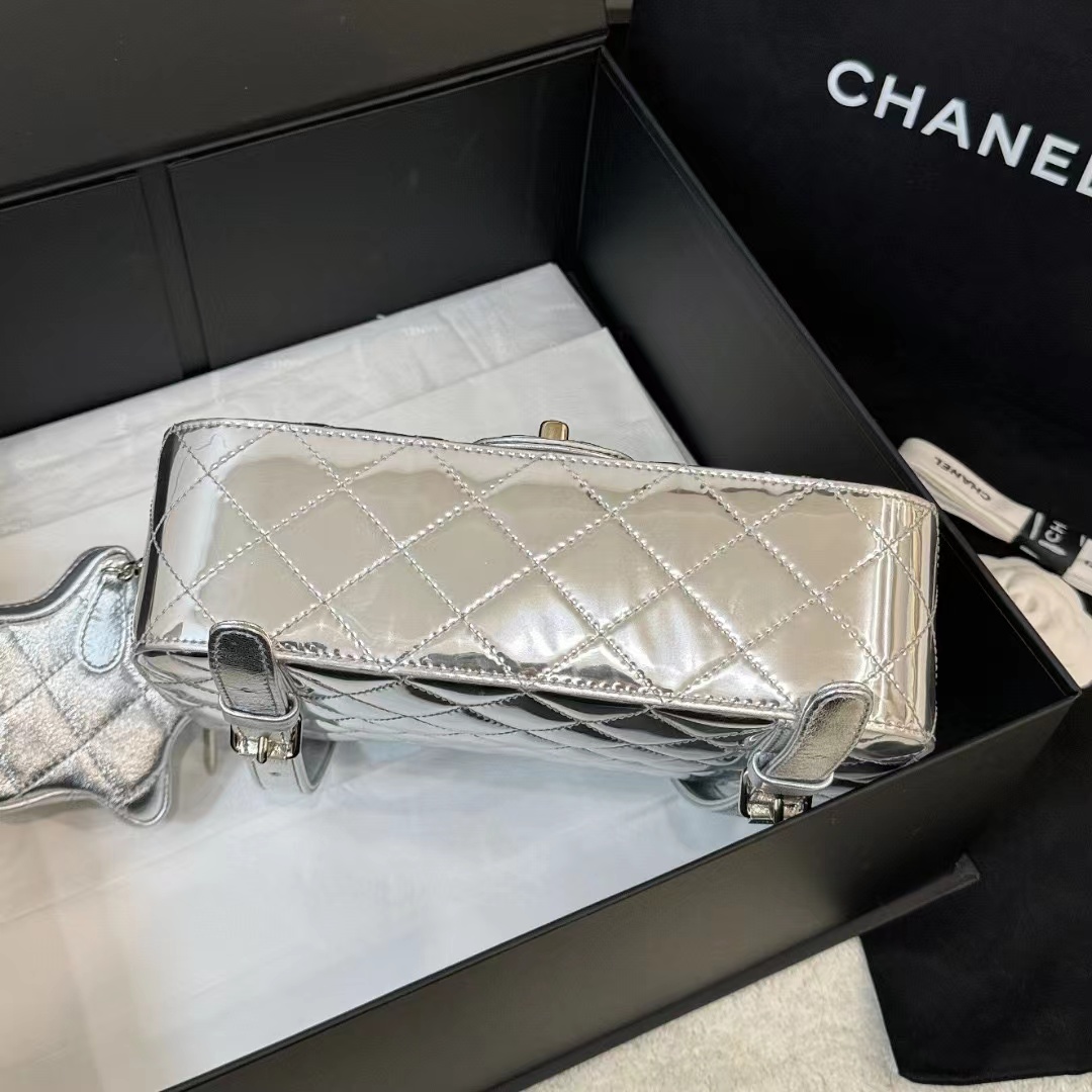 香奶奶 亮面星星 金属质感 金标LOGO 背包双肩包 银色