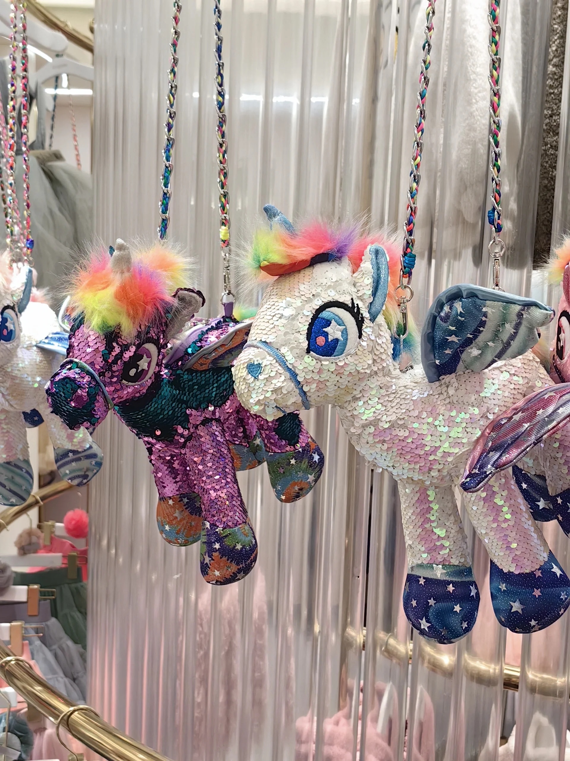 超级哇塞的六一礼物呀! 爆款恐龙亮片包🎉来袭!「Cozy World独角兽亮片包包」✨bulingbuling独角兽🦄无法抗拒✨ ✔️可翻转的亮片设计,创意满满,充满趣味