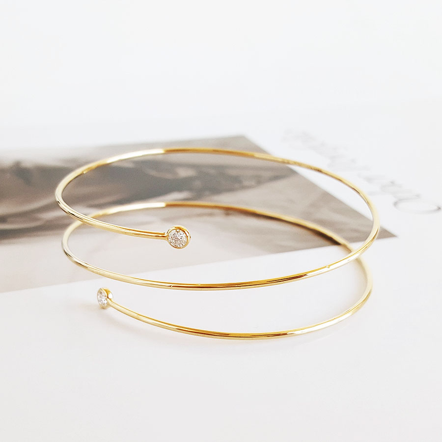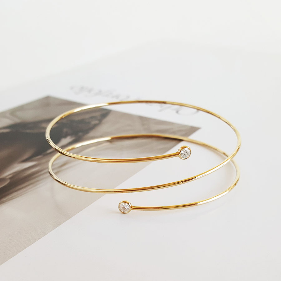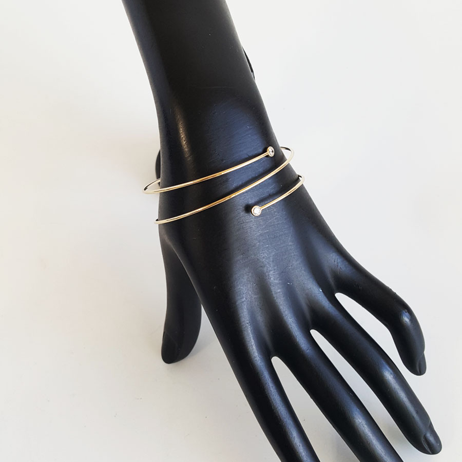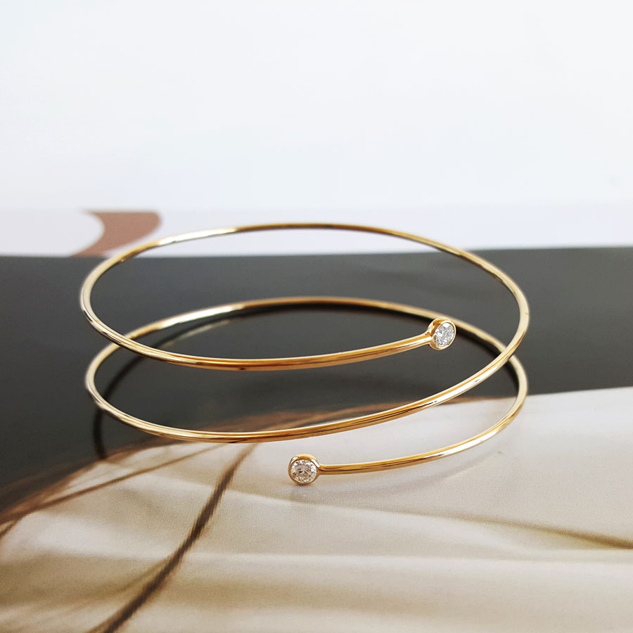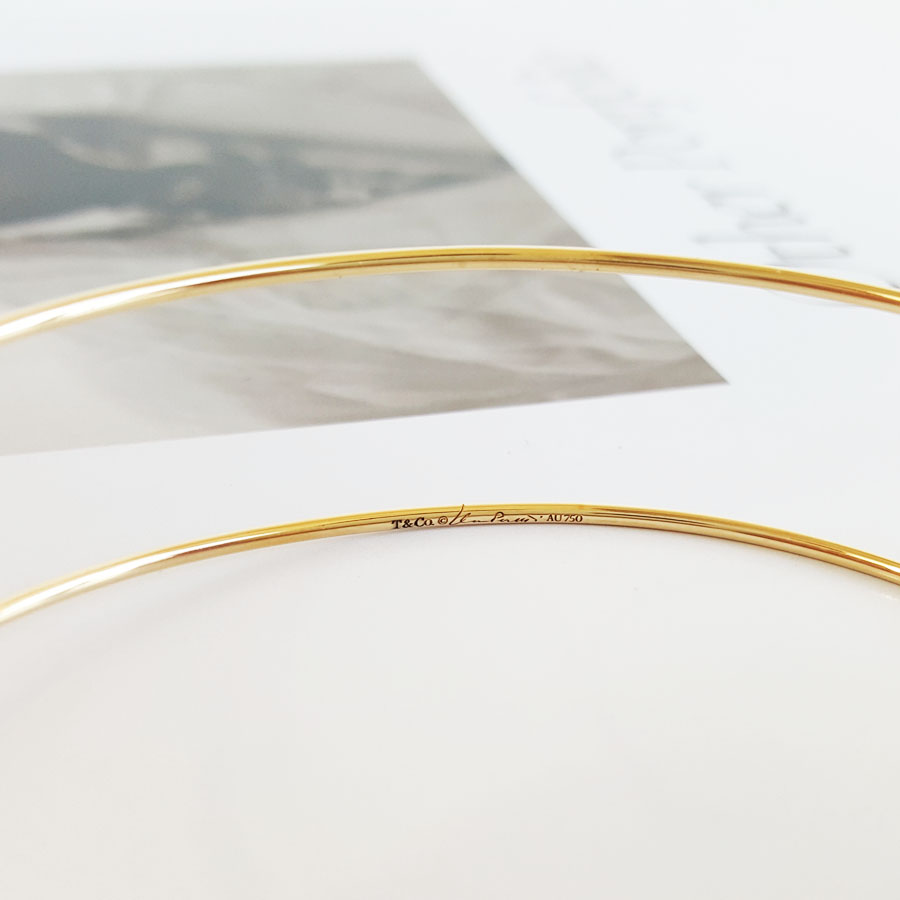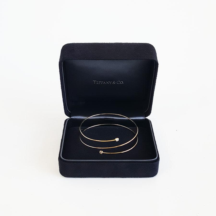 【95新】Tiffany & Co.蒂芙尼Elsa Peretti系列18K黄金双环双钻线圈手镯腕围约 16-17cmm女士现售价9500特价!260724NJS07