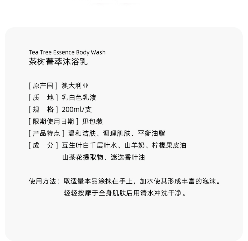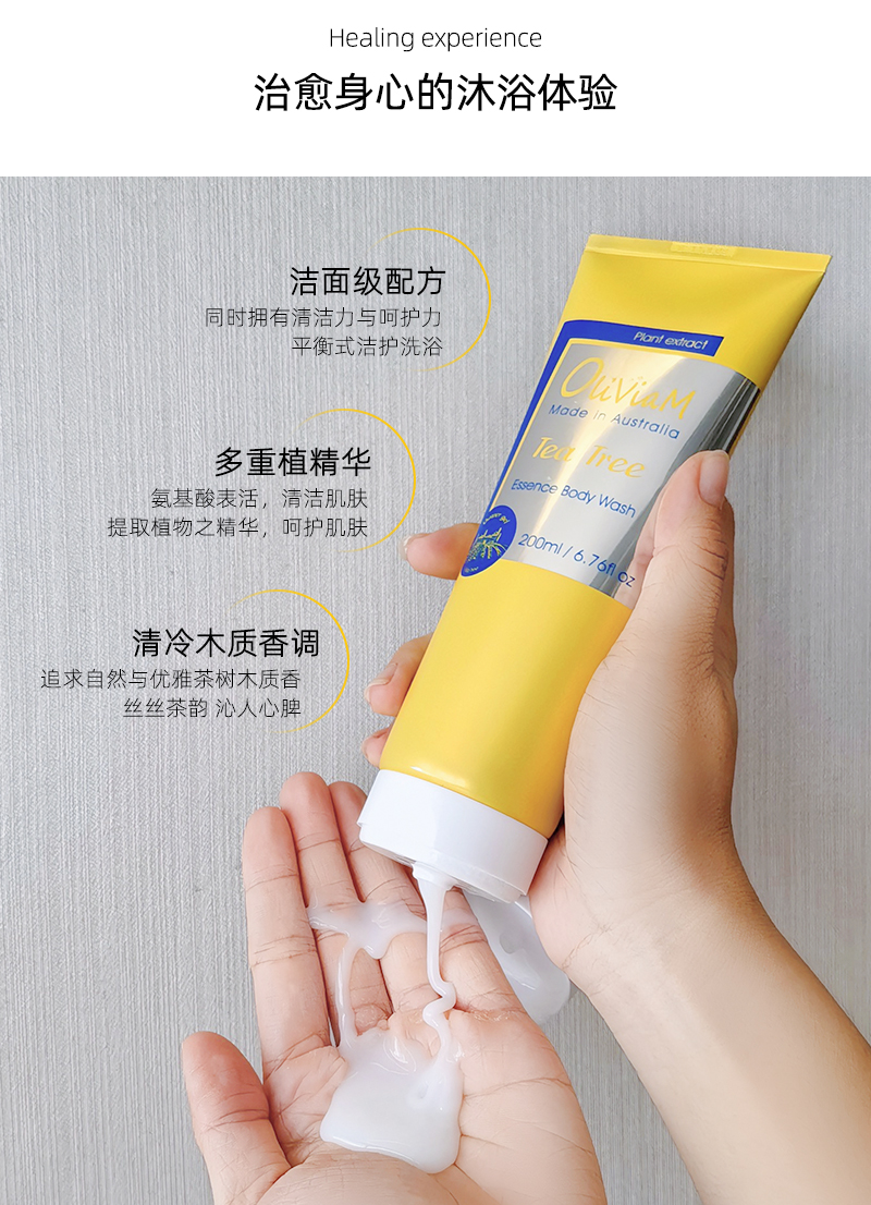 【买一送一】Oliviam澳莉维亚澳洲进口茶树菁萃沐浴乳深层清洁保湿舒缓持久留香200ml 黄色。新日期到27年