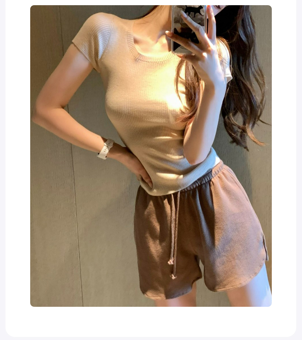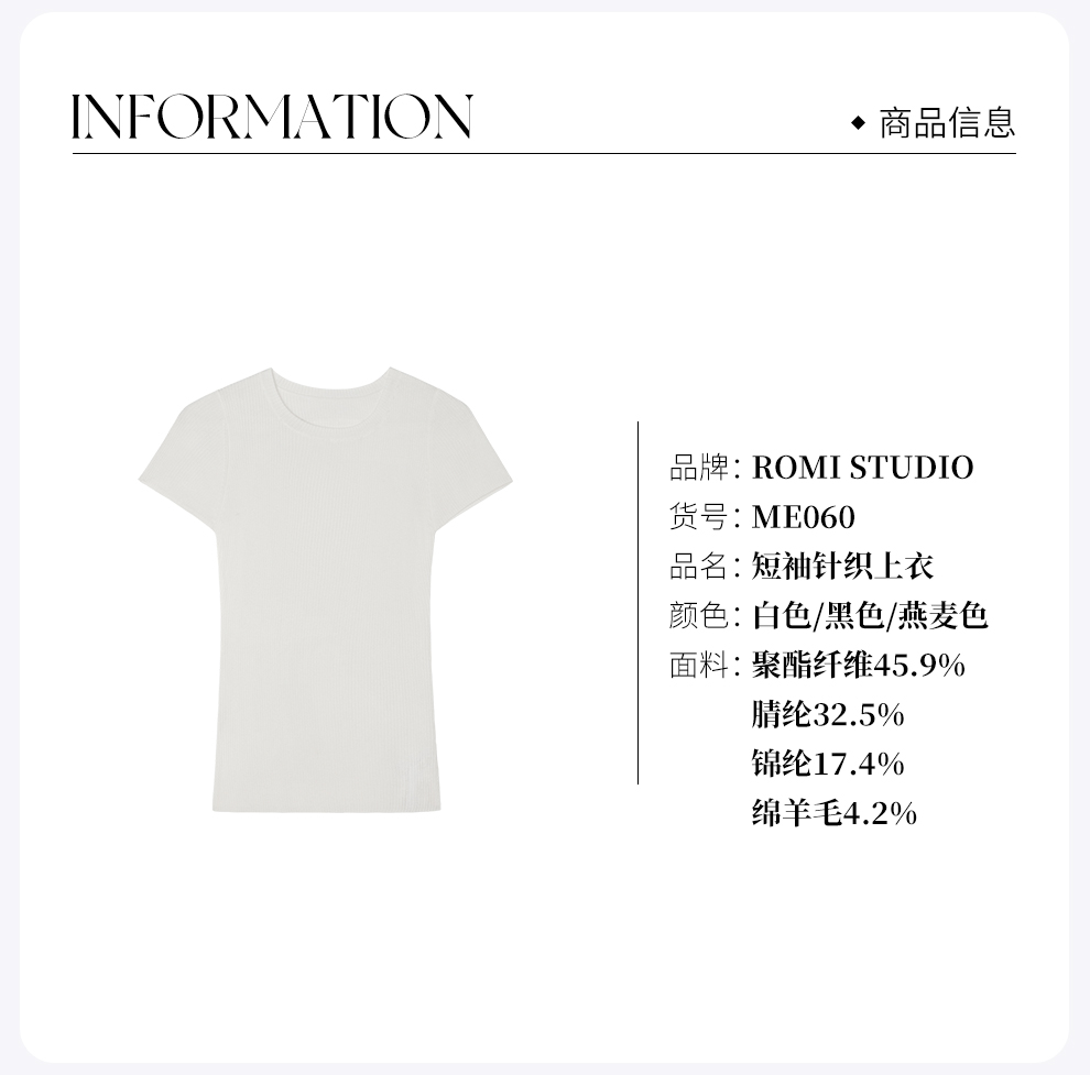 ROMI STUDIO【luxy系列】心头爱短袖针织上衣 内搭要配浅色 ME060