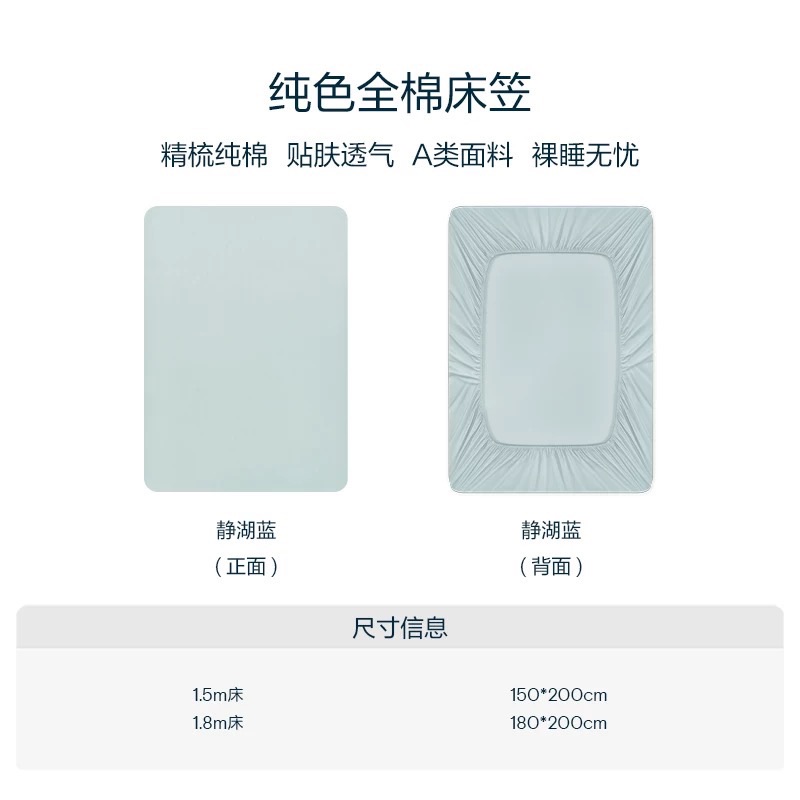 【亚D同款】FanNai梵奈 深度睡眠纯棉床笠 柔软舒适 透气不闷热 360°不移位 A类面料