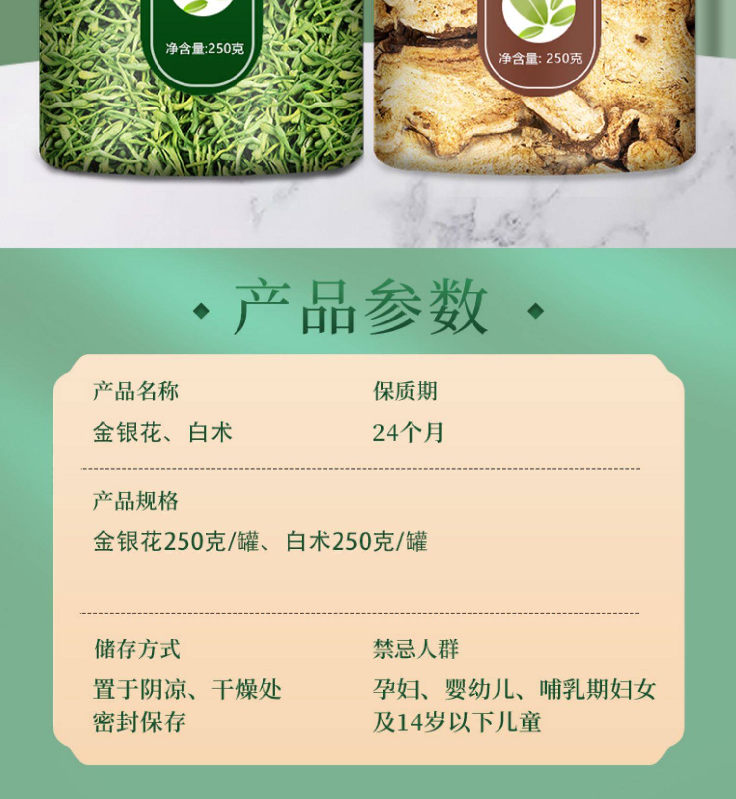 金银花白术正品官方旗舰店中药材野生炒生片500g克粉的功效与作用