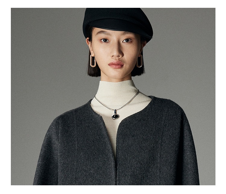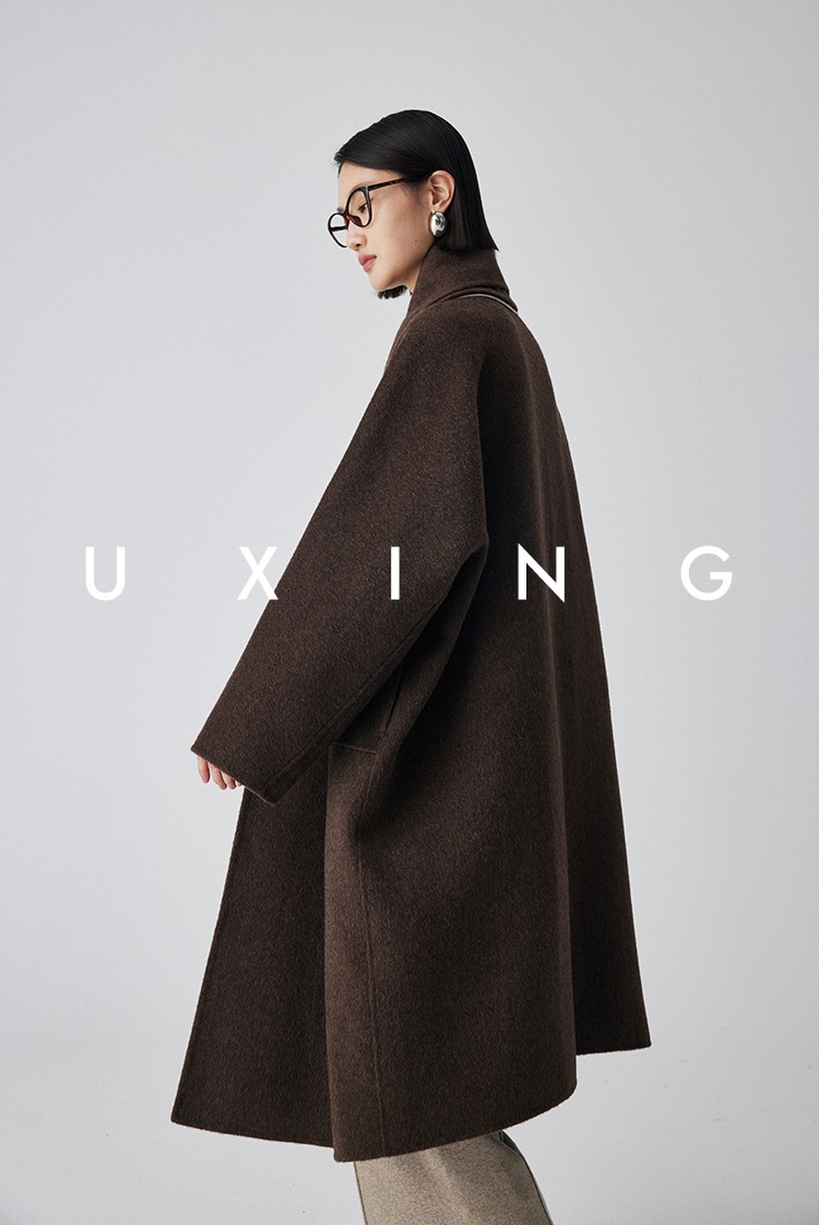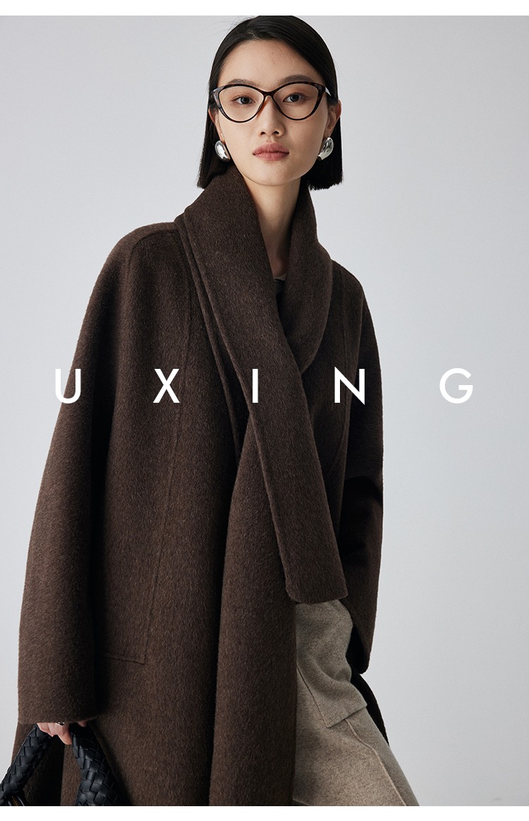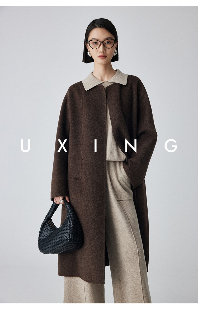 原形设计感驼绒羊毛双面呢大衣女2023秋冬季新款宽松毛呢外套