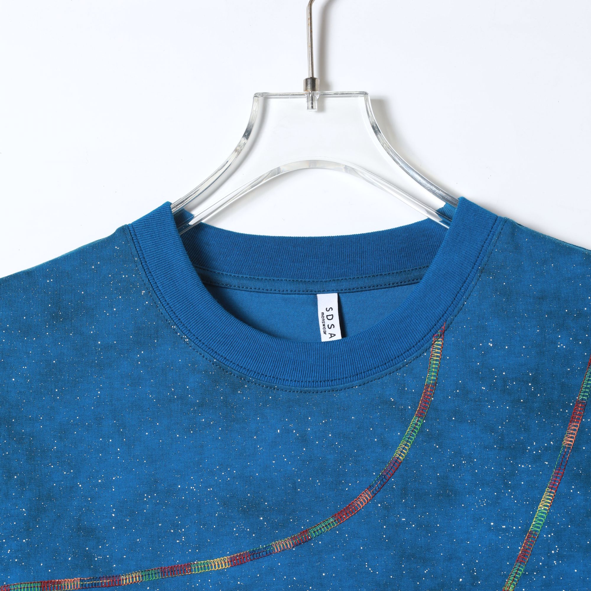 SDSA男装2026新款轻奢潮牌时尚满天星彩色明线圆领短袖T恤百搭