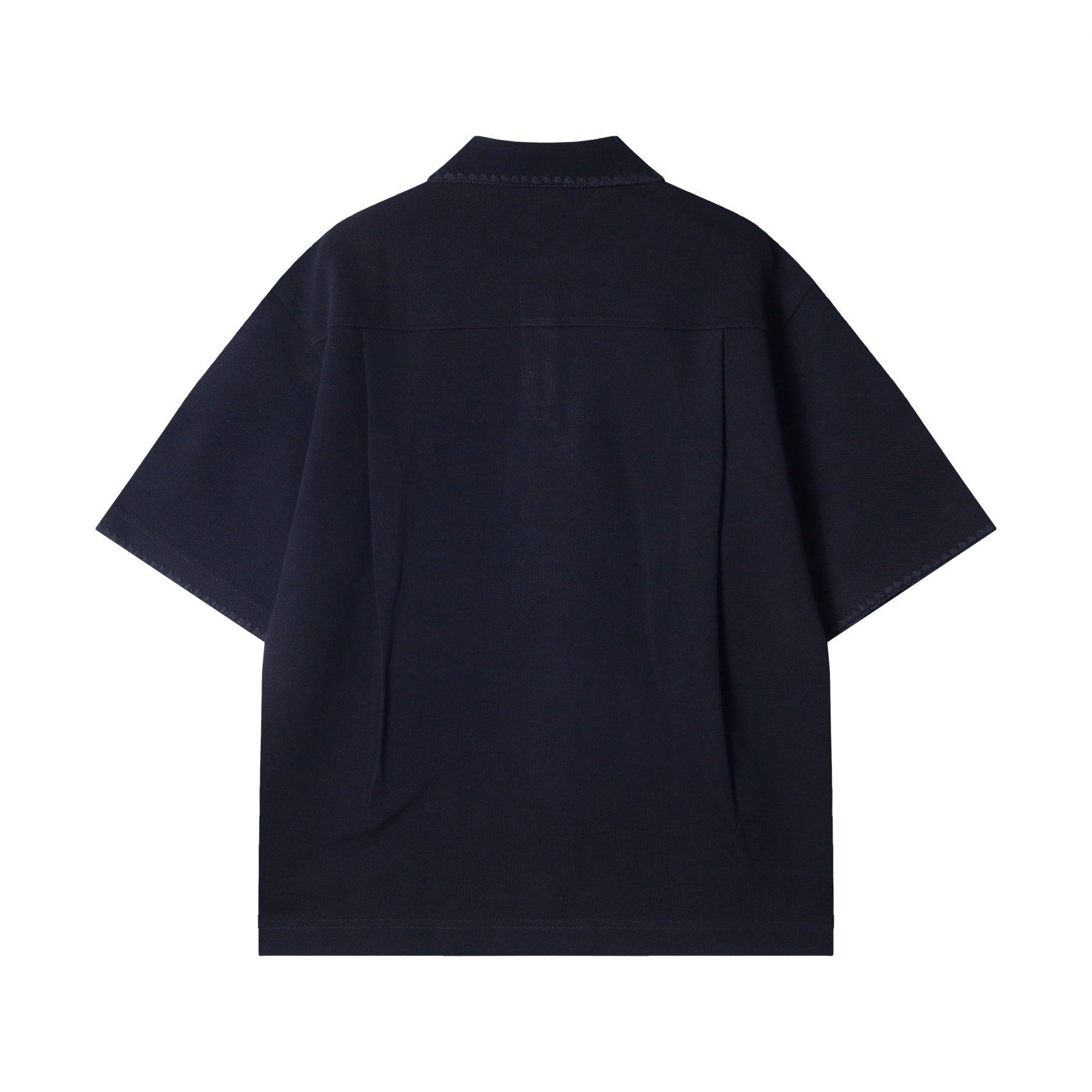 513015早春新款时尚个性纯色刺绣半纽扣翻领短袖T恤商务百搭套头上衣