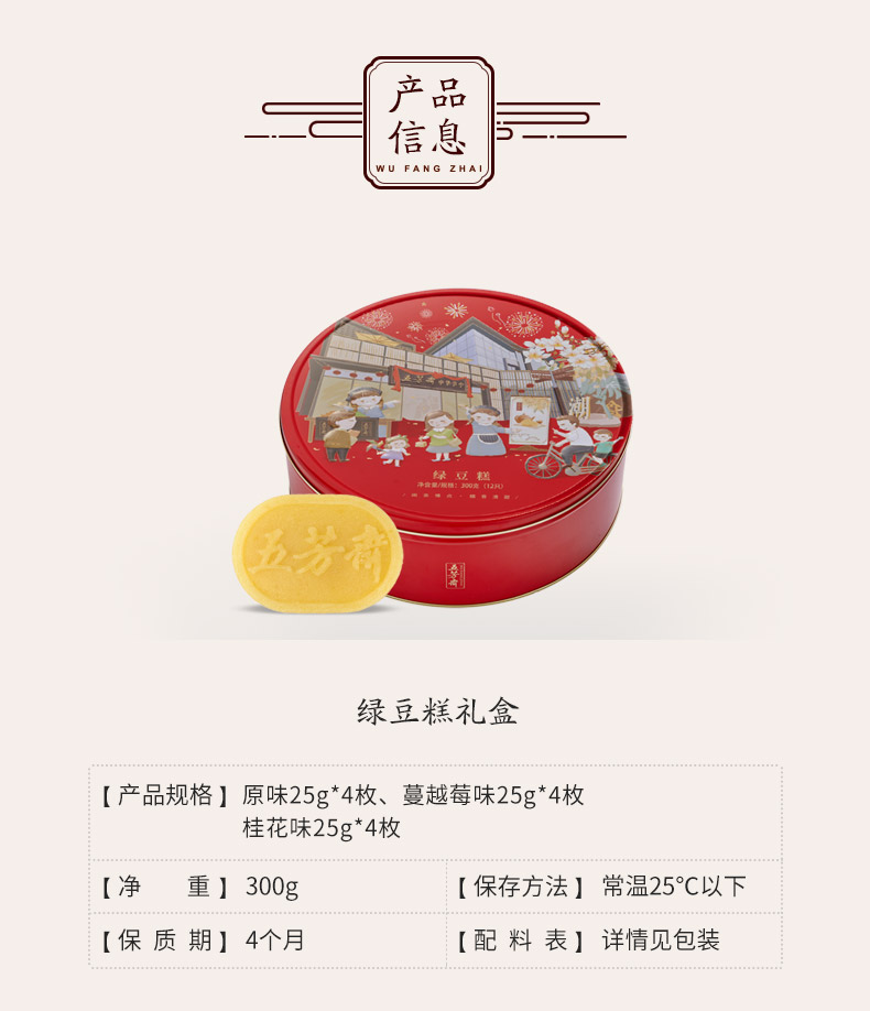 五芳斋 经典绿豆糕礼盒 25克*12枚 原味蔓越莓味桂花味绿豆糕
