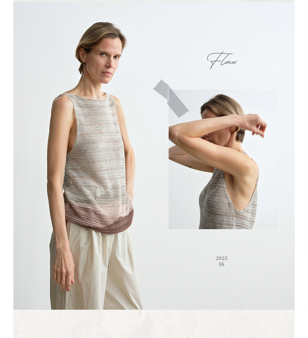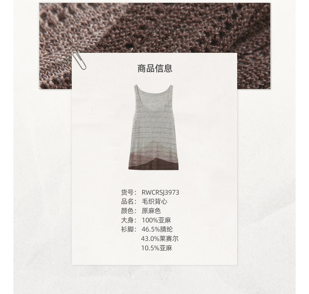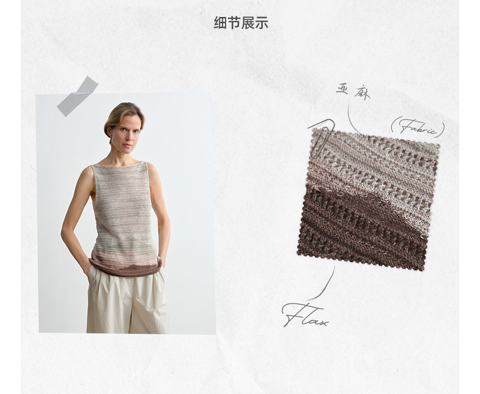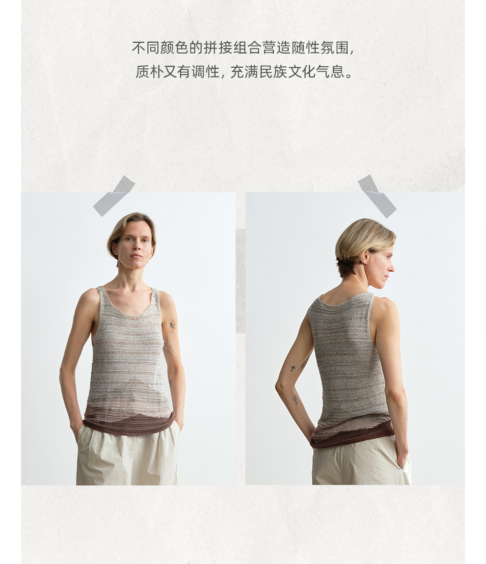 ROMI STUDIO“松弛气息”100%亚麻宽松镂空U领拼接背心 RWCRSJ3973