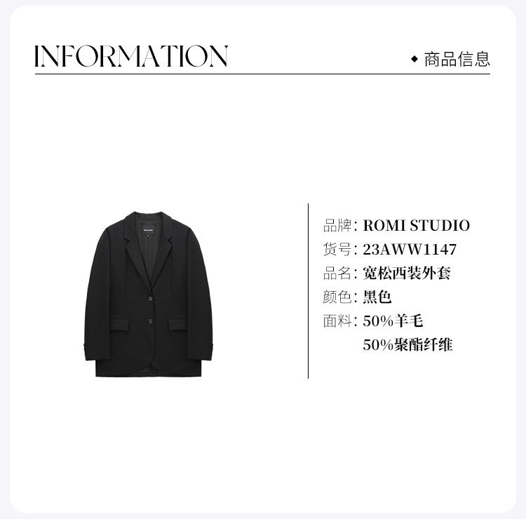 ROMI STUDIO“棕标甄选" 70羊毛混纺半麻衬宽松西装外套 23AWW1147