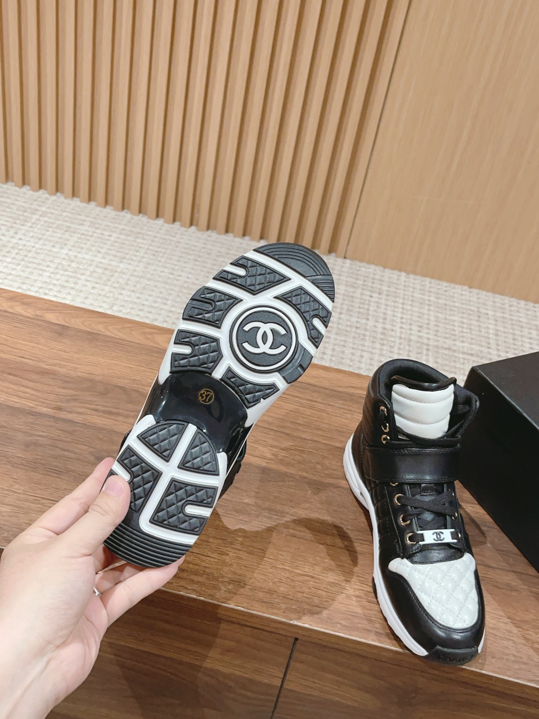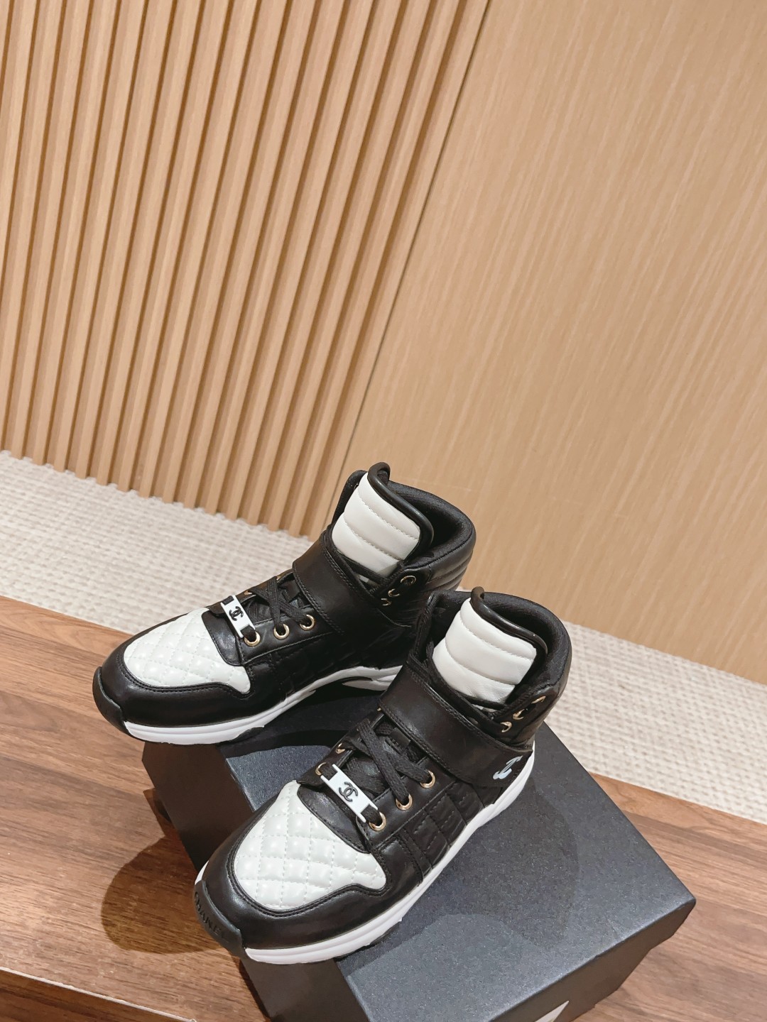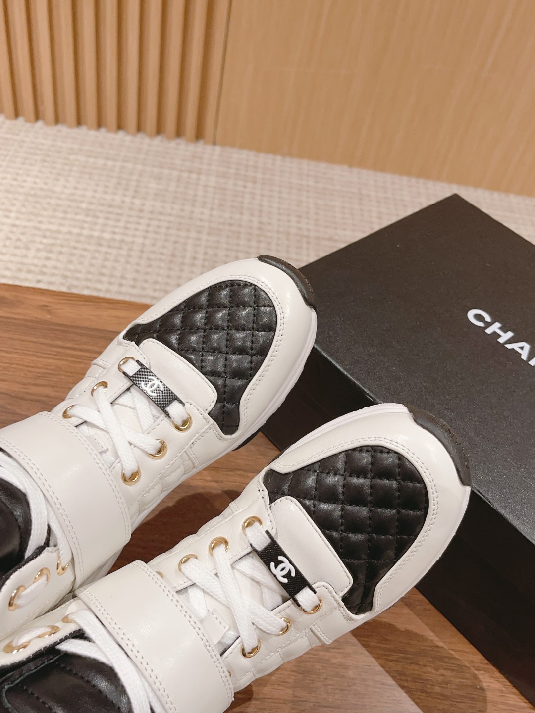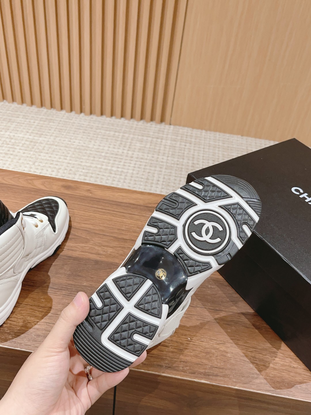 【运动底】 Chan*l 小香 23A最新款 全皮 熊猫配色 菱格小白鞋 休闲 运动鞋 滑板鞋 高帮鞋