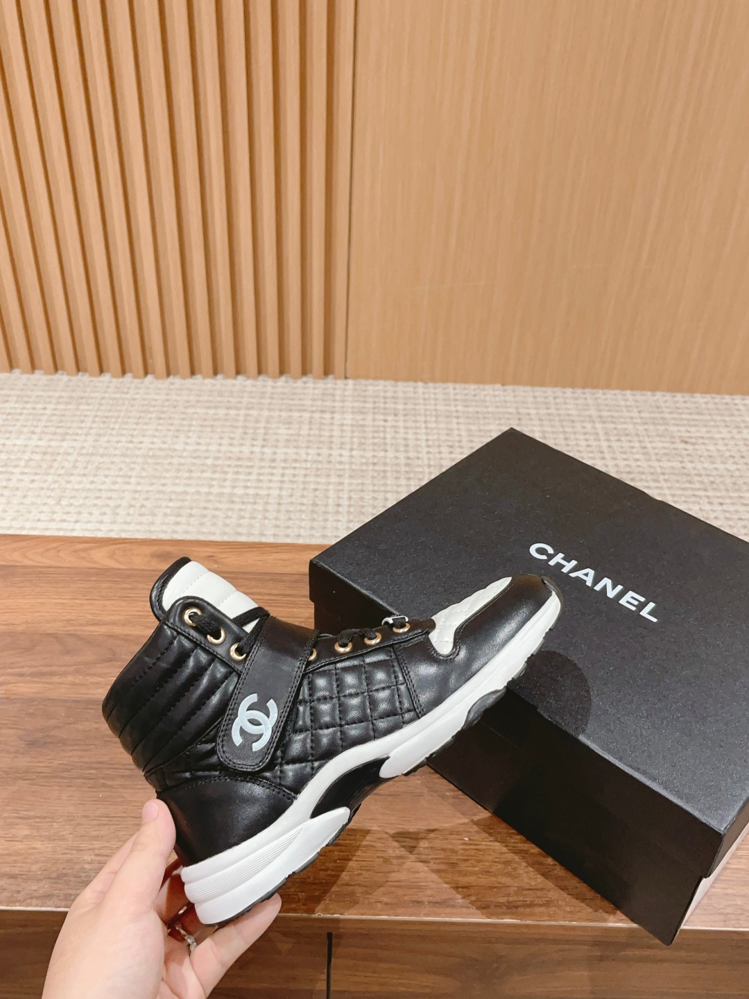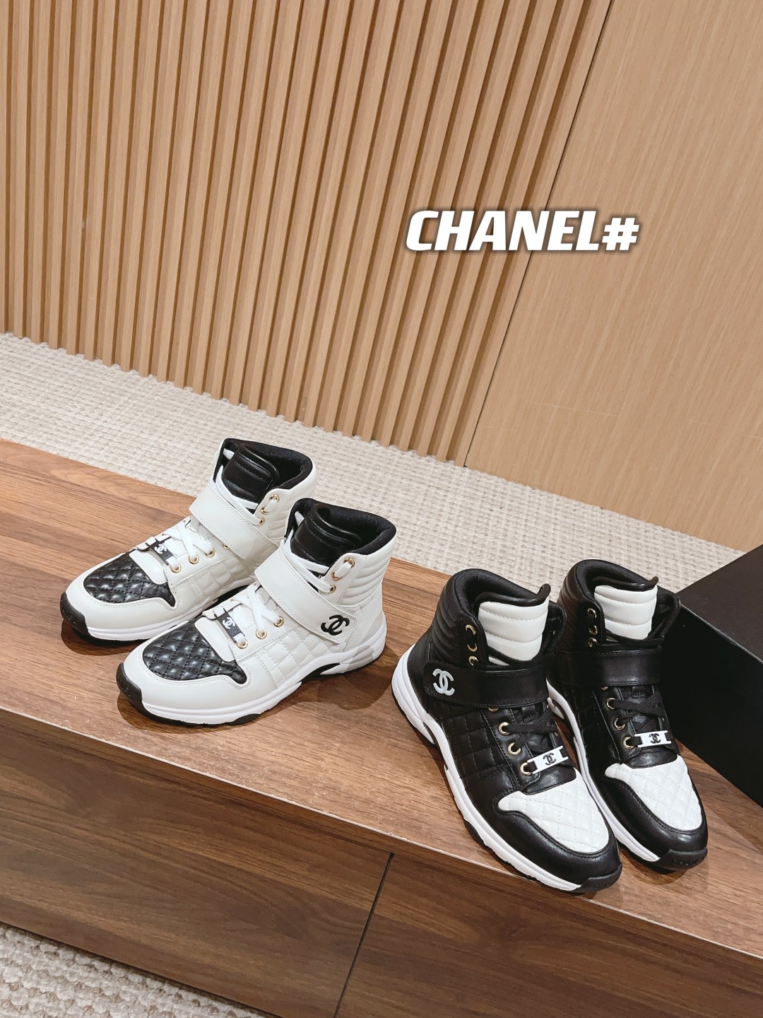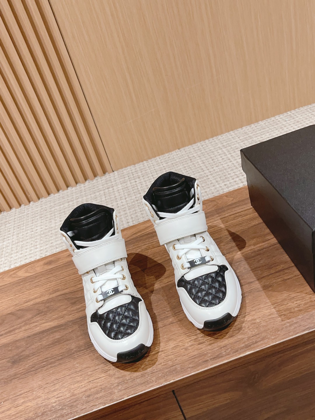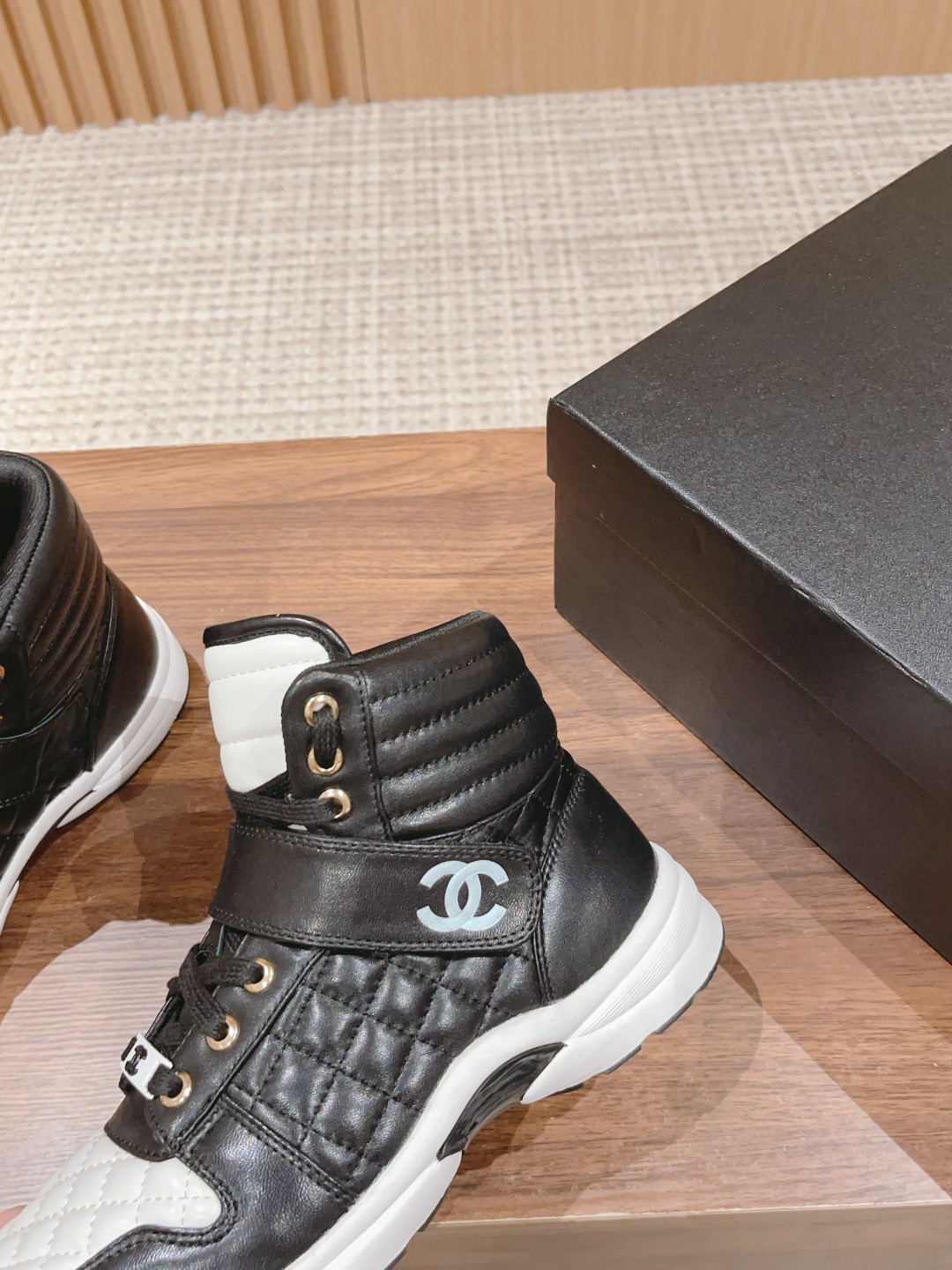【运动底】 Chan*l 小香 23A最新款 全皮 熊猫配色 菱格小白鞋 休闲 运动鞋 滑板鞋 高帮鞋