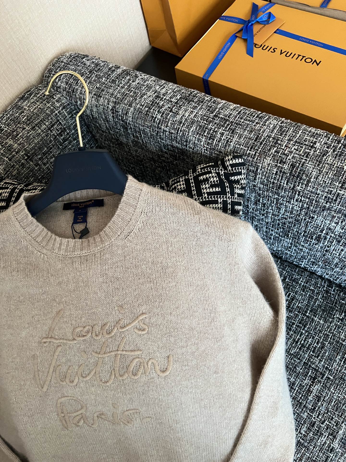 Louis Vuitton25秋冬新款针织毛衣🐮16900购买Zp拆解打造,订织订染美利奴进口面料🐮 真正用到100%羊绒纱线织布做到对版出货💪工艺放大看细节除还原度接近98以上 做工也无敌了🔥真正做到1:1还原 直接闭着眼购买👀码数:S M L