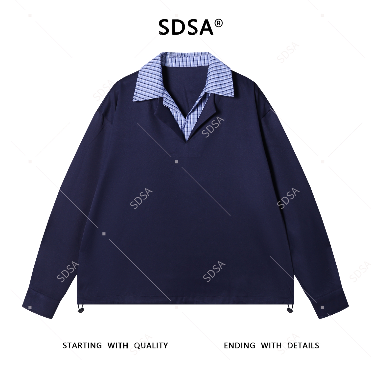 SDSA男士秋冬新款痞帅男装潮牌拼接翻领长袖衬衣下摆松紧设计百搭