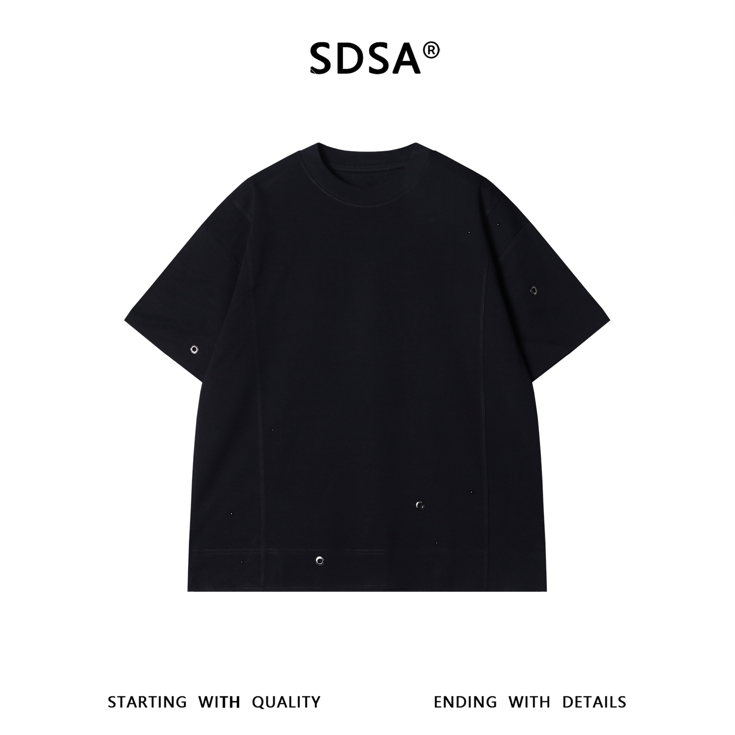 SDSA男装2026新款轻奢简约金属铆钉装饰圆领短袖T恤百搭纯色上衣