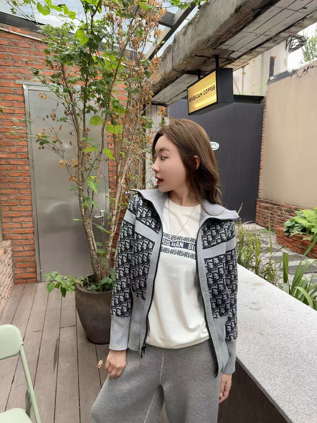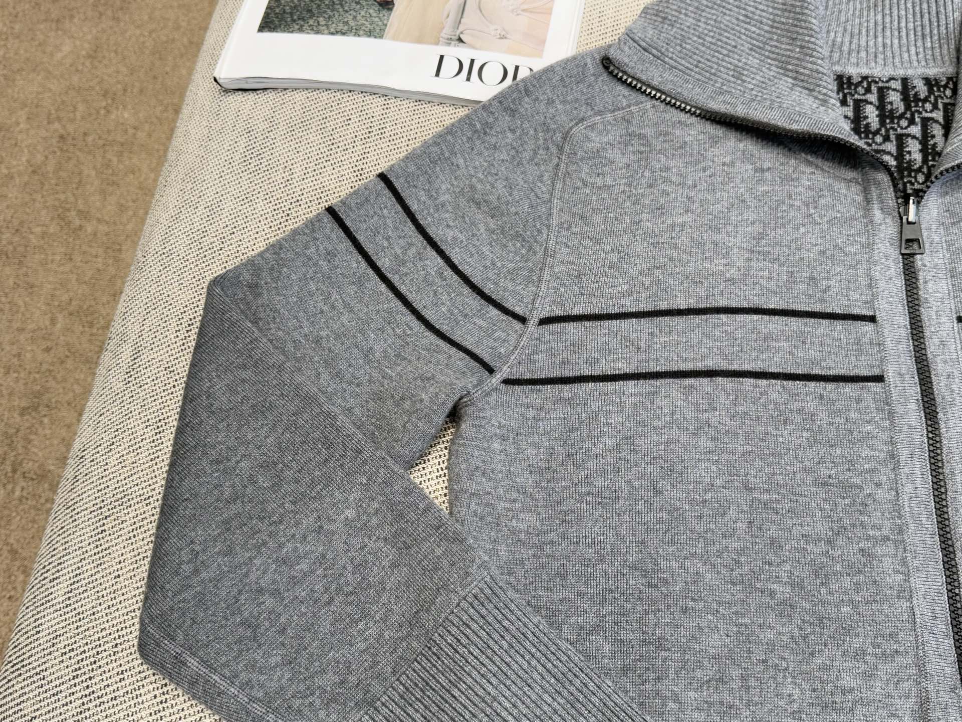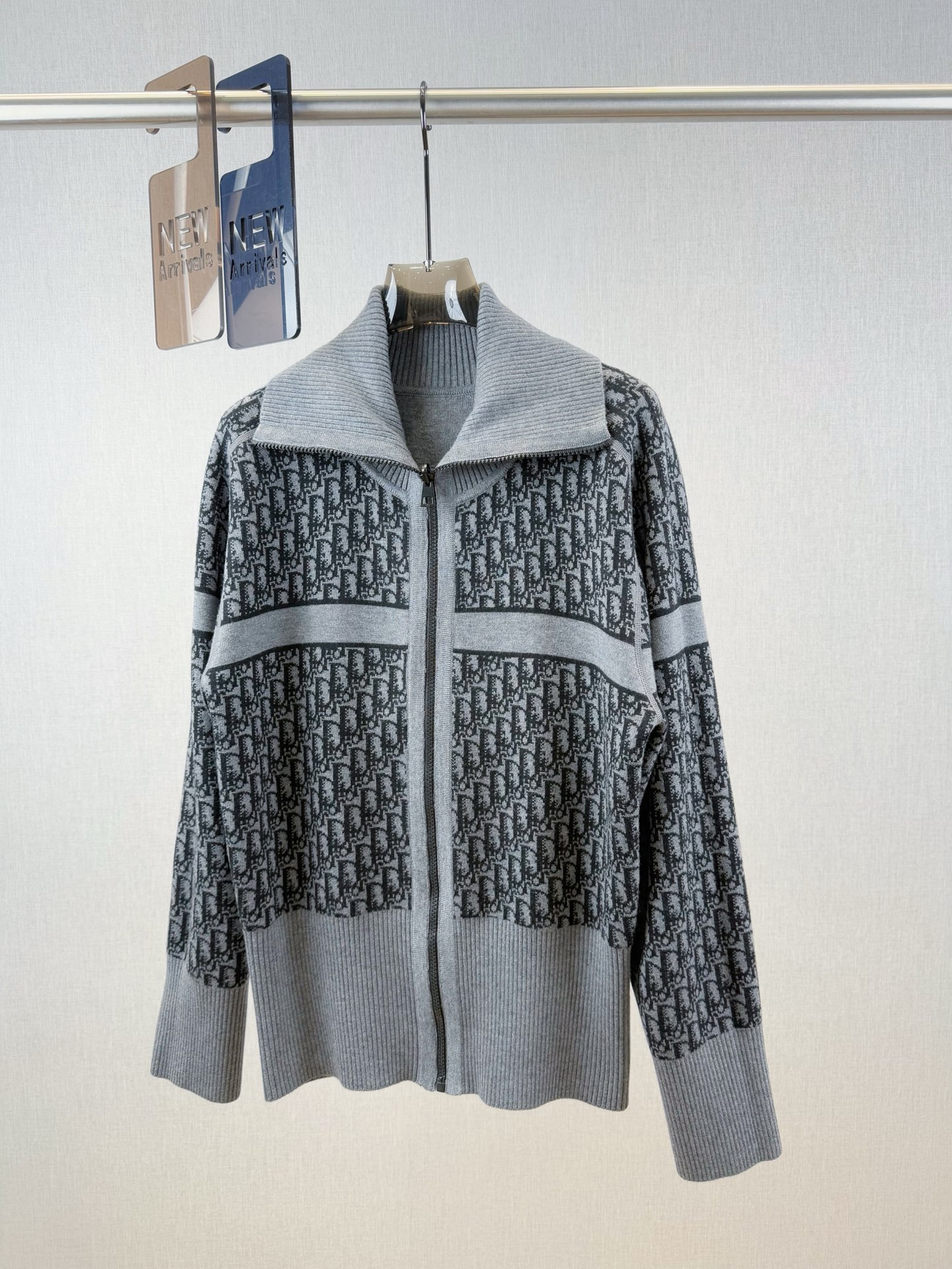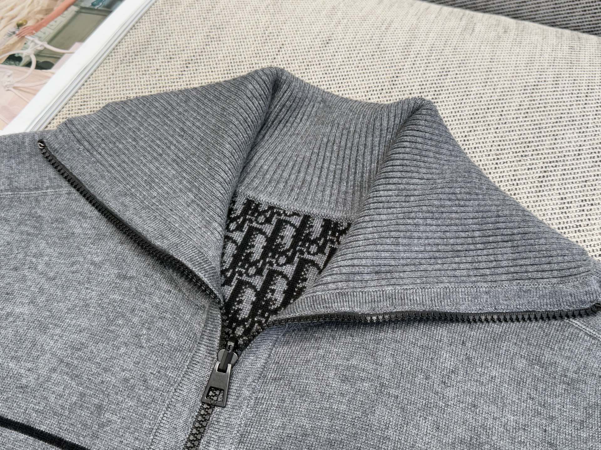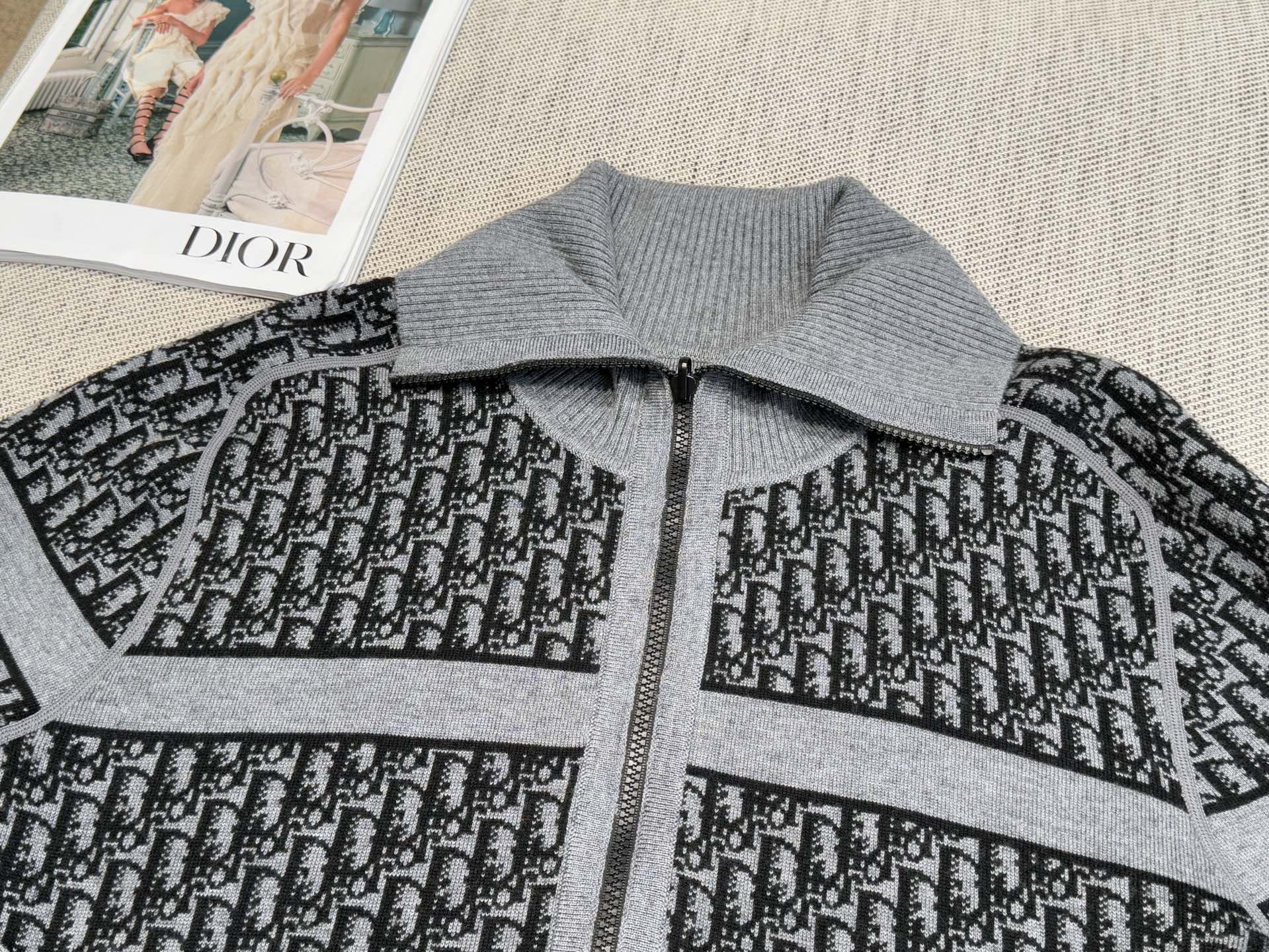 两面穿立领拉链开衫裁剪,一面是立体D字母logo提花,经典Oblique 印花图案,背后CD品牌字母提花