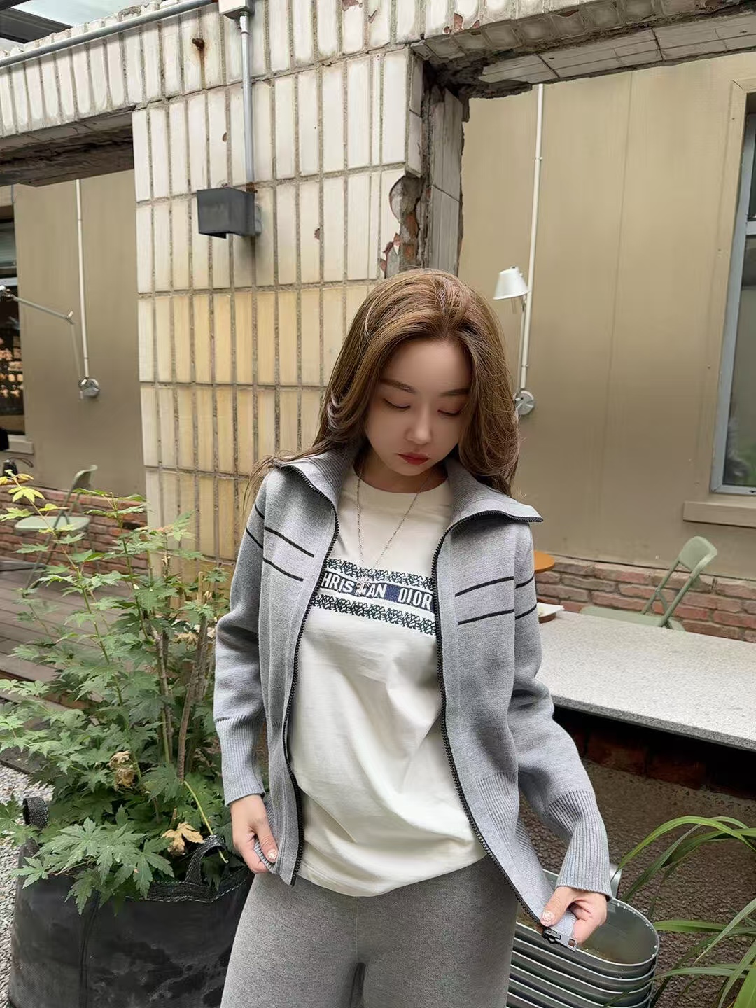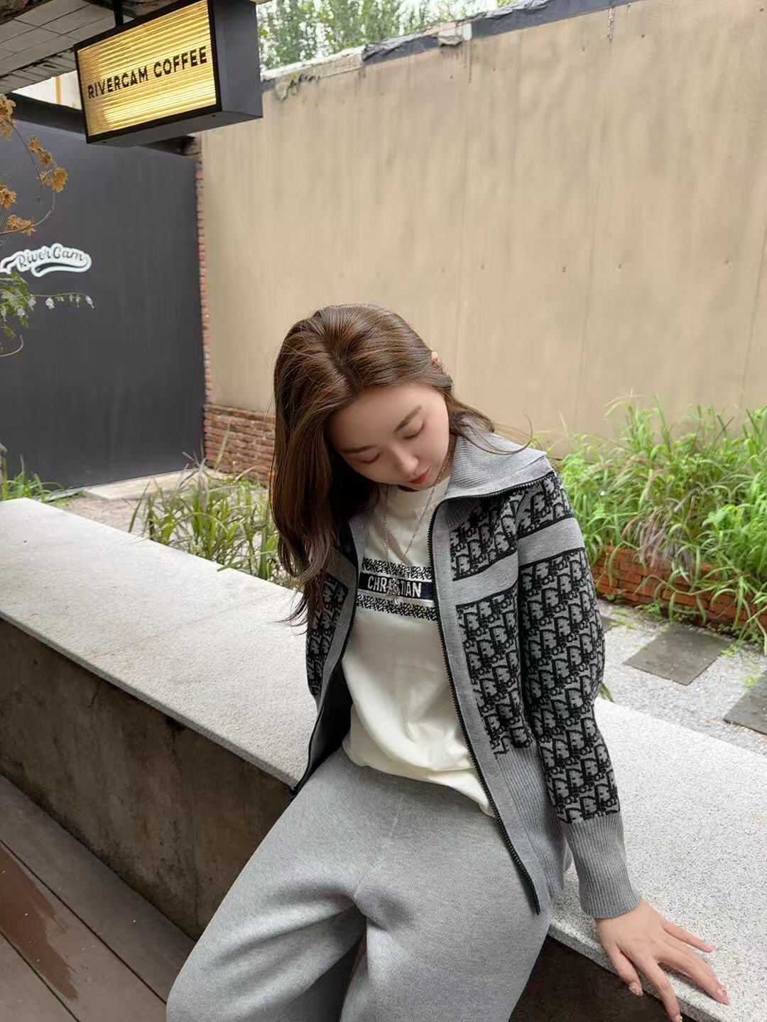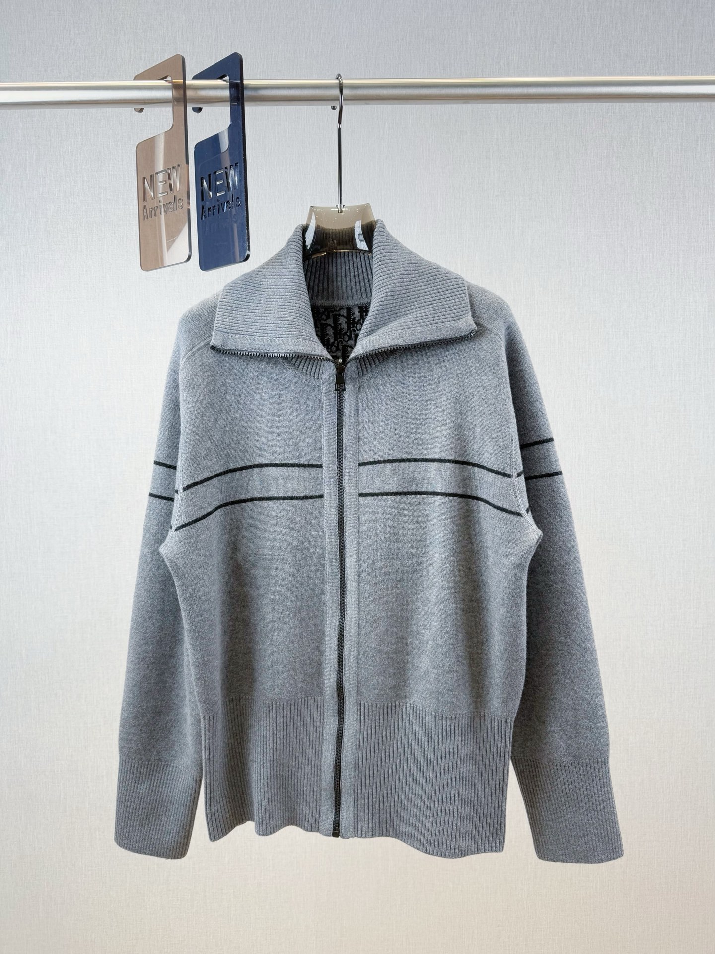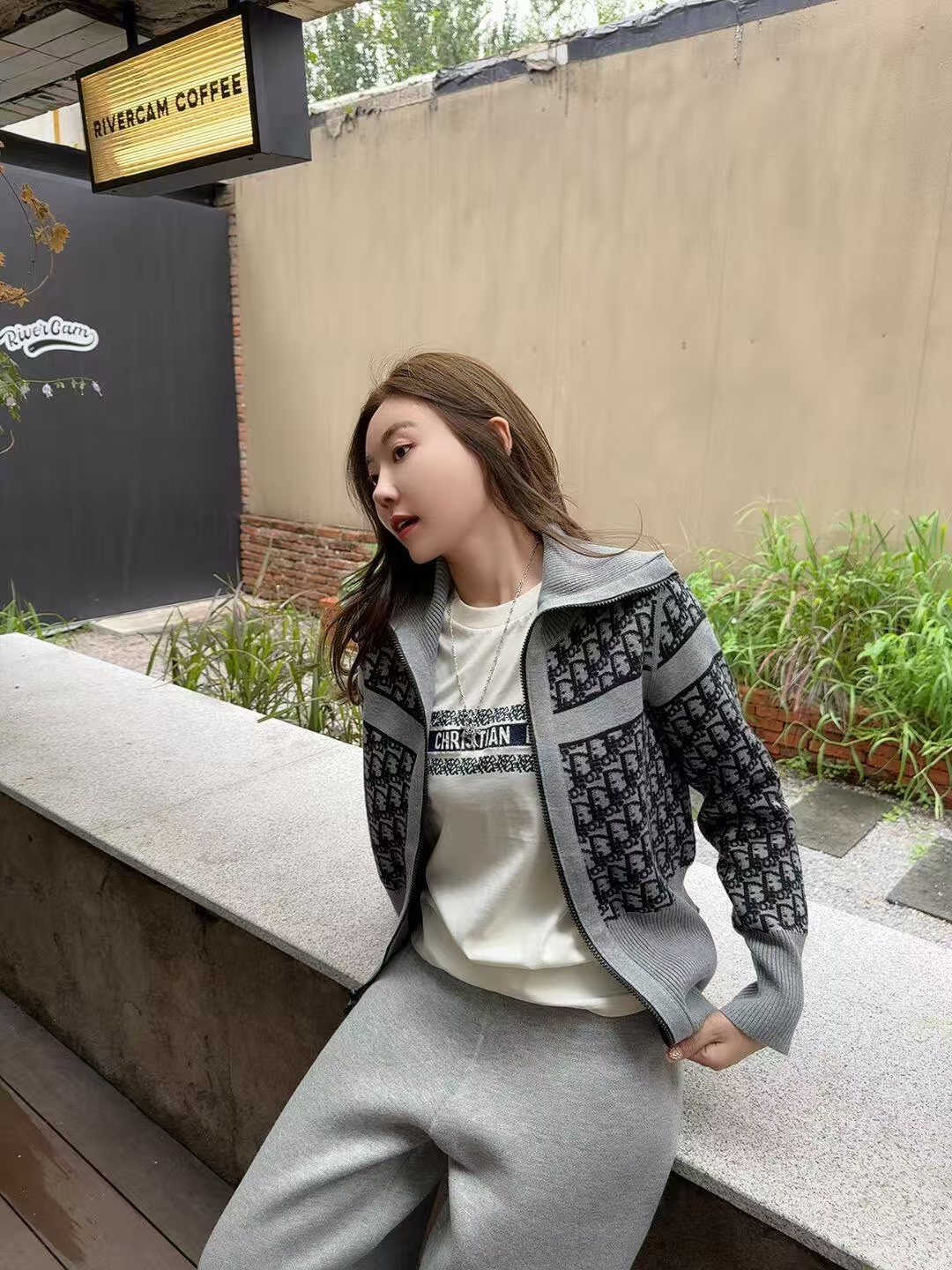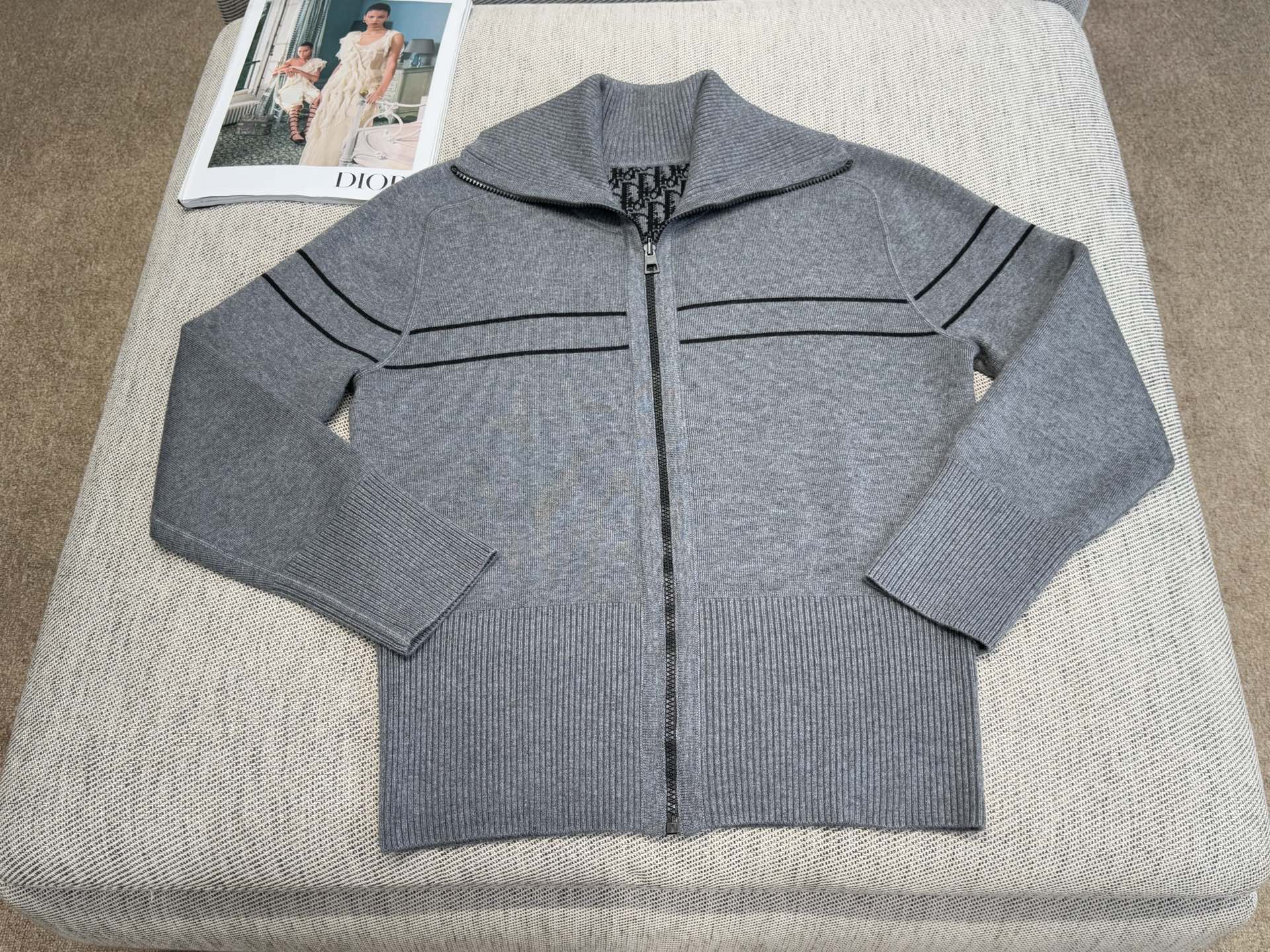 两面穿立领拉链开衫裁剪,一面是立体D字母logo提花,经典Oblique 印花图案,背后CD品牌字母提花