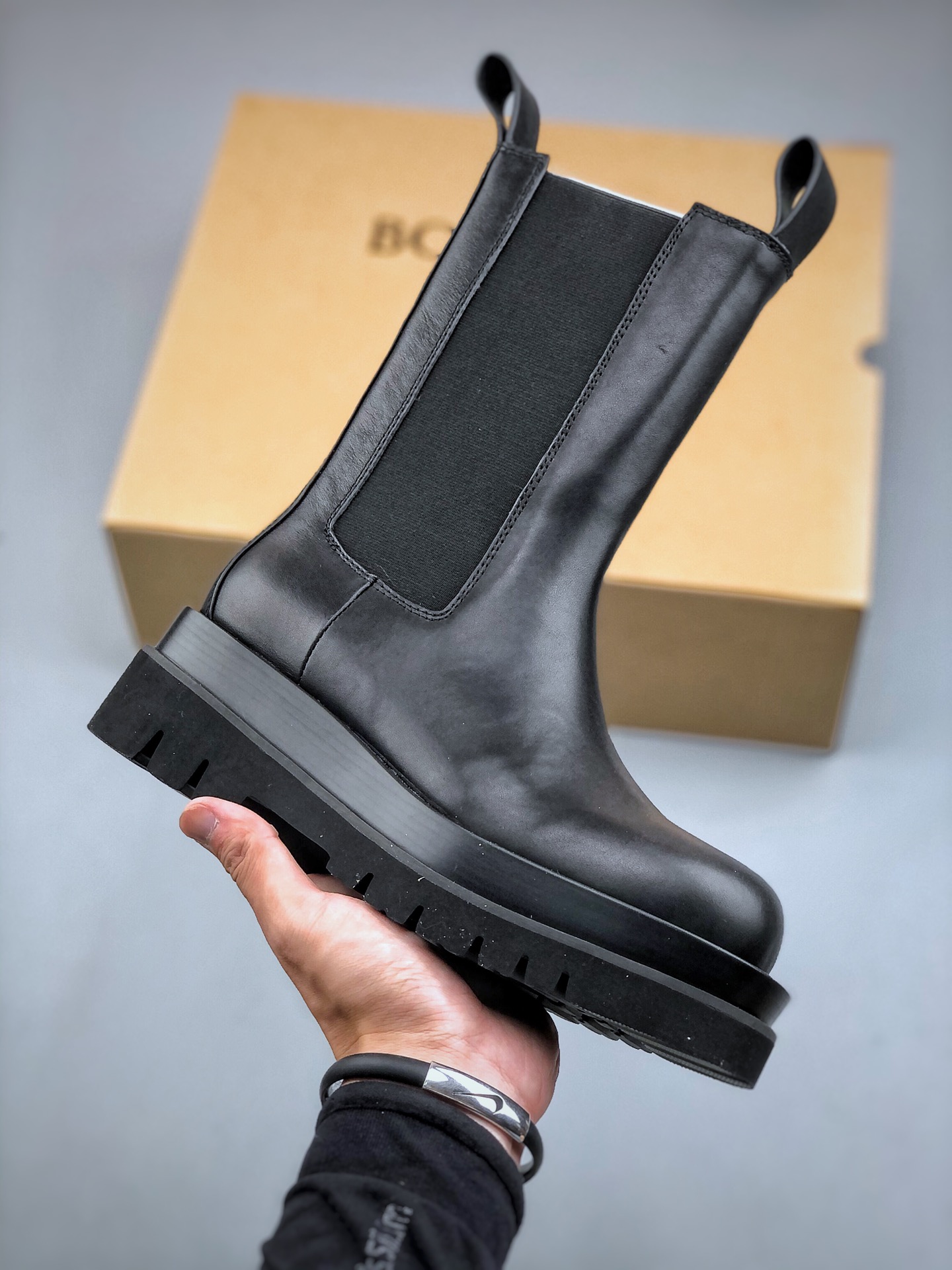 BOT*GA VE*TA·葆蝶家 意大利奢侈品牌2023新款 BV松糕厚底靴 松糕厚底增高中筒,改变风格的BV!网红MONA同款!超级、超级显瘦的短靴!大收网红、明星喜欢!全新的设计理念,采用双层橡胶鞋底则厚实耐磨,8-10CM厚厚的鞋底格外舒适,靴筒上干练的前后提耳确保穿脱方便!原版私模组合大底