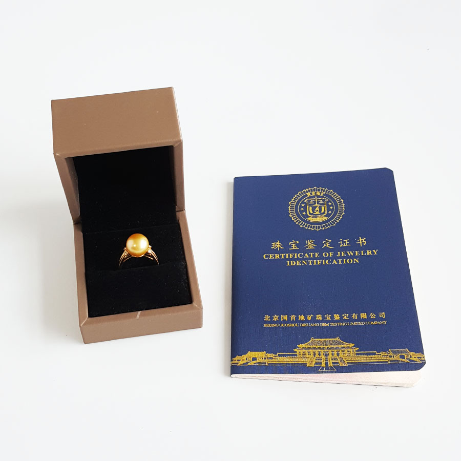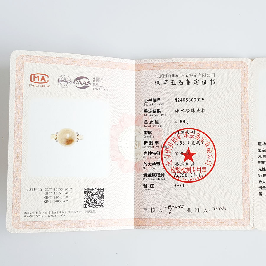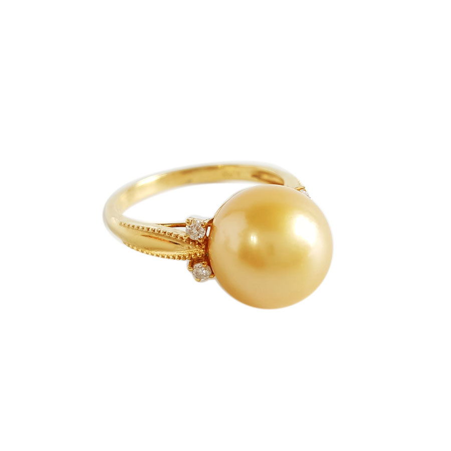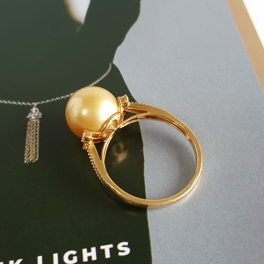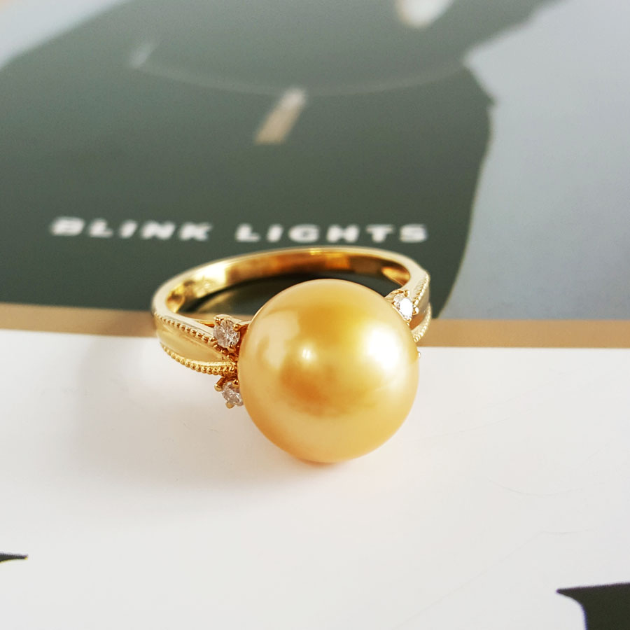 名称 | AU750黄金镶钻镶天然近完美约11.5MM浓金色南洋海水金珠戒指 |