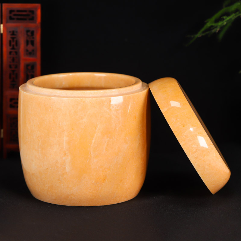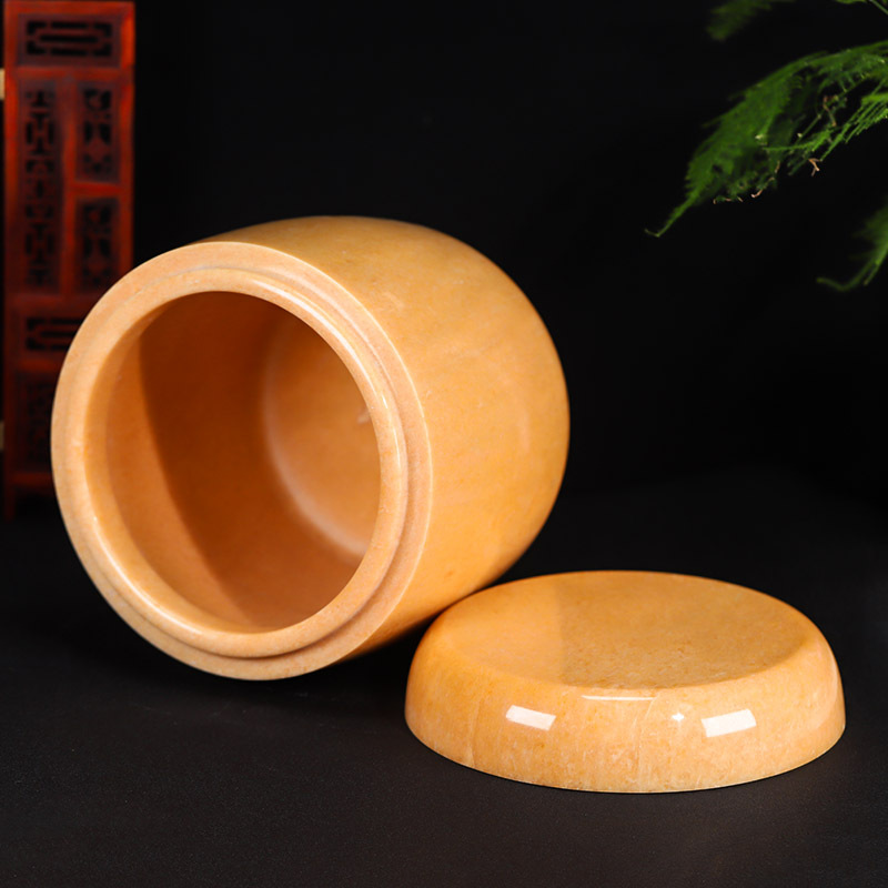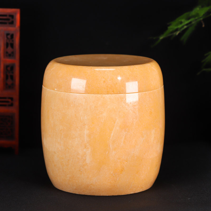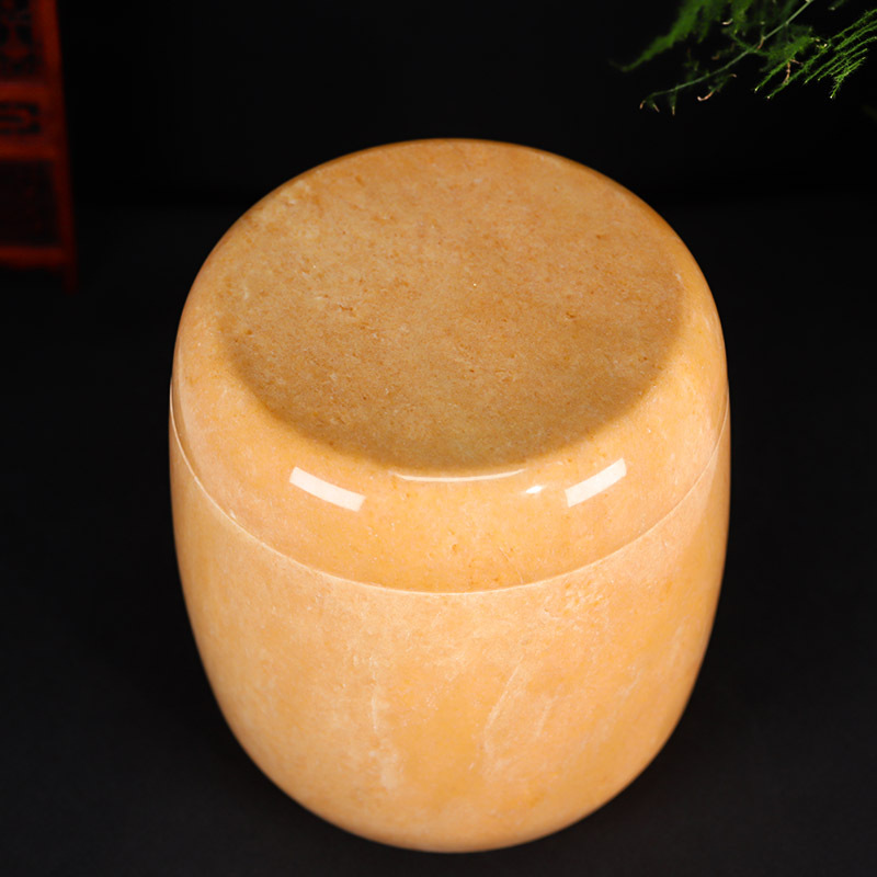 天然玉石骨灰坛米黄玉净面骨灰桶骨灰坛
