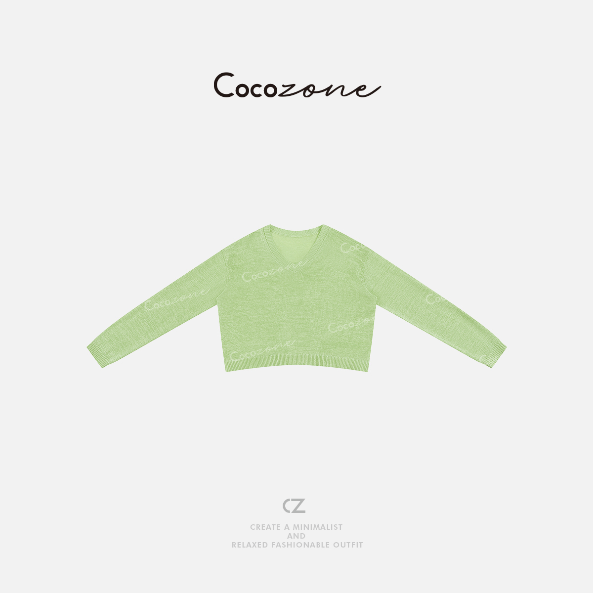 COCO ZONE 2025早春简约V领短款长袖针织衫CD2A0433