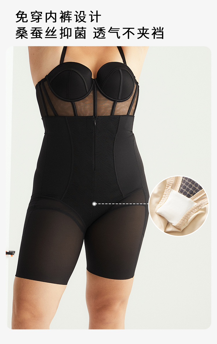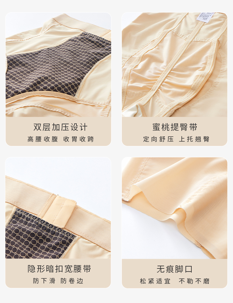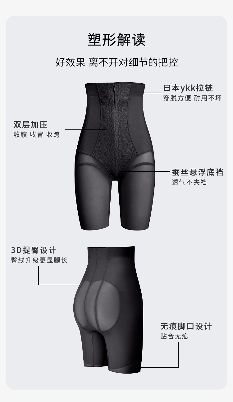 半醒黑绷带平角收腹裤 防滑提臀免穿内裤蚕丝抗菌【U0082】