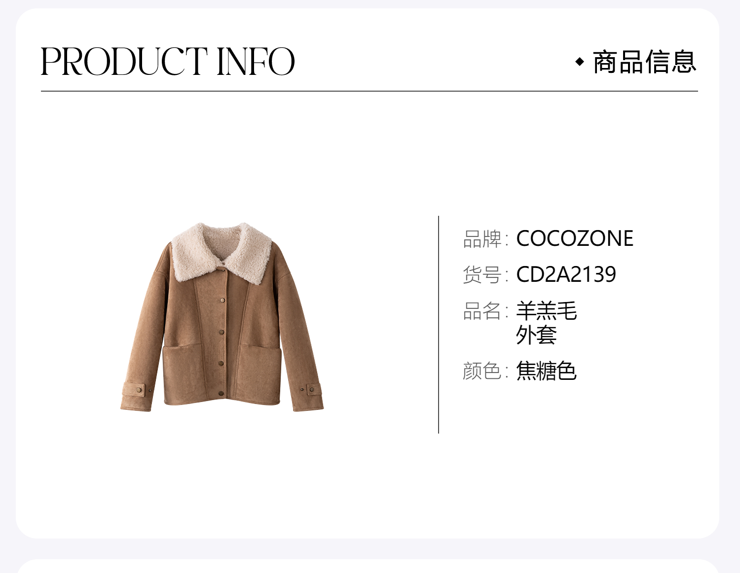 COCO ZONE 刘一一 ”小火炉“100绵羊毛复古翻领外套CD2A2139