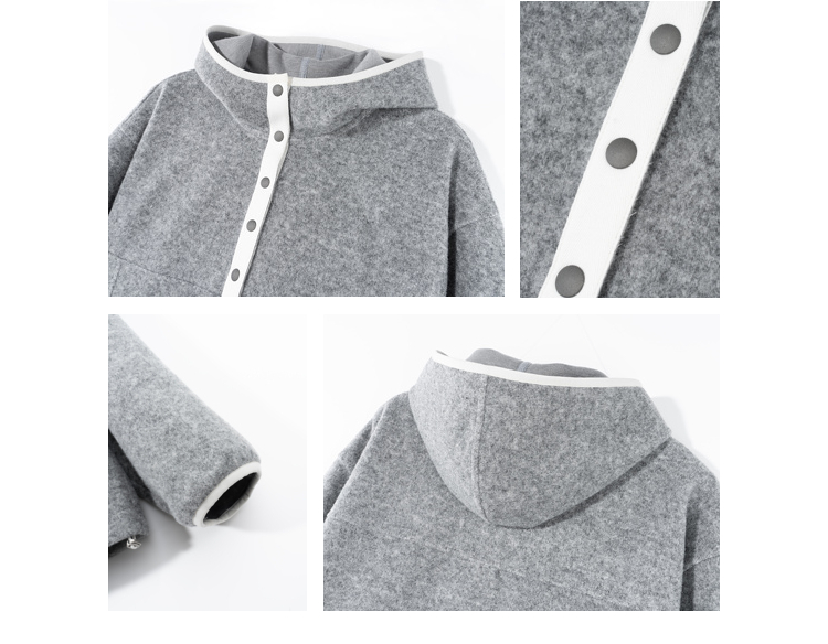 COCO ZONE 刘 一一 “肯豆女孩”羊毛混纺拉链连帽外套 CD1A1690
