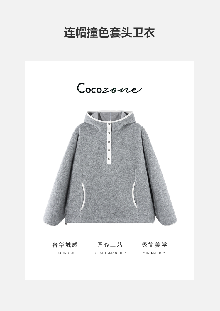 COCO ZONE 刘 一一 “温度卫衣”羊毛混纺连帽套头卫衣 CD1A1802