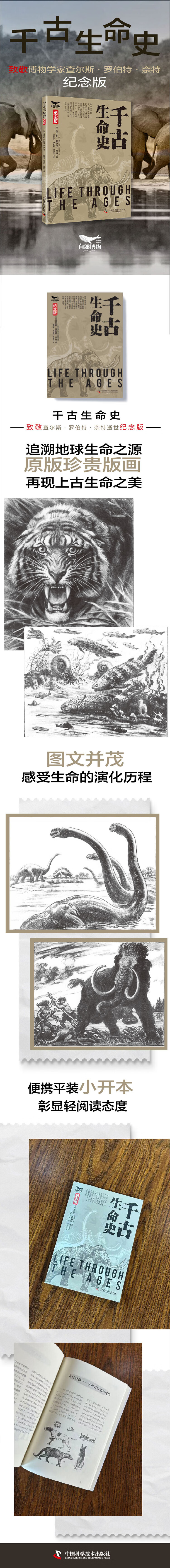《千古生命史》是美国古生物学家查尔斯·罗伯特·奈特创作的古生物科普图书,以奈特本人的古生物插画为主线,配有奈特对插画的解释文字,图文并茂,插画细致精美,文字凝练简洁。图书讨论了多种古生物的样貌以及其在演化过程中产生的变化,以及它们的生存状况和最终走向灭亡或演化至今的情况,是古代生物生活的全面图景,适合对古生物和生物演化感兴趣的读者阅读。