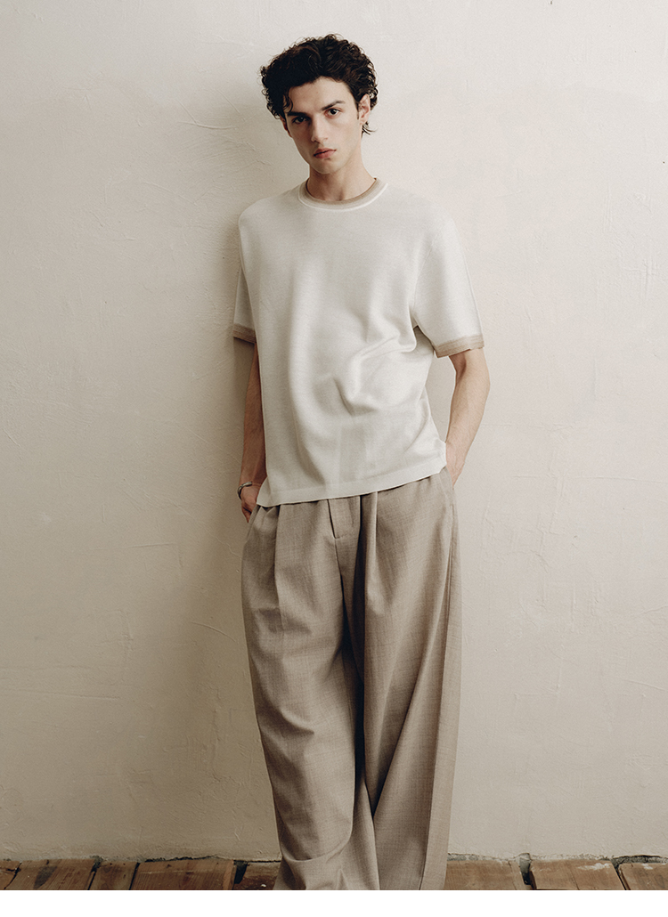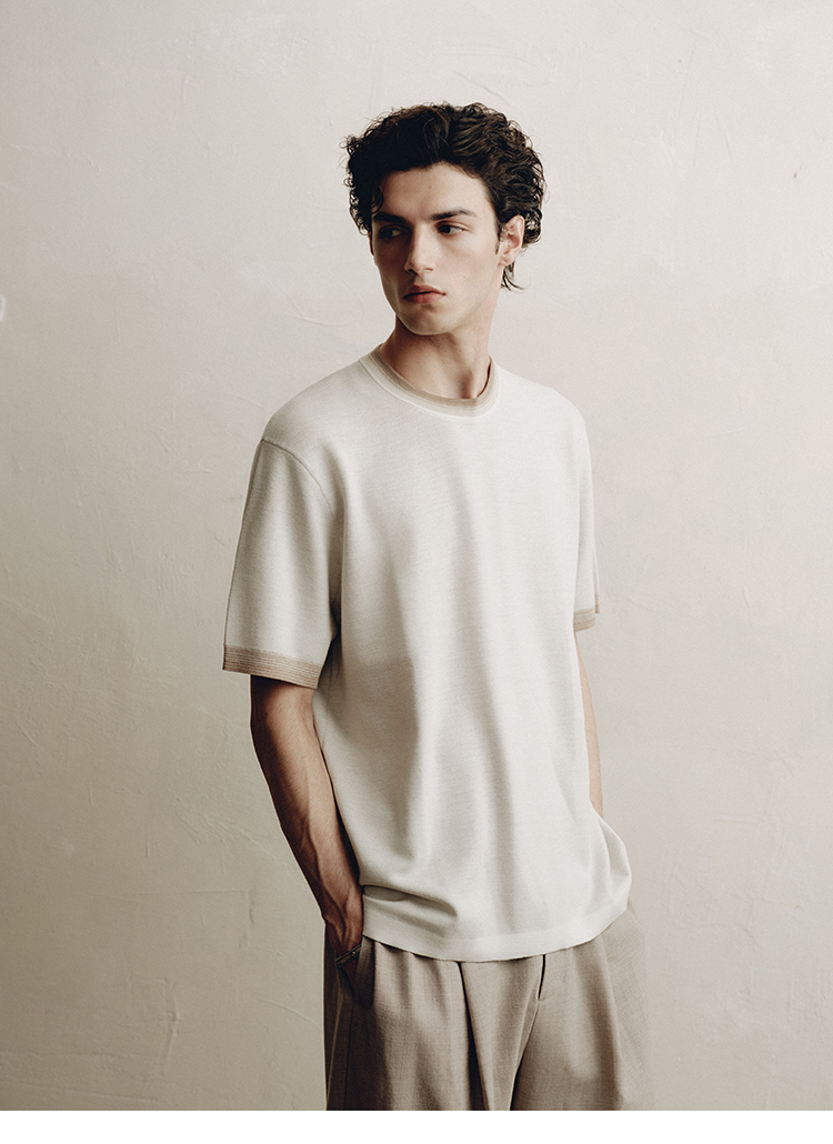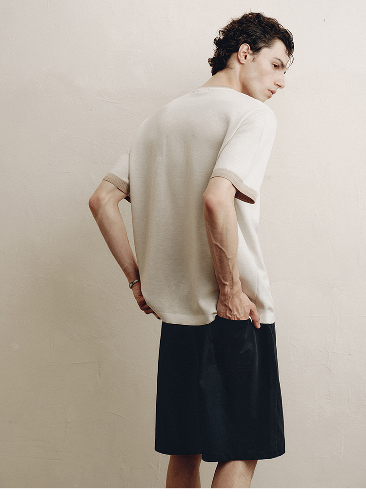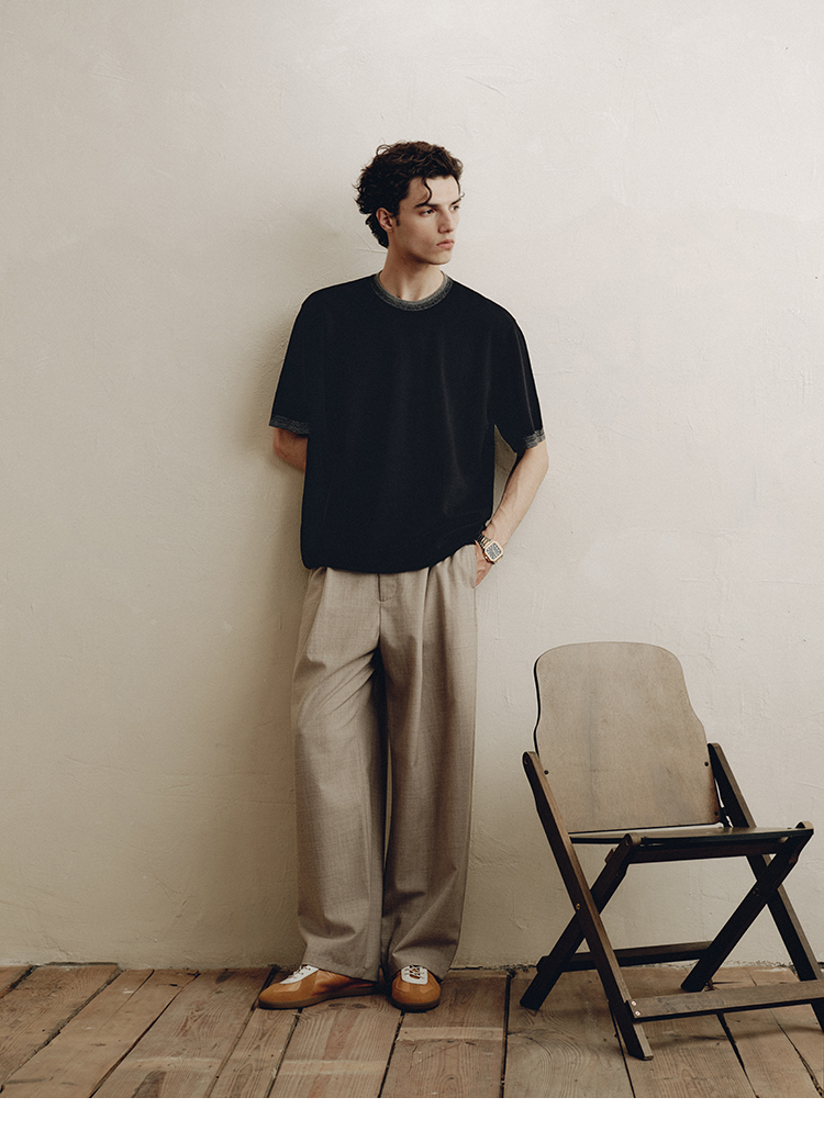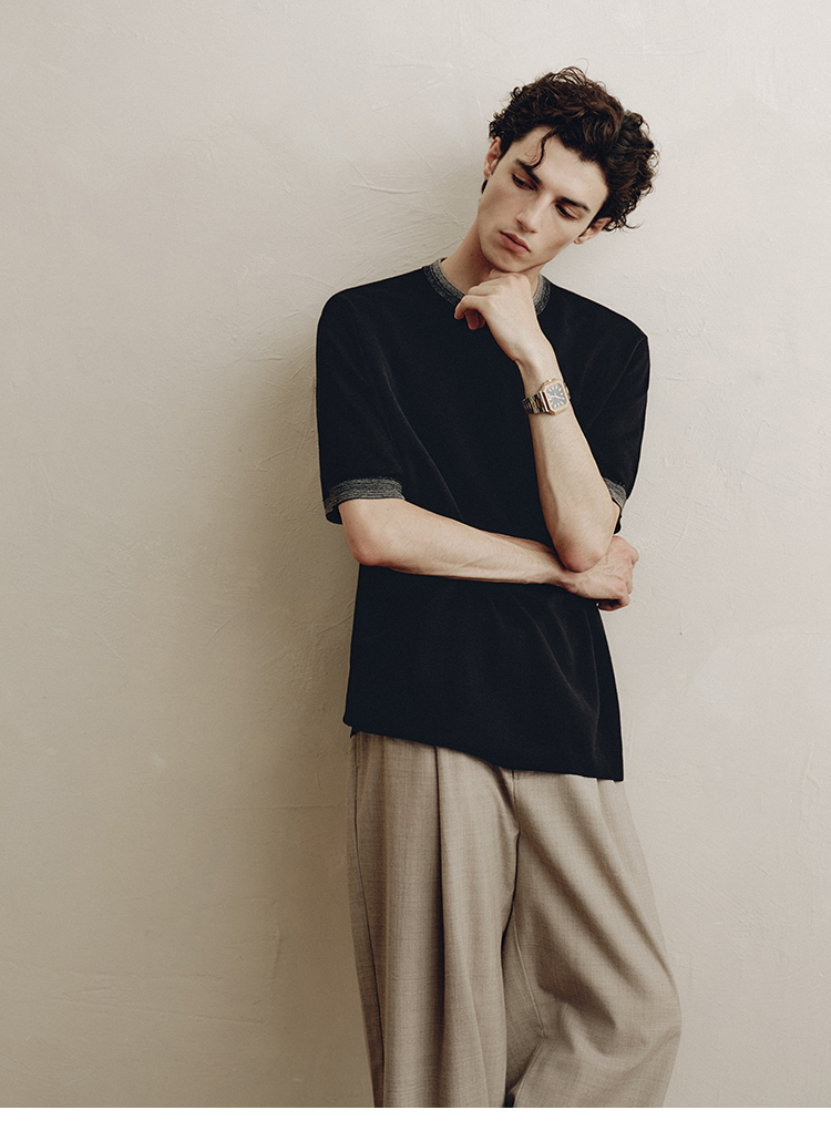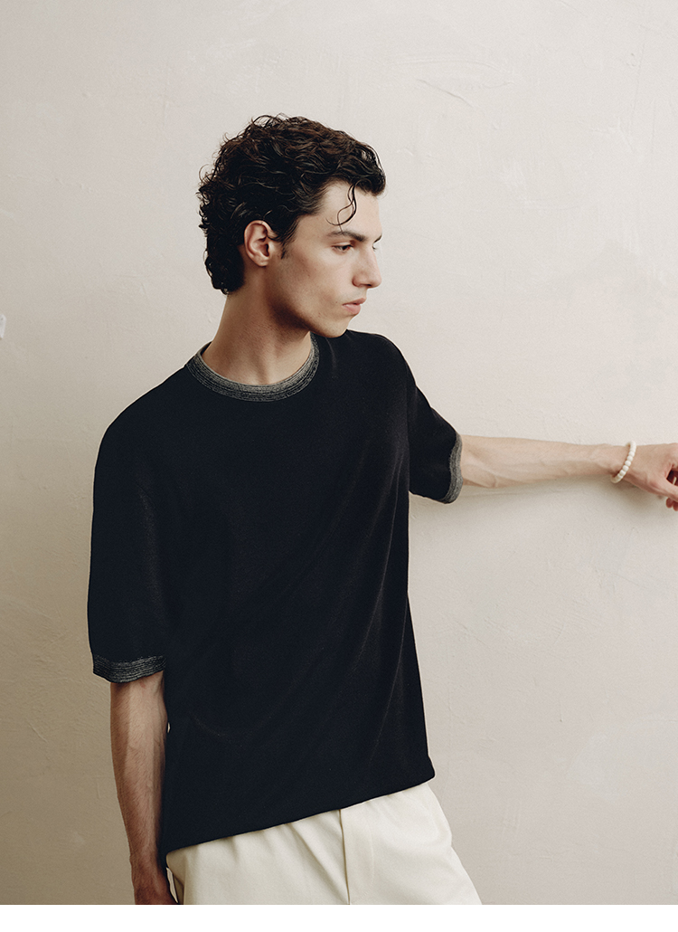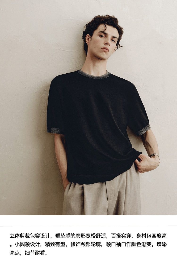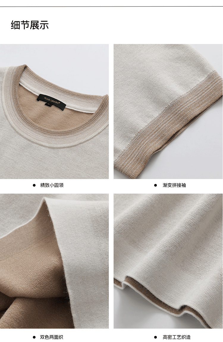 PLUS CRASH夏季老钱风拼色新触感绵羊毛花纱质轻盈软糯透气短T恤