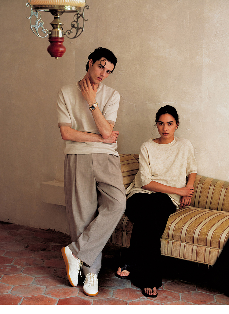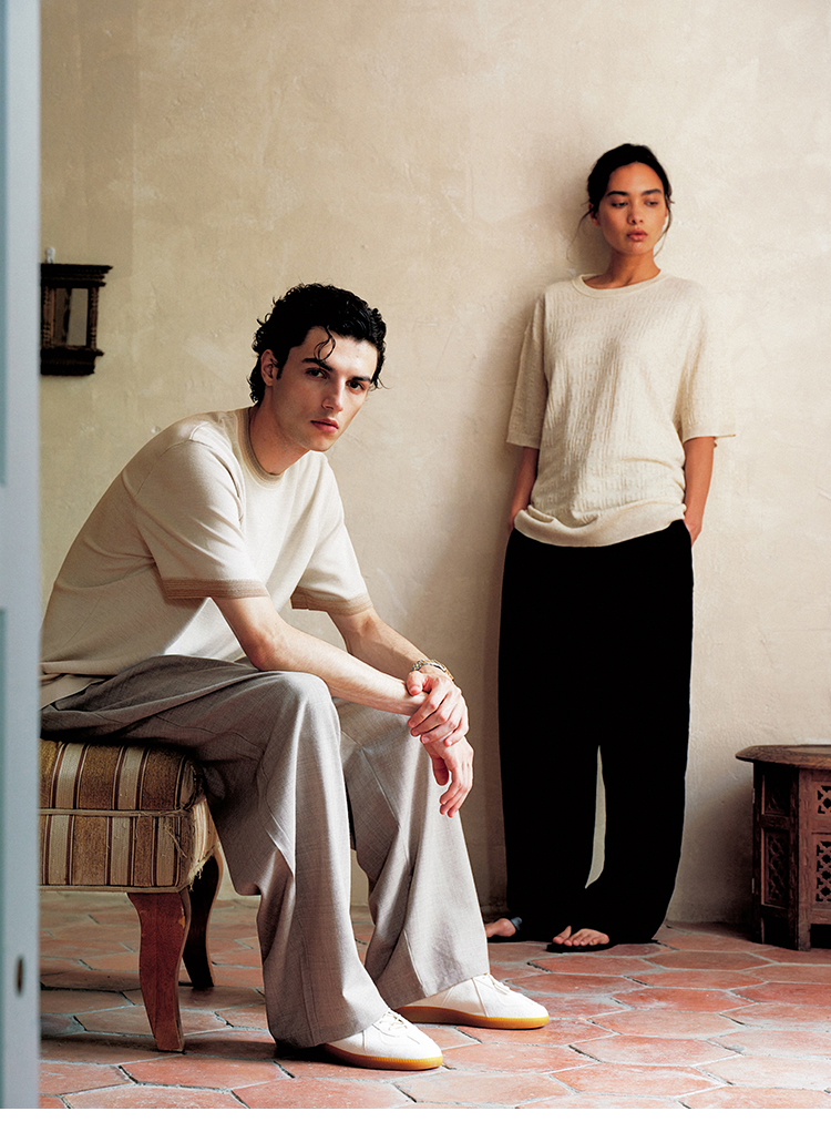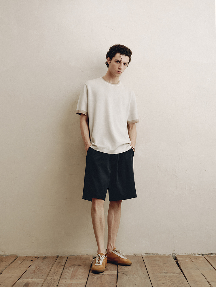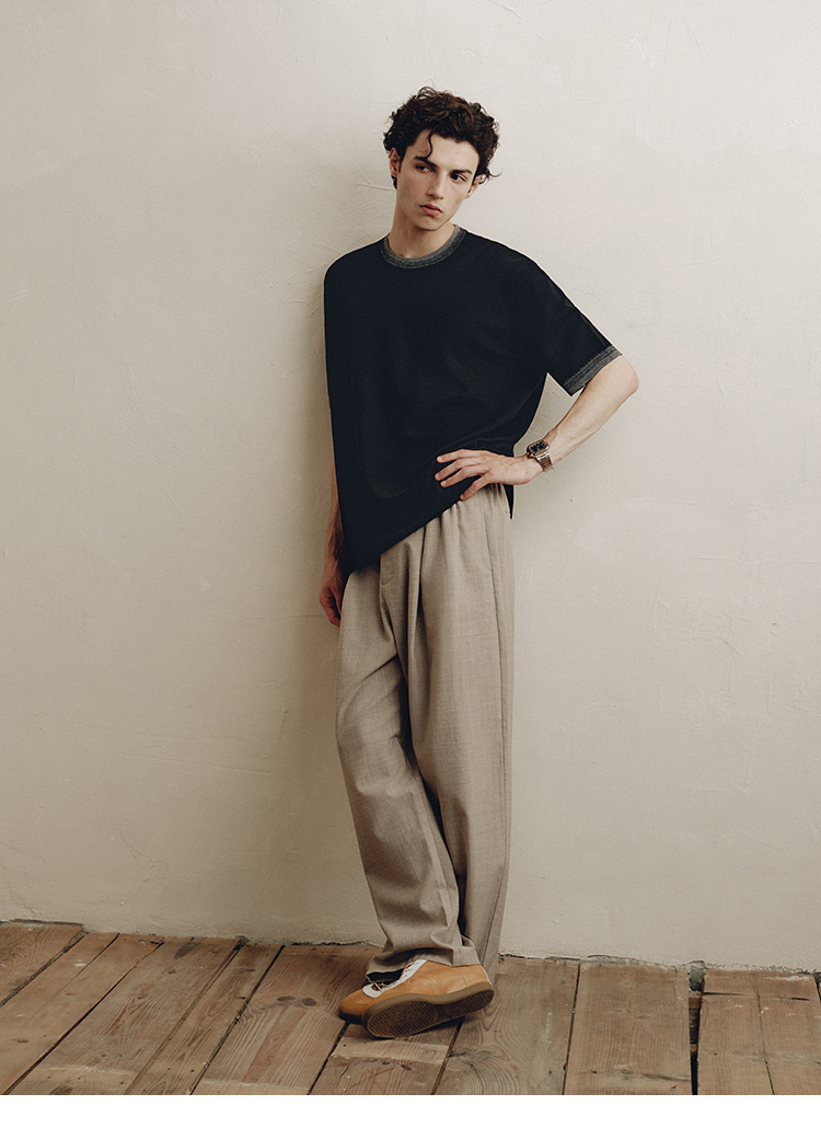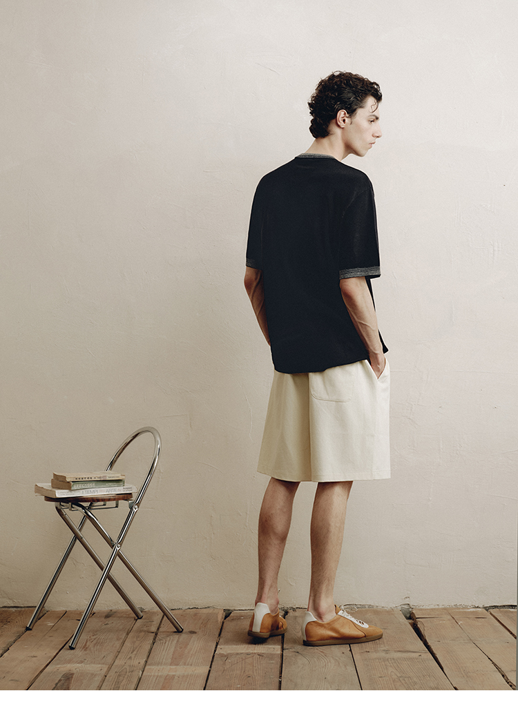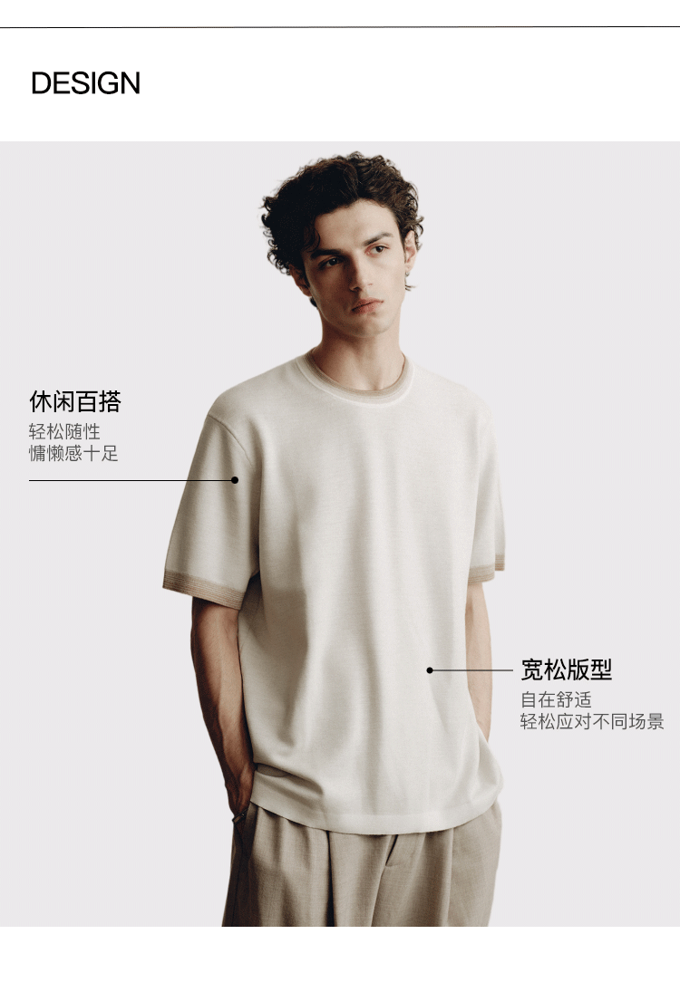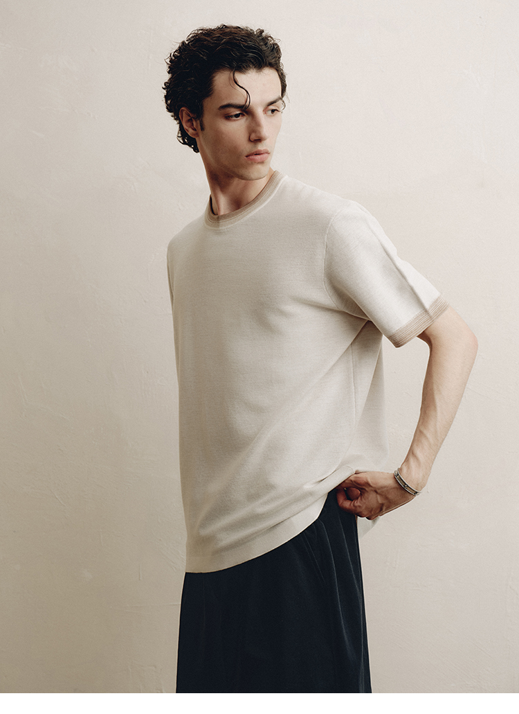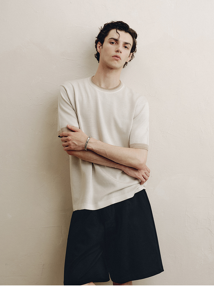 PLUS CRASH夏季老钱风拼色新触感绵羊毛花纱质轻盈软糯透气短T恤
